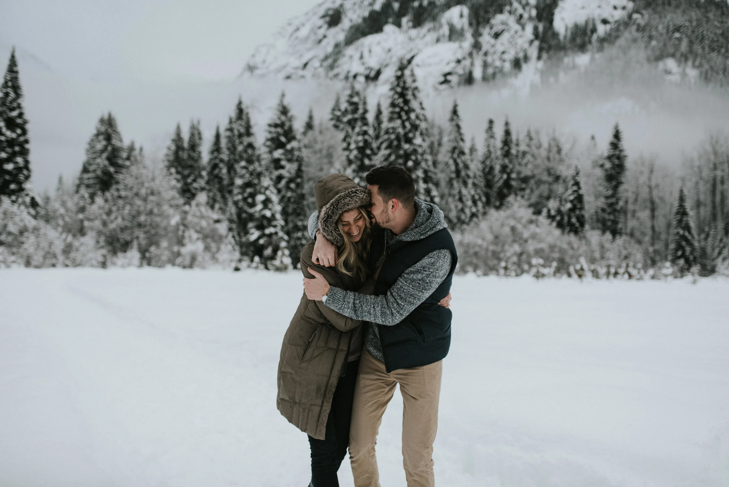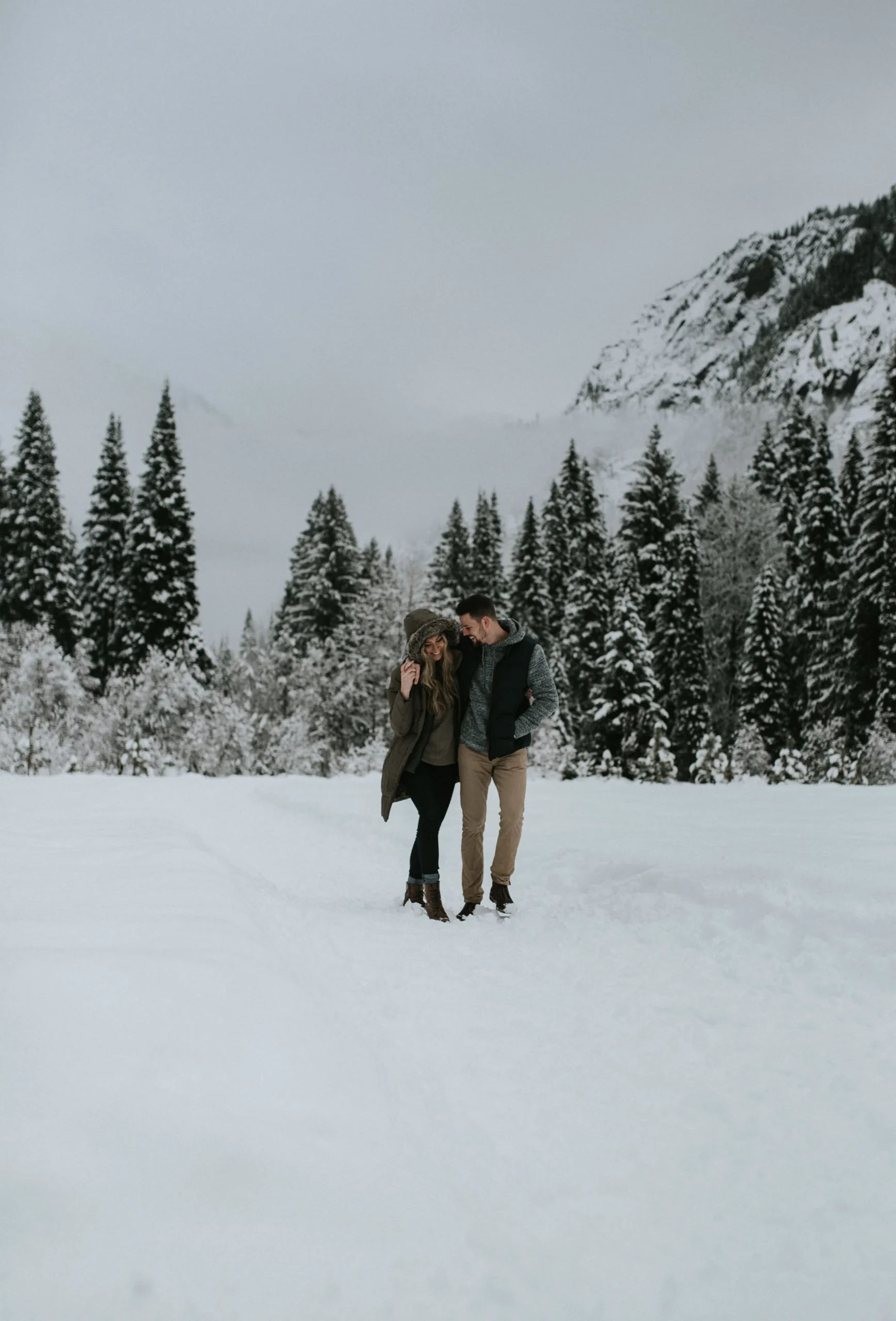 When I visited the PNW in January, I had the chance to do an adventure couples session for Nick and Danee in the North Cascade mountain range. It was seriously such a winter wonderland and my first time in Washington DEFINITLEY did not disappoint. I had been to Oregon in the summer, but I had never been to Washington and I was so excited! I was a little nervous how the weather would be in January, but it was absolutely beautiful. Stepping away from sun in Colorado and spending some time in the foggy, overcast of the Pacific Northwest was so good for my soul. I spent a few days towards the beginning of the trip in Seattle eating and drinking my way through the city, and then finished the week off in North Cascades National Park snowshoeing, hiking, and taking photos of these two lovely humans.