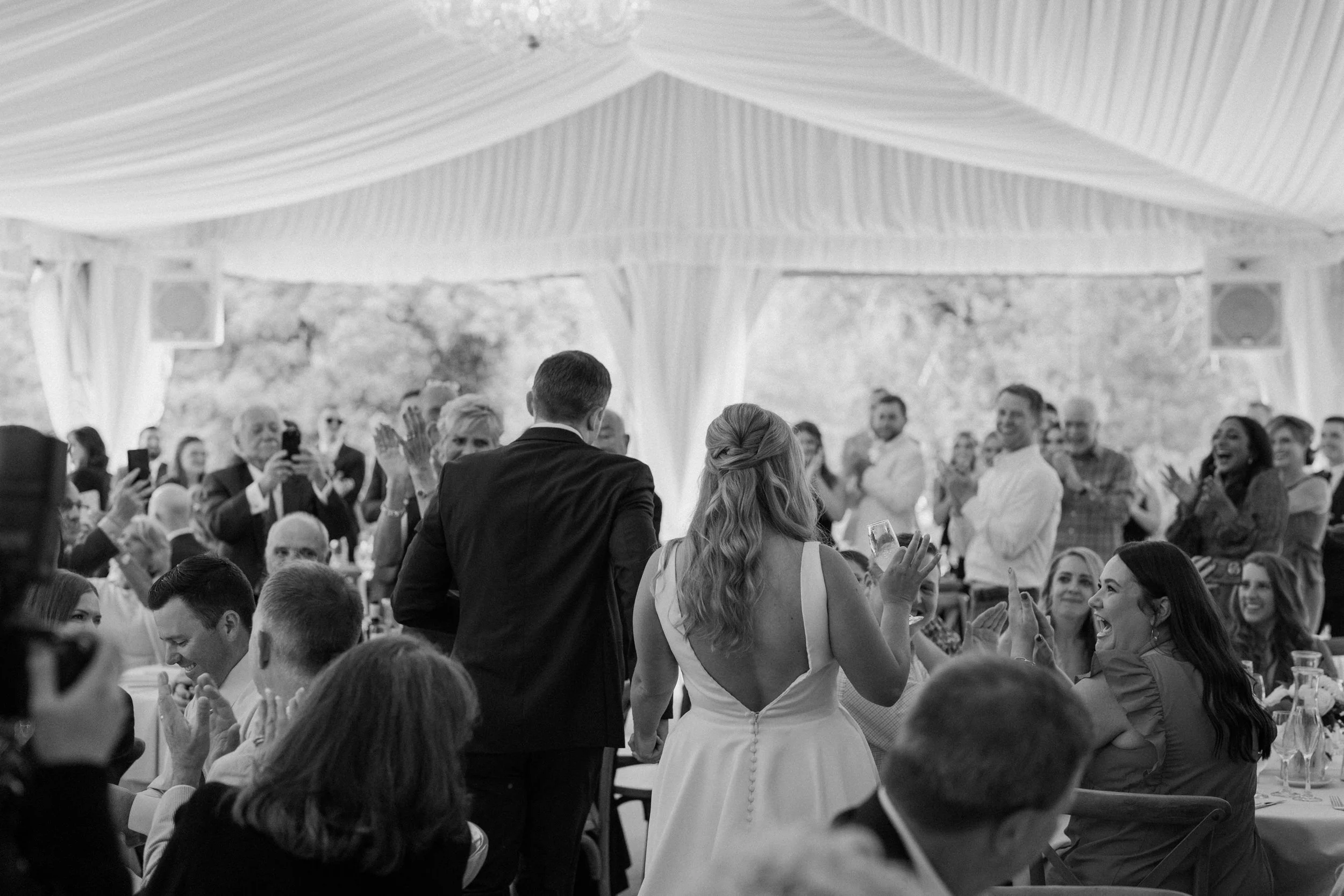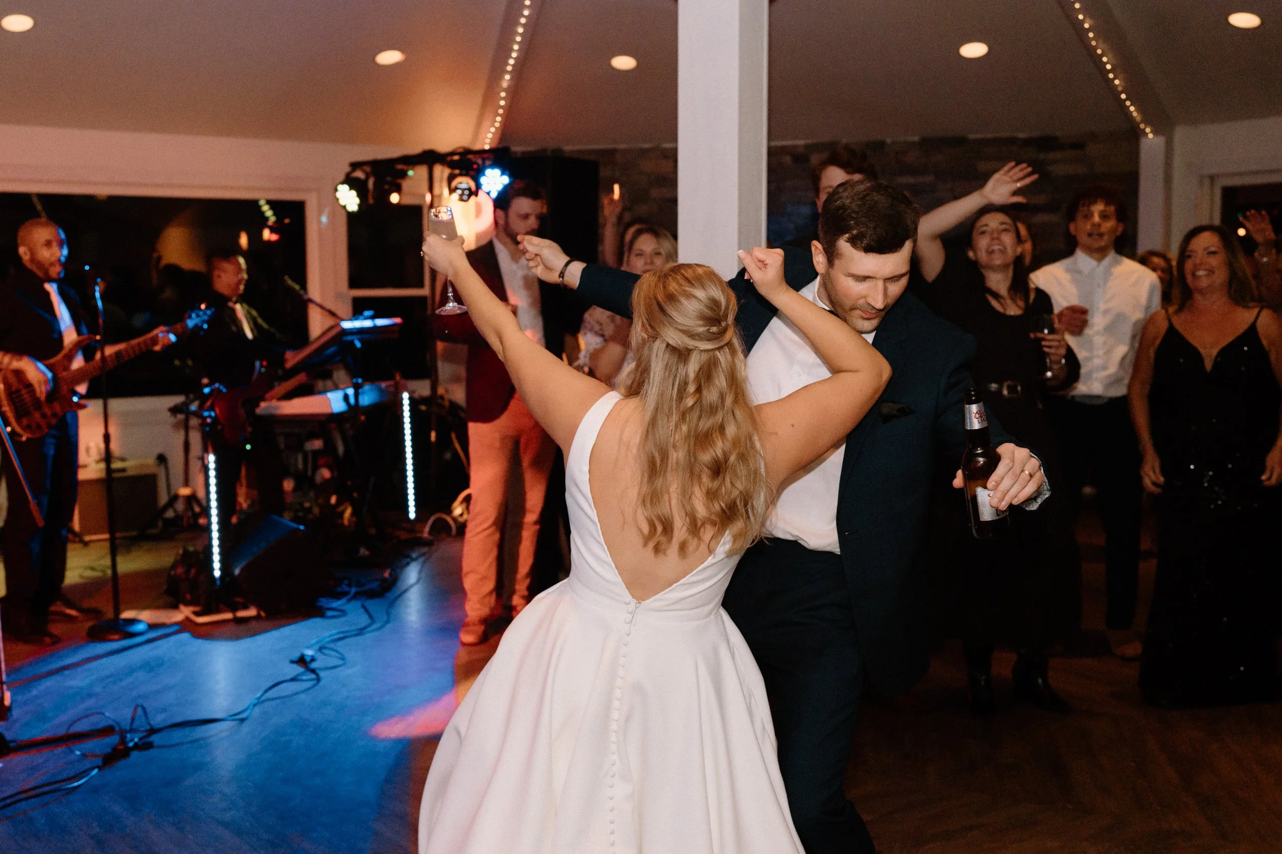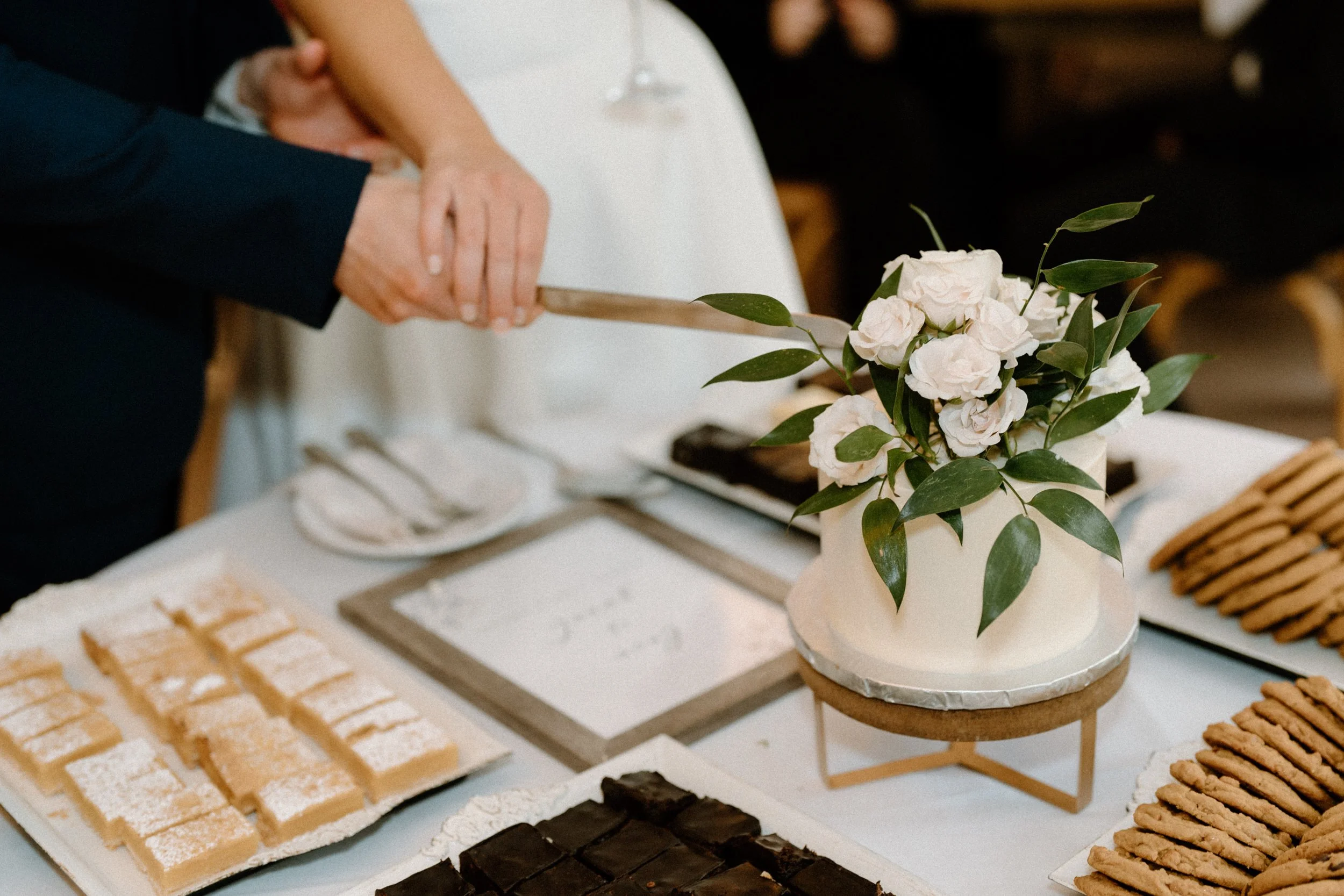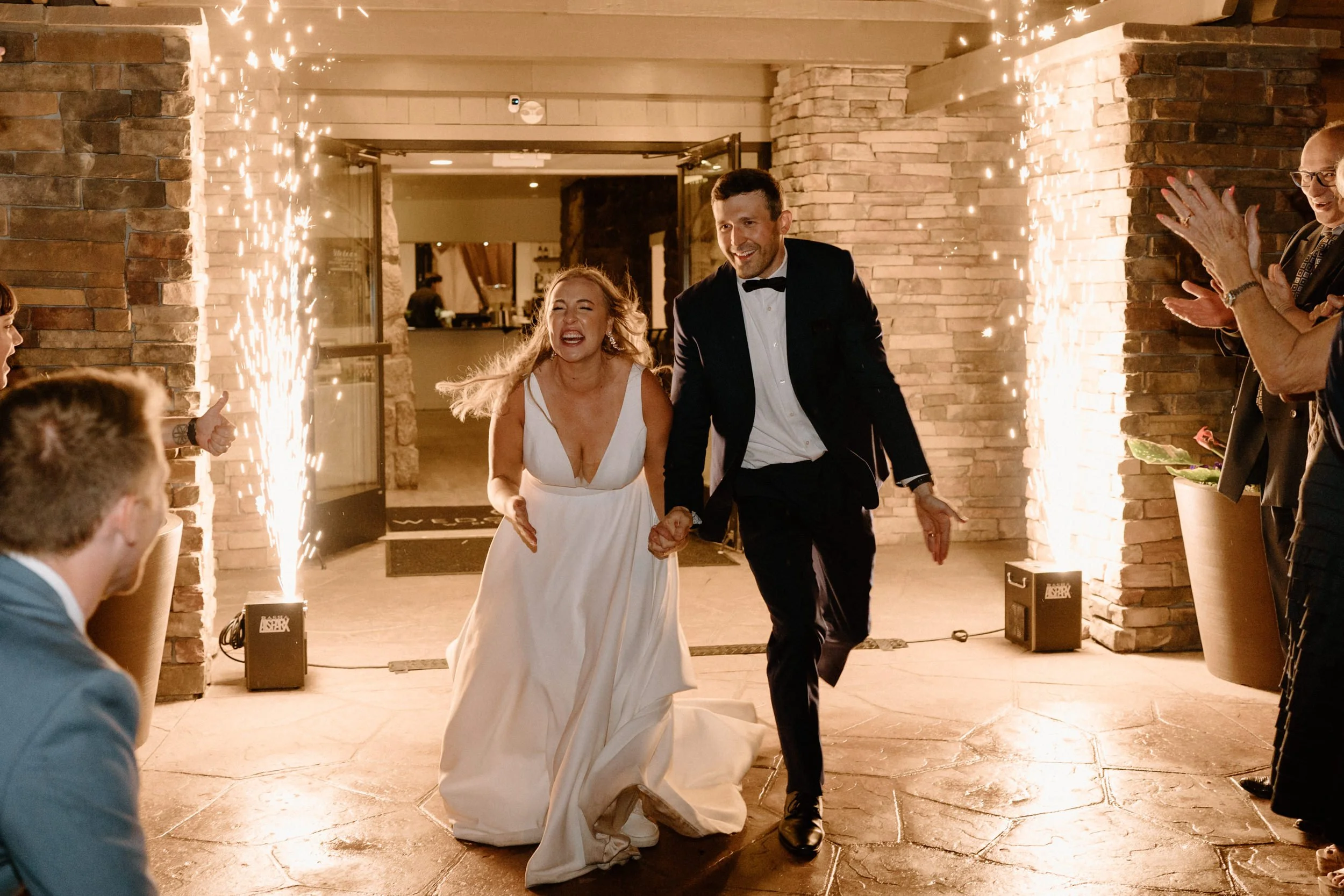 Their wedding was traditional with their own flare, making it perfectly intimate for the bride and groom while also spending quality time with guests. As the night went on, the bride and groom had the most exciting entrance, champagne in hand, to the classic cake-cutting moment. They ended the night with dancing and the room was lit with smiles.
