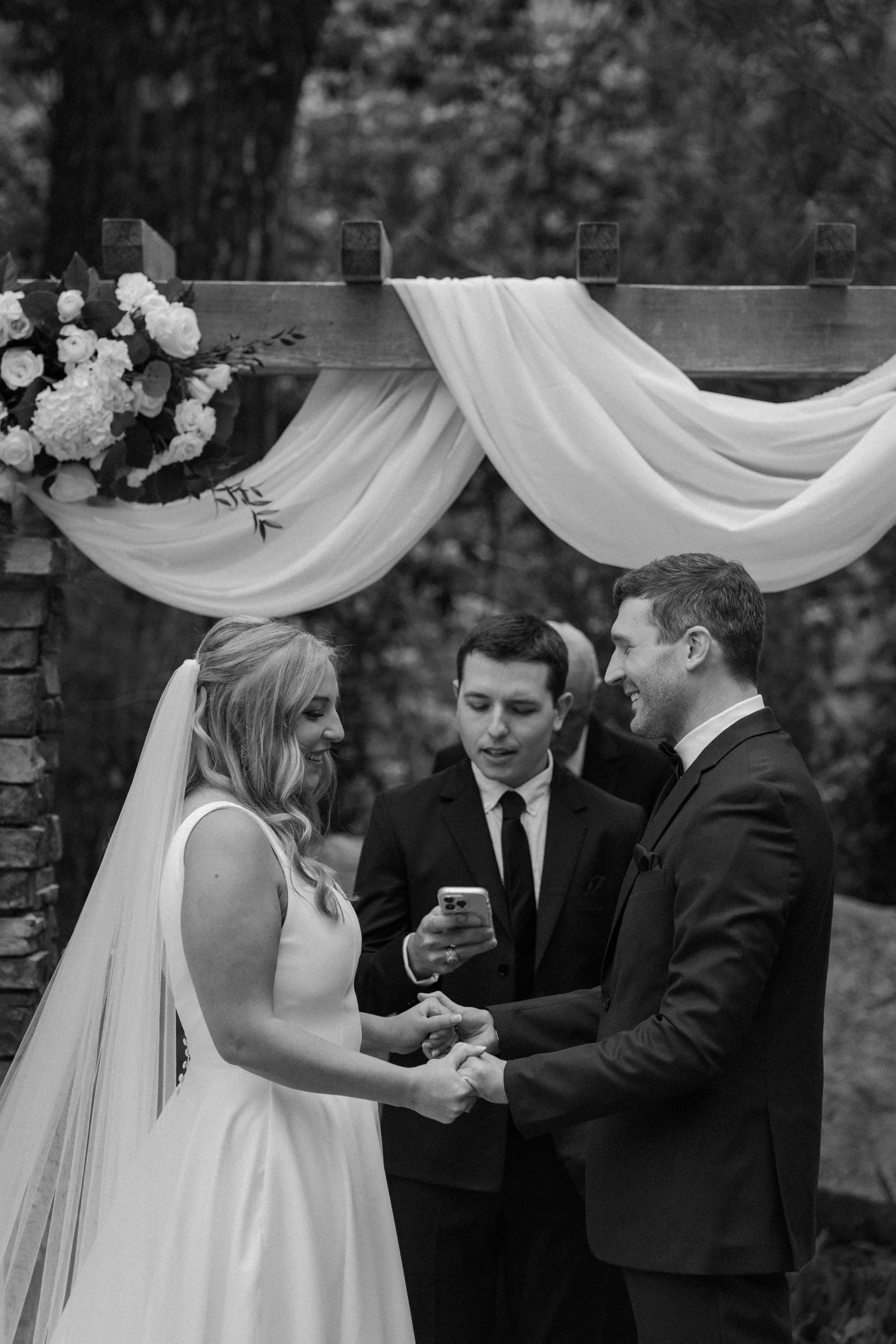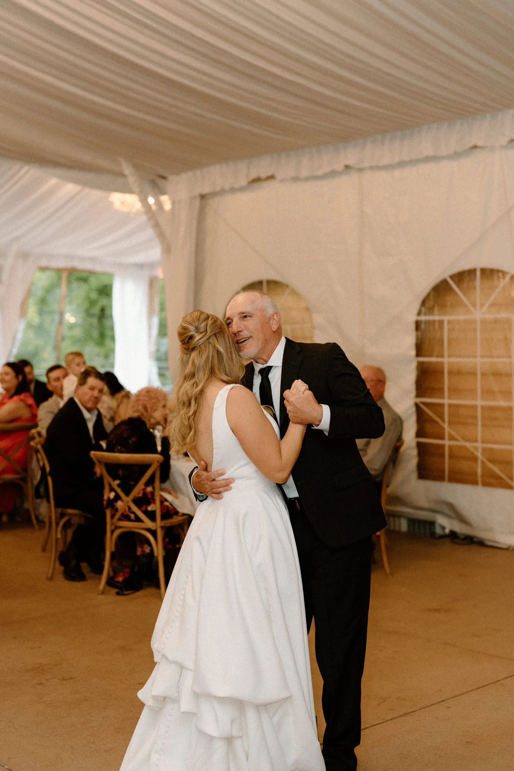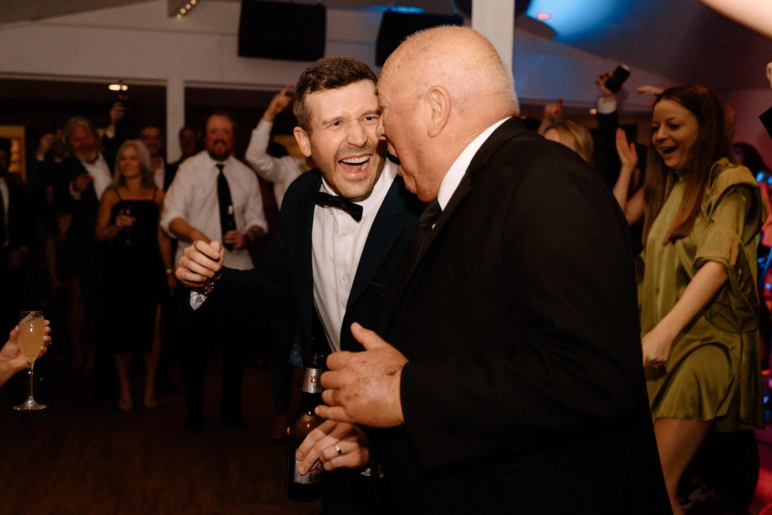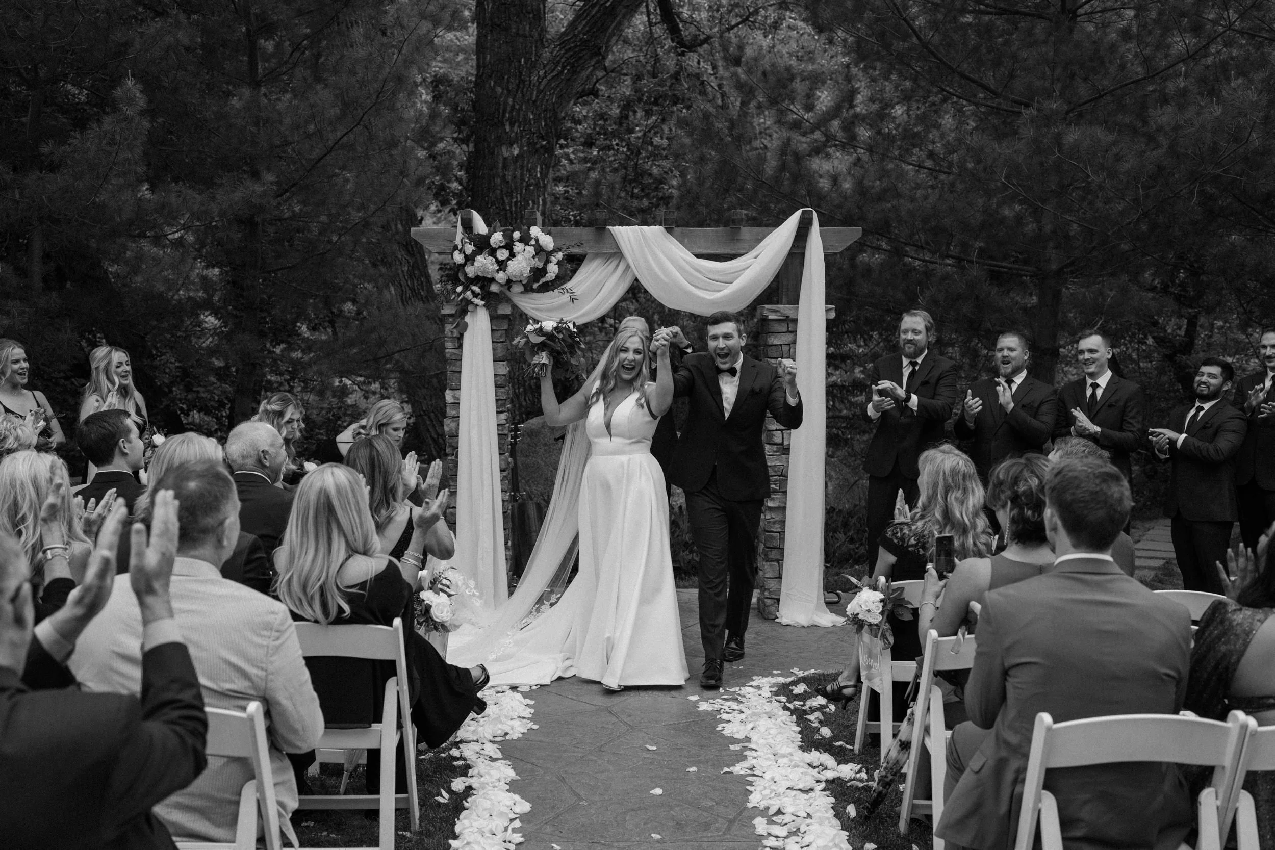 Their wedding was traditional with their own flare, making it perfectly intimate for the bride and groom while also spending quality time with guests. As the night went on, the bride and groom had the most exciting entrance, champagne in hand, to the classic cake-cutting moment. They ended the night with dancing and the room was lit with smiles.