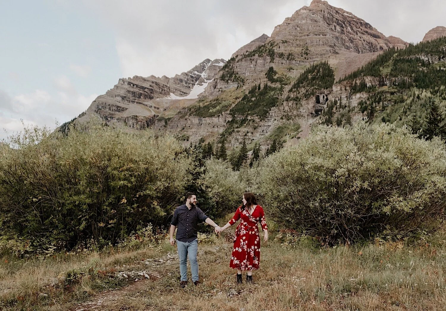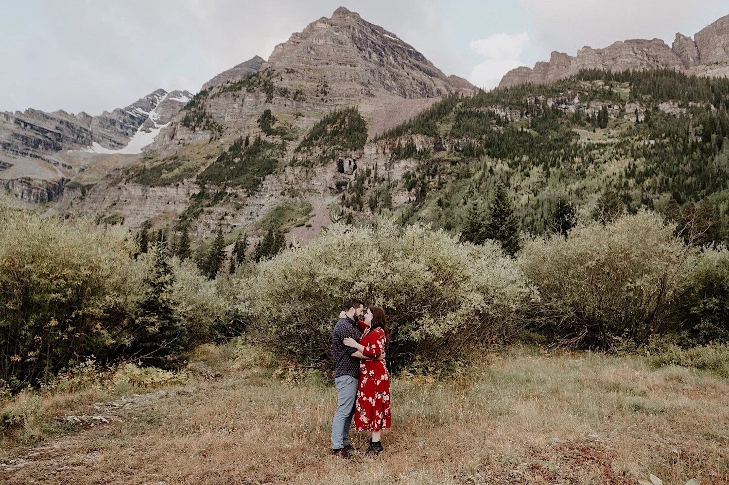 We woke up in the middle of the night and hiked in the dark up to Crater Lake in time to catch the sunrise. It was amazing! Thee Maroon Bells are absolutely stunning at sunrise, so it is always my favorite time of day to go – even though it means no sleep. Even though Emily and Evan were here from out of state – they were up for whatever and totally trusted me when I told them we need a 3am wake up call and to hike in the dark lol! I love it when couples are up for anything and just along for the adventure. We spent the morning hiking around the Maroon Bells, and ended with a nice brunch and mimosas.