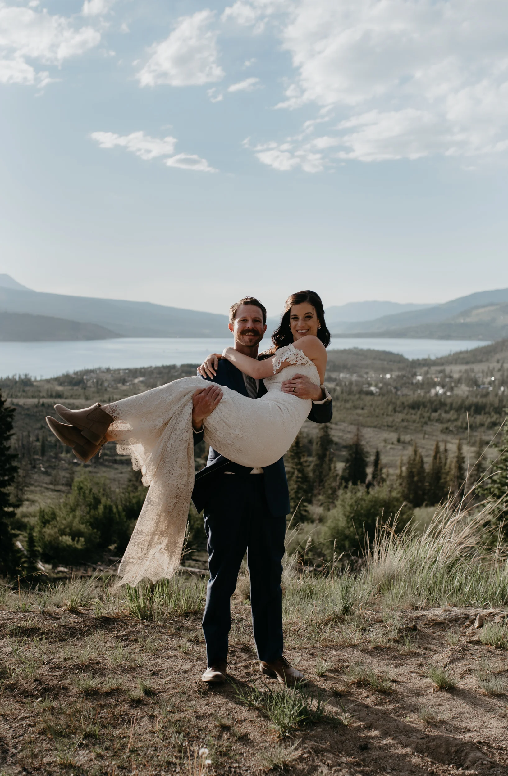 Amanda and Jeff’s intimate wedding at Sapphire Point in Breckenridge, Colorado was one of the sweetest, most beautiful days ever!! Sapphire Point is a GORGEOUS mountain with views of all the mountains and Lake Dillon. It is one of my favorite spots in Colorado for an elopement or intimate wedding!