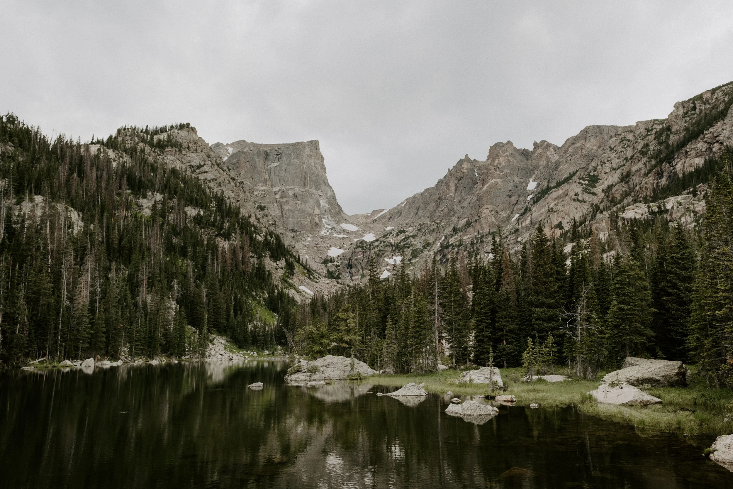 A DREAM LAKE ROCKY MOUNTAIN NATIONAL PARK ADVENTURE ENGAGEMENT SESSION