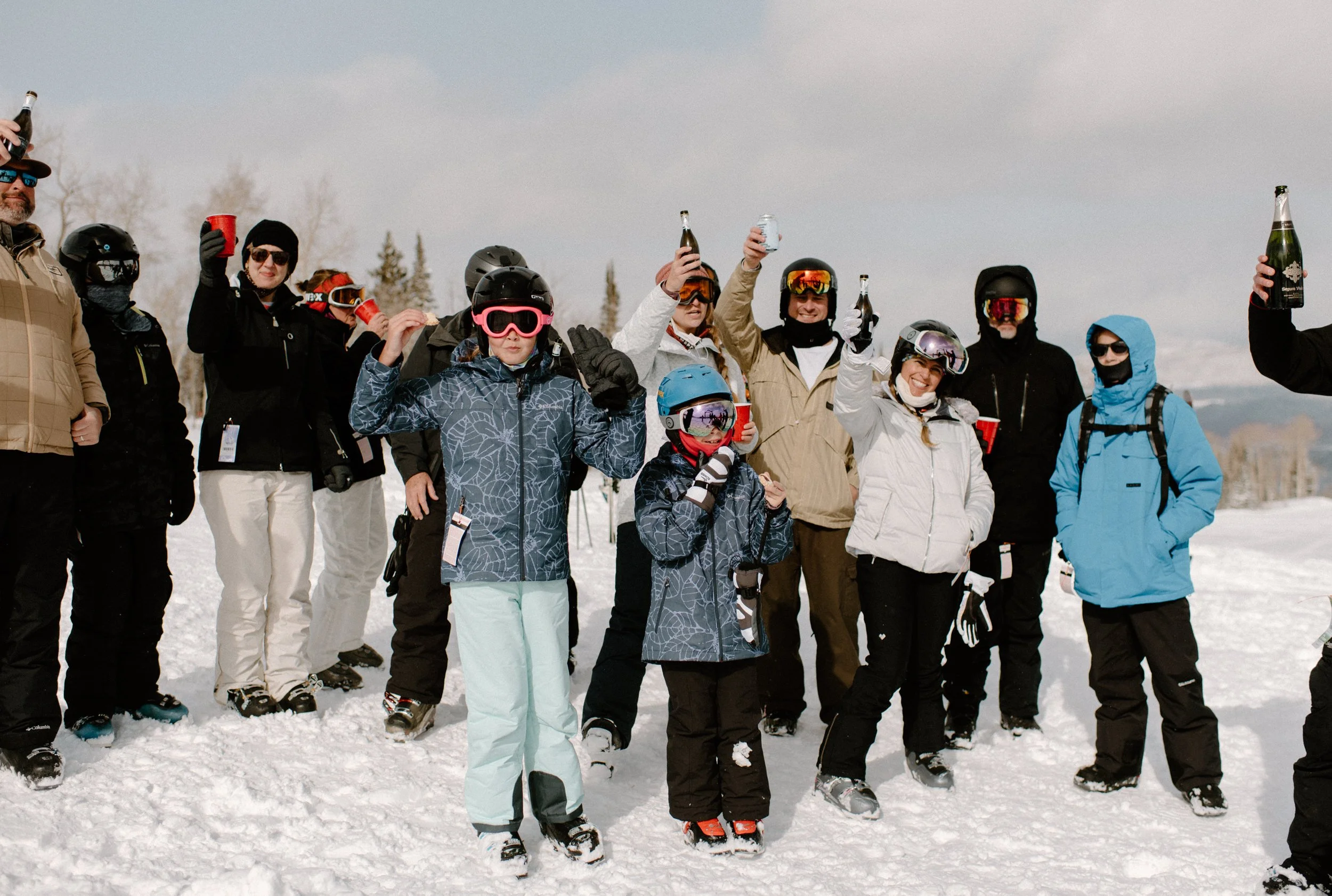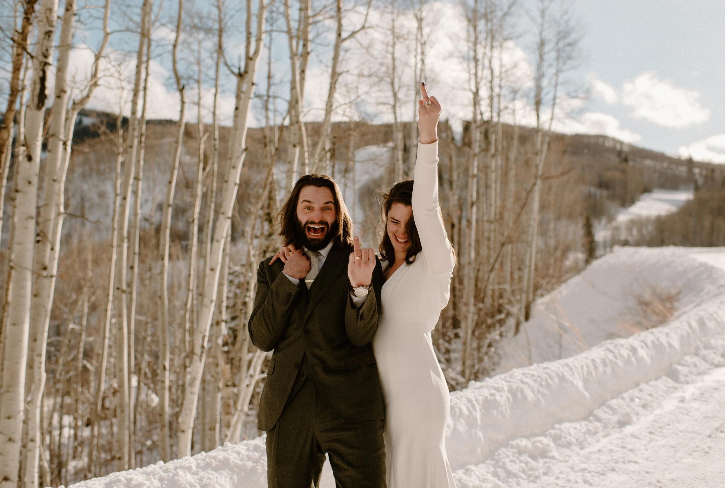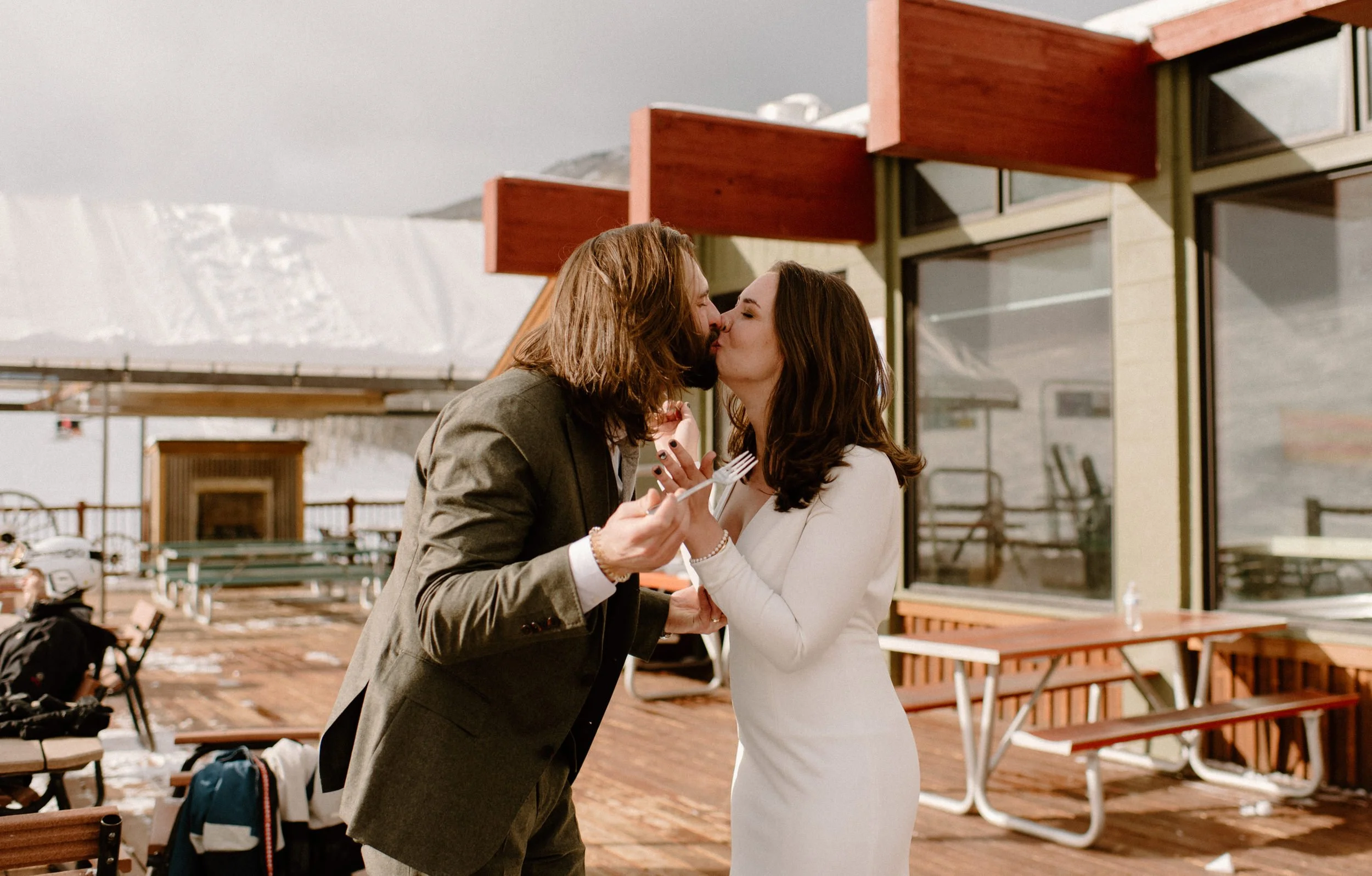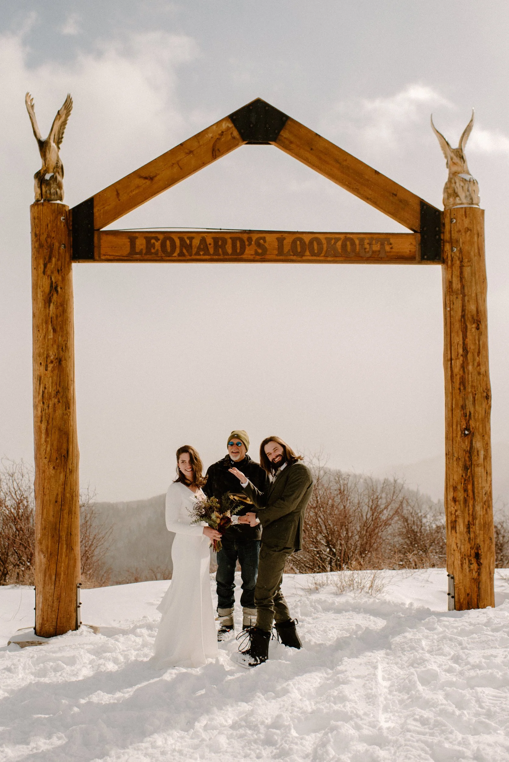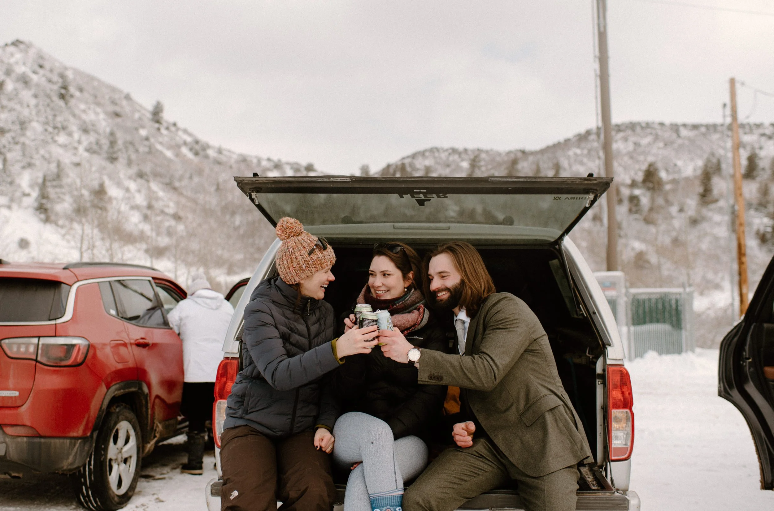 We decided on Sunlight Mountain Resort in Glenwood Springs because it is a local mountain that is much less crowded and touristy than many of the other resorts. We started the day pregaming in the parking lot before getting dressed and taking the lift up the mountain. Once we made it to the top, Brynn skied down the aisle in her dress and we had their ceremony (followed by a champagne toast) - just the two of them, their officiant, and a bunch of local skiers who decided to join! It was such a blast.