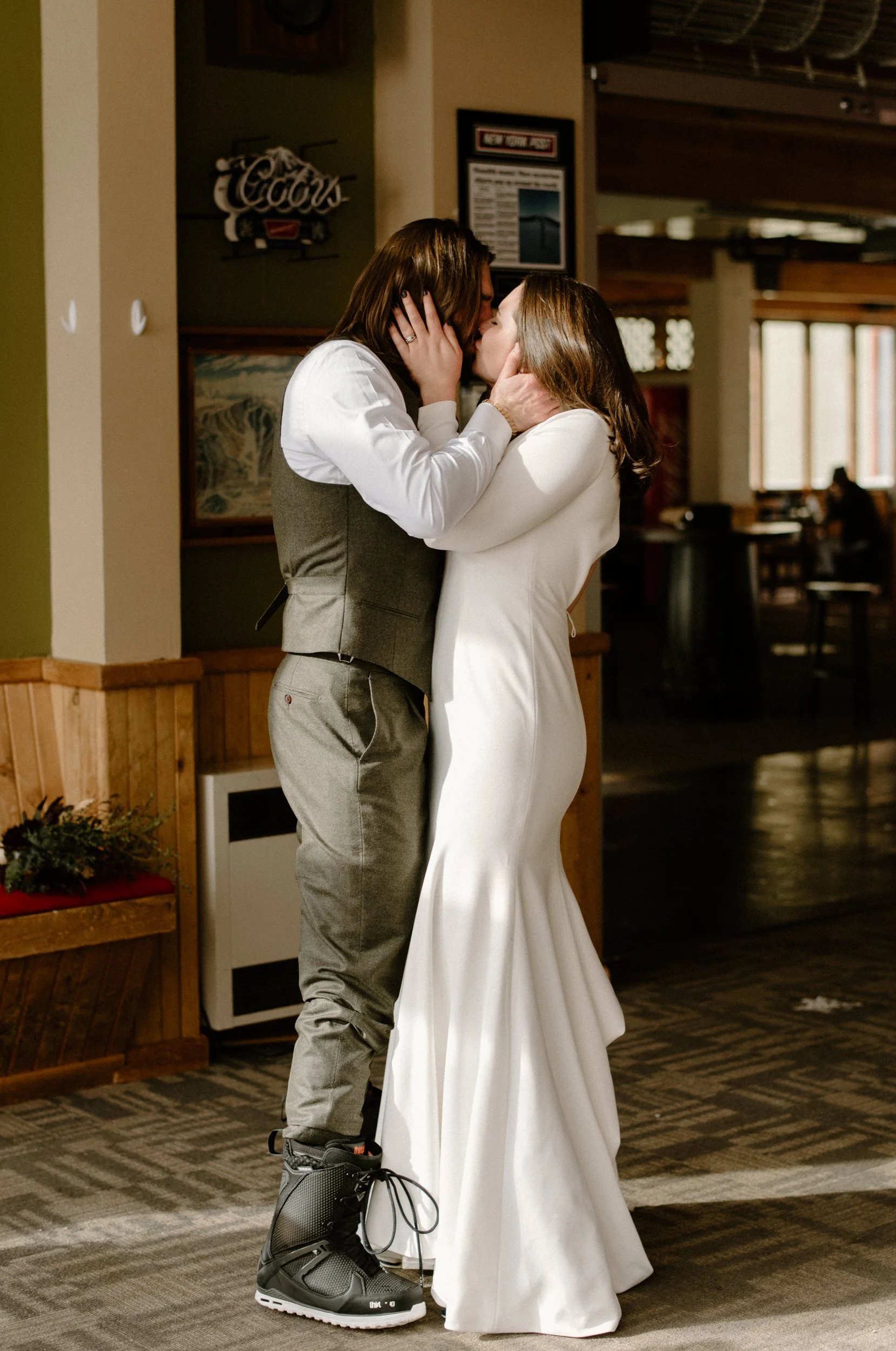 When my friend Steve at Foster Creative first reached out to me about photographing Brynnβs elopement while he filmed it, I was SO excited. After speaking more with Brynn about her vision and told me that she wanted to elope on a ski mountain and spend the afternoon skiing/snowboarding with her new husband, it sounded like the perfect day. Brynn and Brandon wanted a wedding day with no frills, something intimate and low key, fun, memorable, and a day that just felt like them.