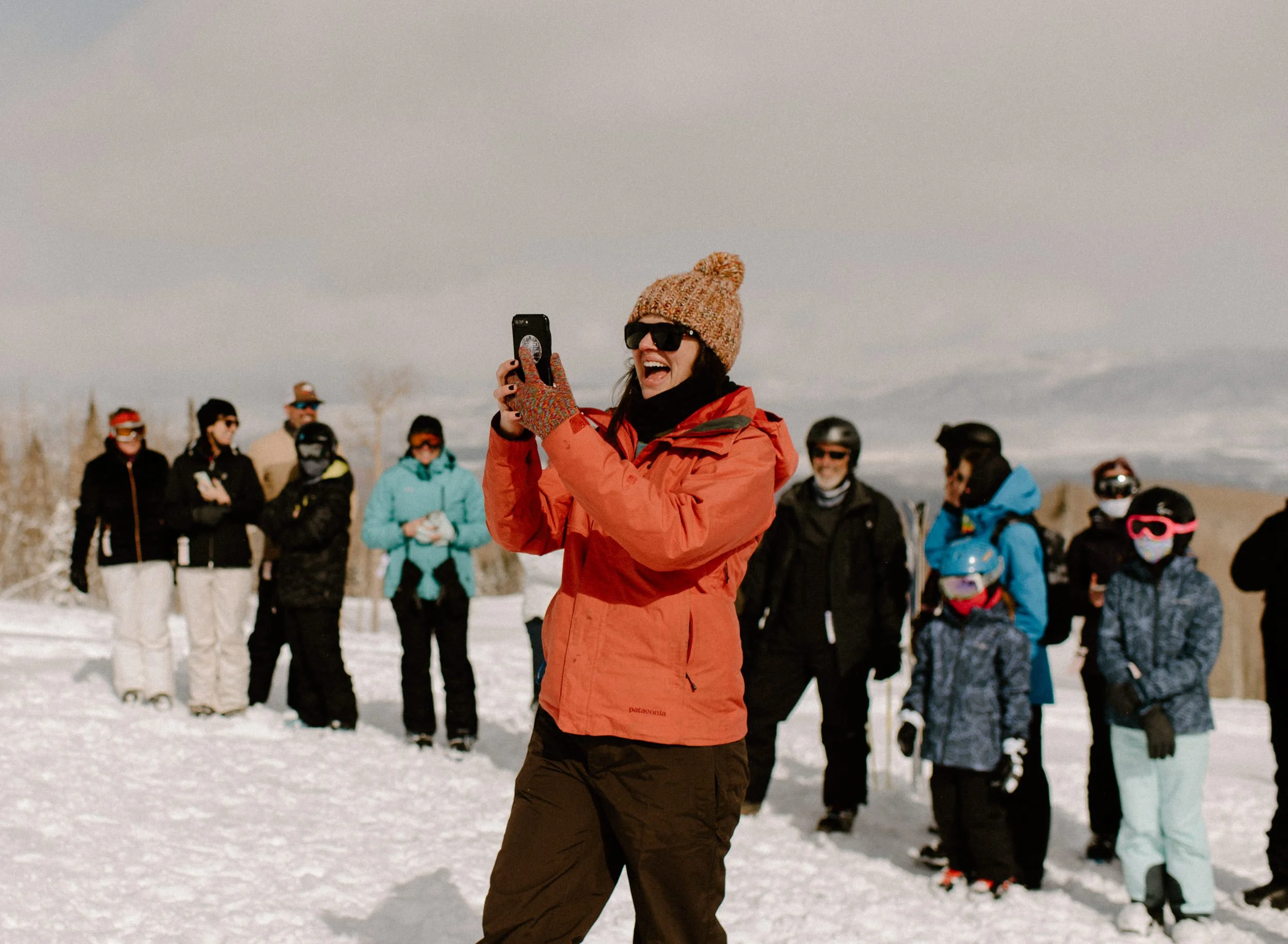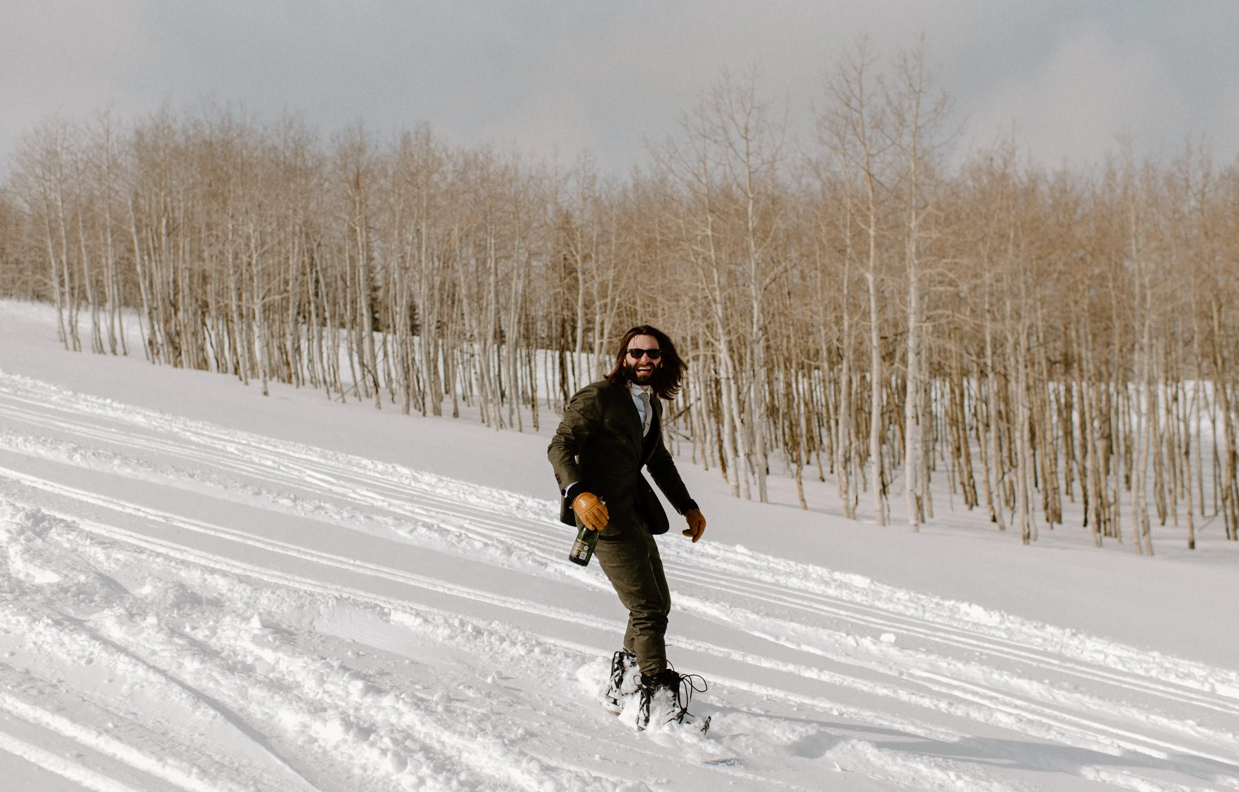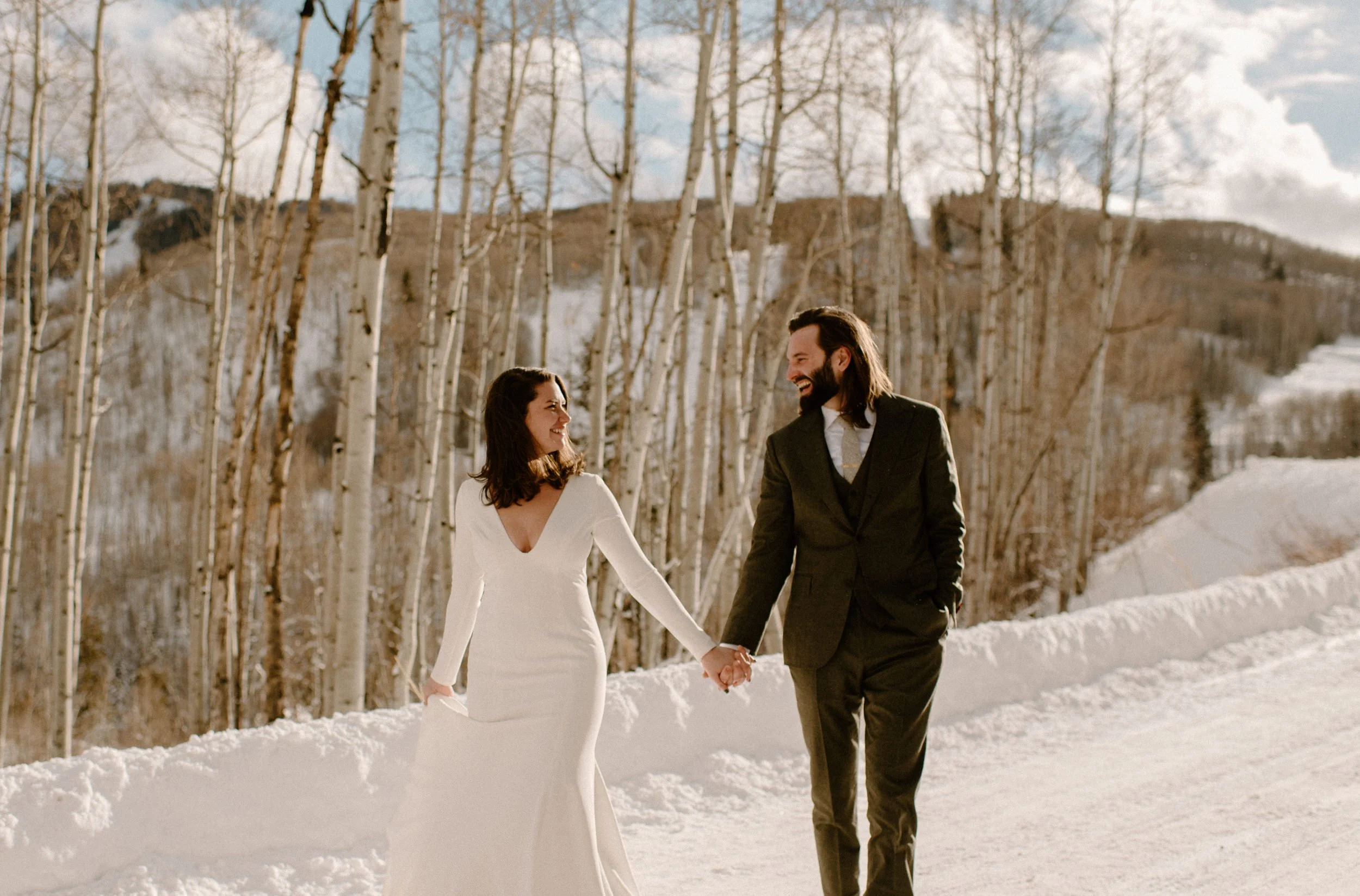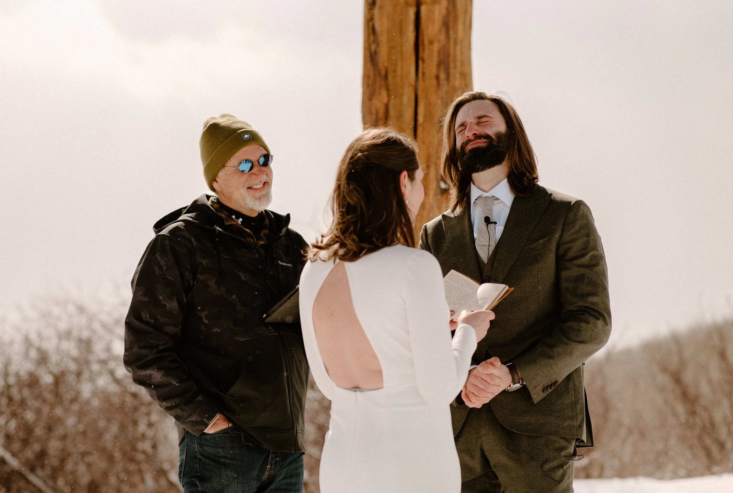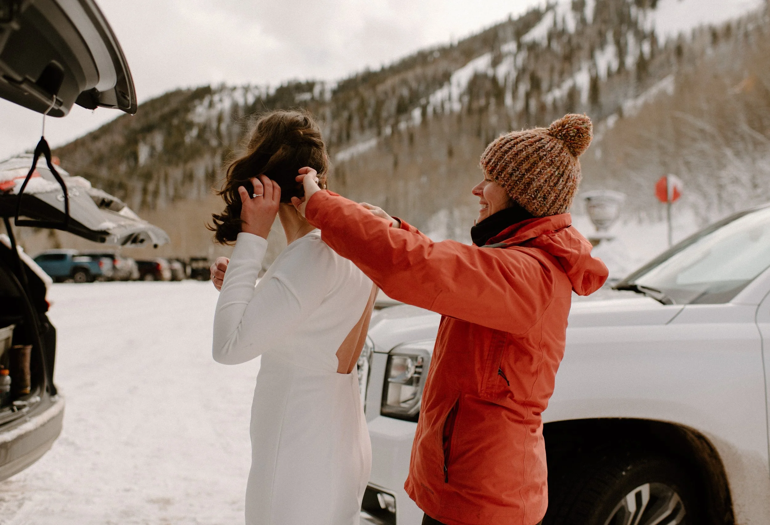 We decided on Sunlight Mountain Resort in Glenwood Springs because it is a local mountain that is much less crowded and touristy than many of the other resorts. We started the day pregaming in the parking lot before getting dressed and taking the lift up the mountain. Once we made it to the top, Brynn skied down the aisle in her dress and we had their ceremony (followed by a champagne toast) – just the two of them, their officiant, and a bunch of local skiers who decided to join! It was such a blast.