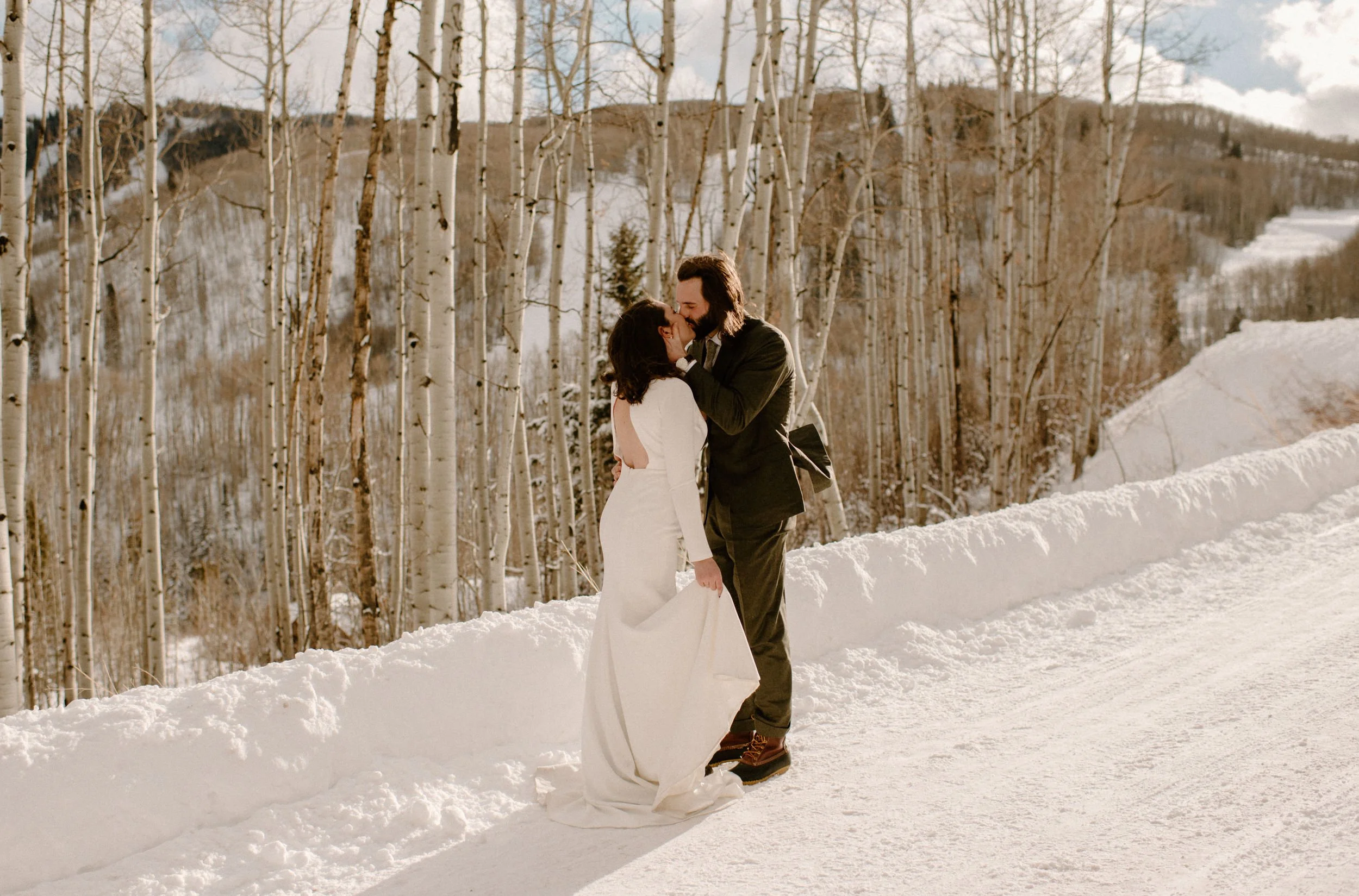 After the ceremony we spent the afternoon skiing/snowboarding around the resort and finished with a first dance and cake cutting back at the ski lodge. It was such a blast! Before finishing the day, we went to a secret spot up the road for some more portraits of them. It was magical! I absolutely love that Brynn and Brandon decided to have a day that was all about them and exactly what they wanted.