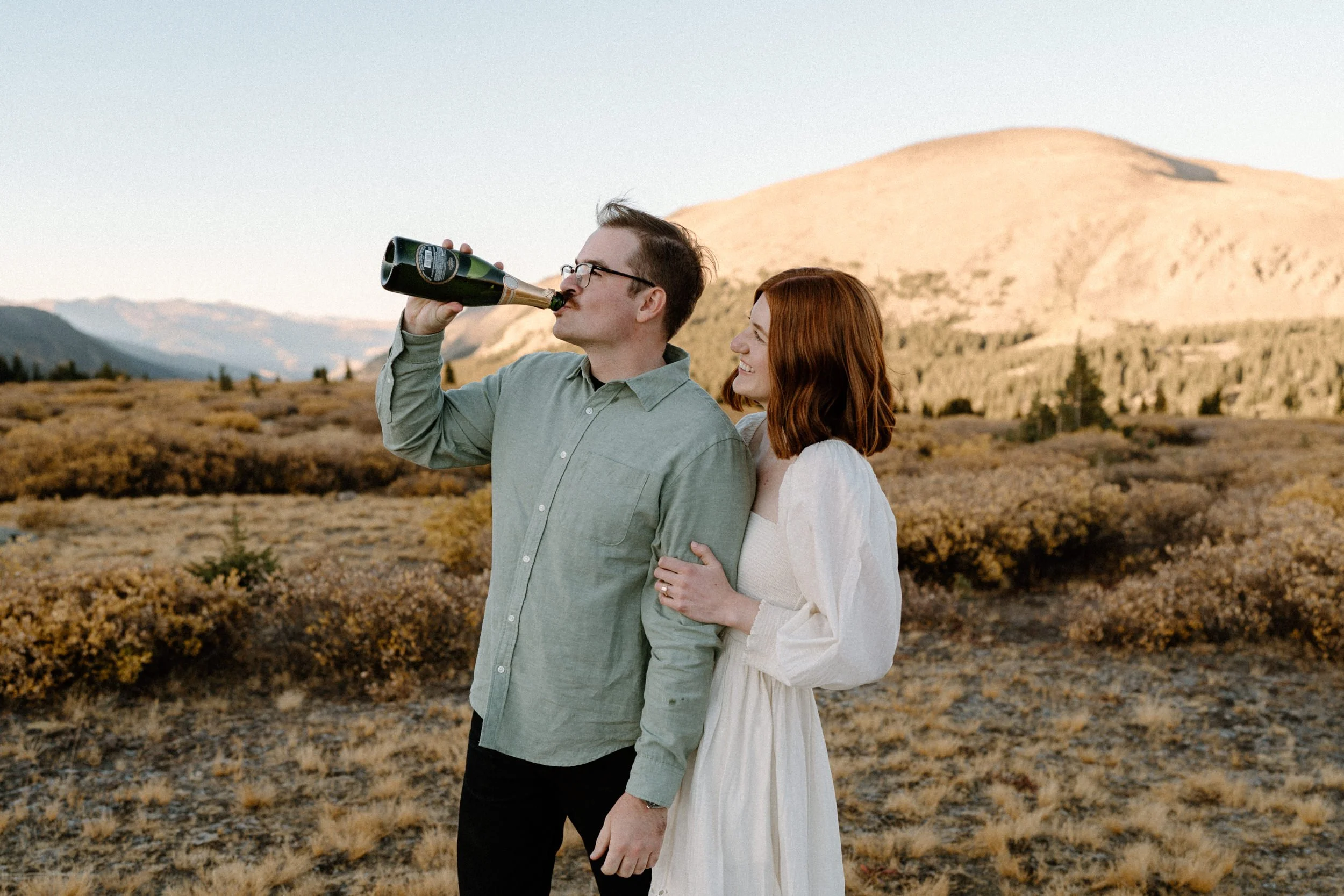 As the sun dipped lower, we found the perfect spot to pop a bottle of champagne. The cork flew, bubbles spilled, and laughter echoed through the valley. You could feel the excitement from a mile away! It was the perfect way to celebrate not just their engagement, but the beginning of a lifetime of adventure together.