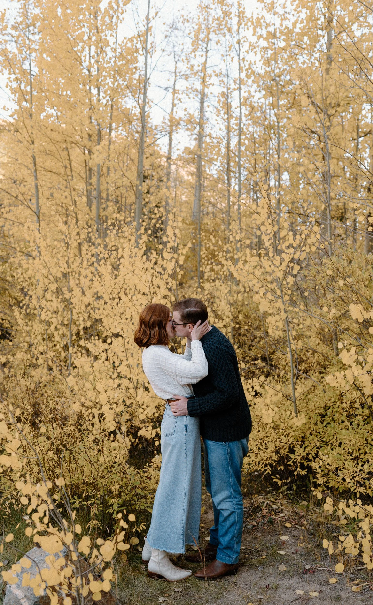 There’s something undeniably magical about Guanella Pass in the fall. With golden aspens stretching as far as the eye can see and crisp mountain air that makes everything feel a little more alive, it’s the perfect backdrop for an engagement session. Add in a couple madly in love and their playful golden retriever, and you’ve got a recipe for pure photo perfection.