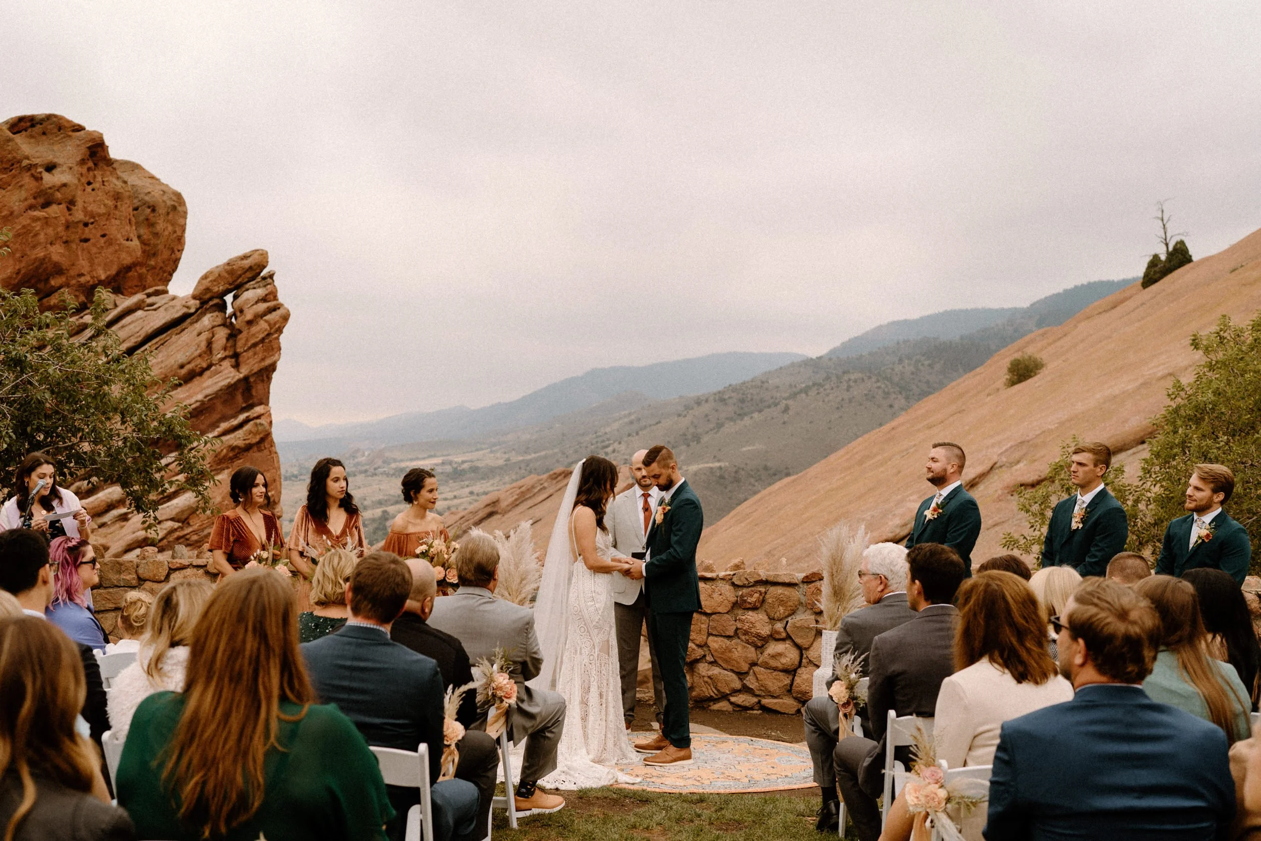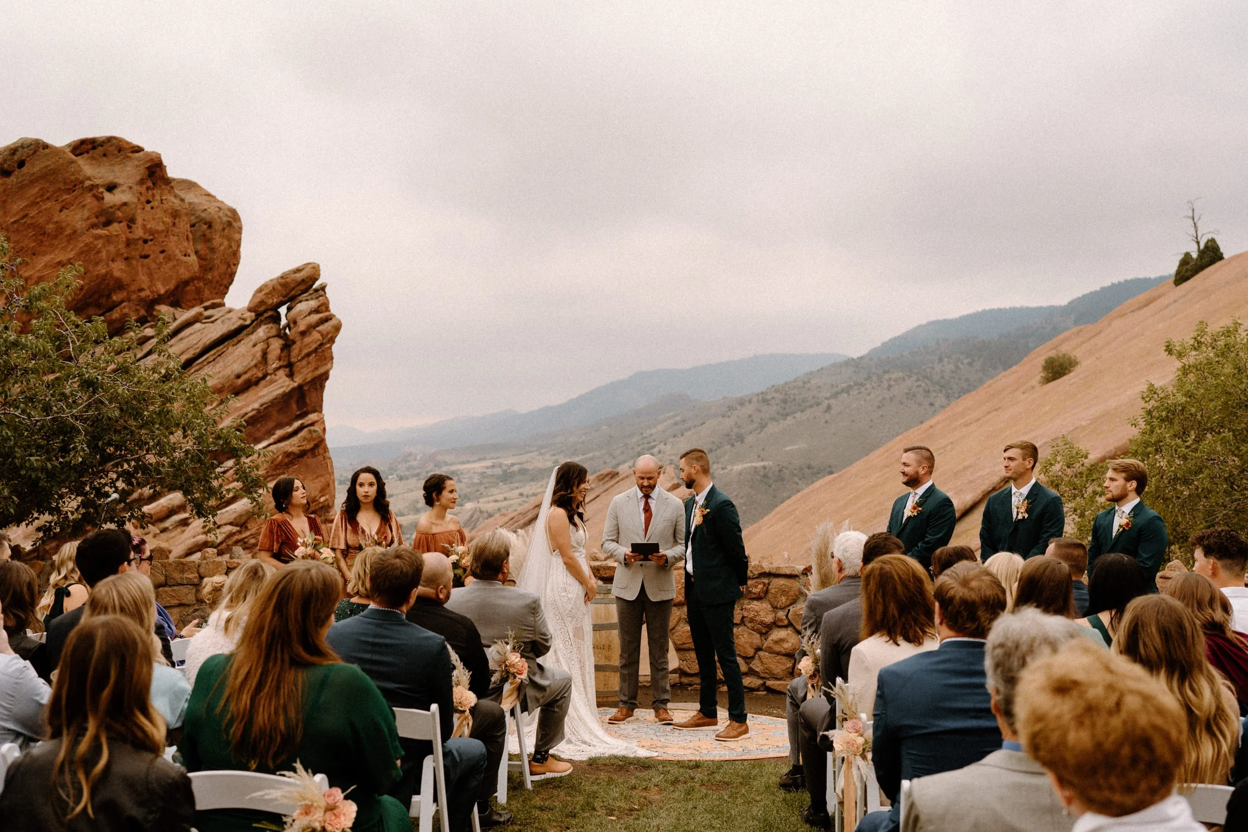 As a Colorado wedding photographer, I get to witness so many unforgettable celebrations, but this Red Rocks wedding in Morrison, Colorado? Truly something special. Katie and Zack were such a fun couple to work with! With boho vibes, amazing style, and so much heart, it was one of those days that just sticks with you.