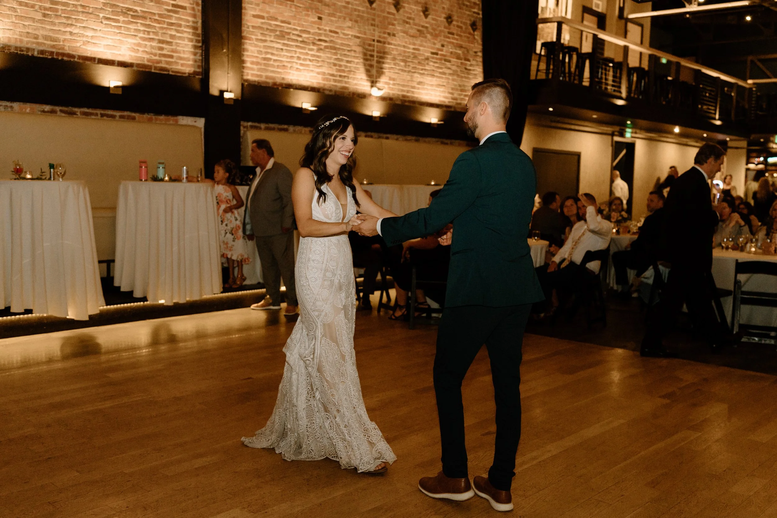 After the “I dos,” everyone made their way to The Rose Event Center in Golden, Colorado for the reception. Let me just say, this venue knows how to bring the vibes. Exposed brick, cozy lighting, and a great layout for dancing made it feel intimate yet spacious.