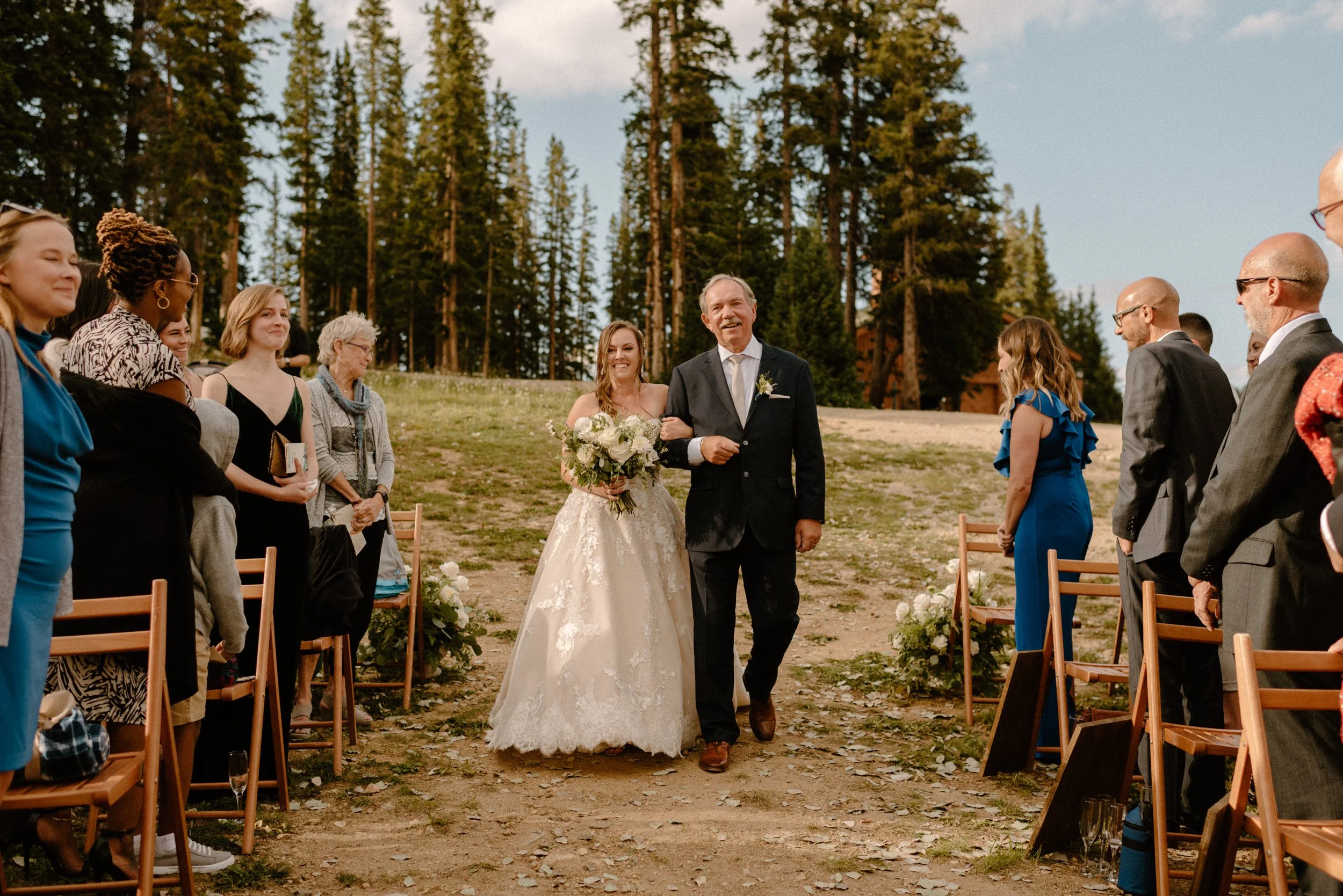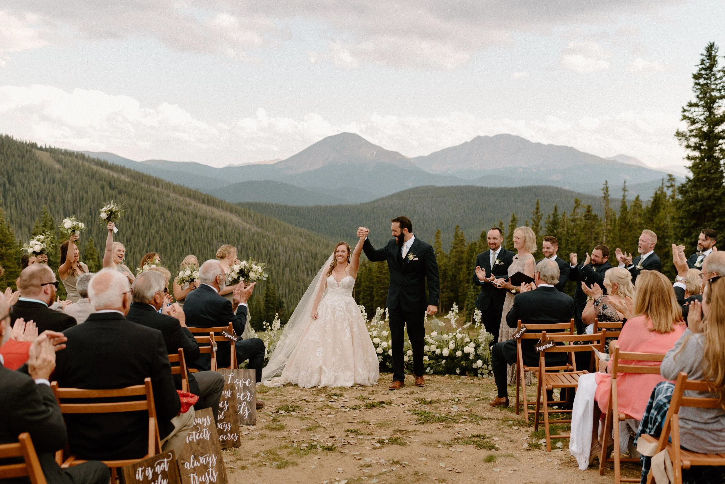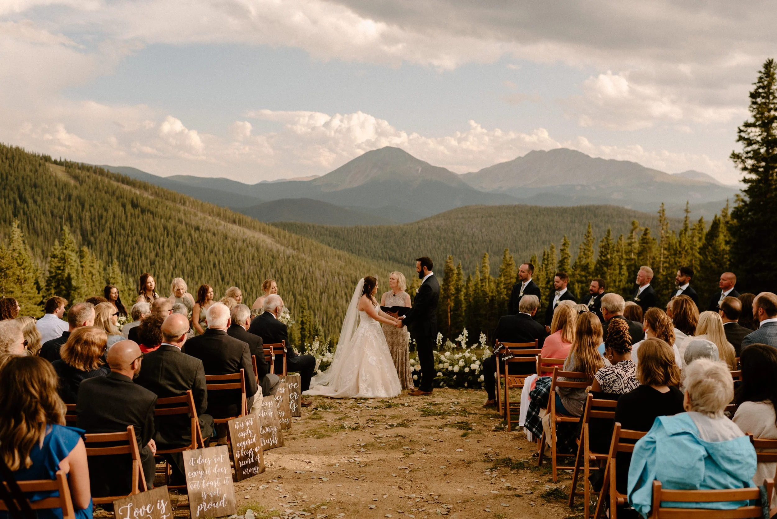 Mallory and Nick’s wedding at Timber Ridge in Keystone, Colorado last summer was one for the books! Timber Ridge is one of the most beautiful venues in Colorado (or maybe anywhere), and is such a fun experience! The venue is at the top of Keystone Resort, where you have to take not only one, but two gondolas to get to it. Once you’re there the views are epic, it’s remote and secluded, and the perfect mix of adventure and romance.
