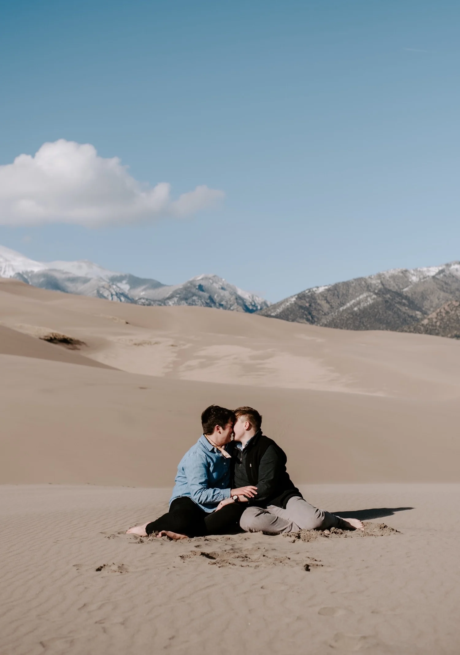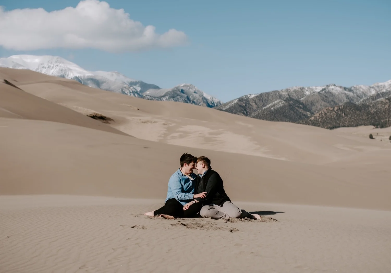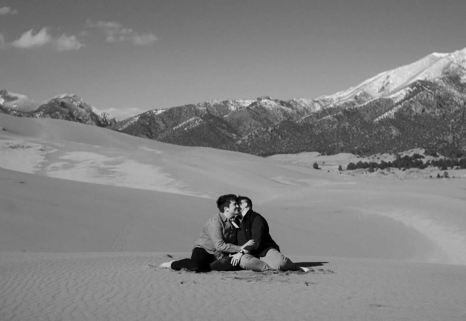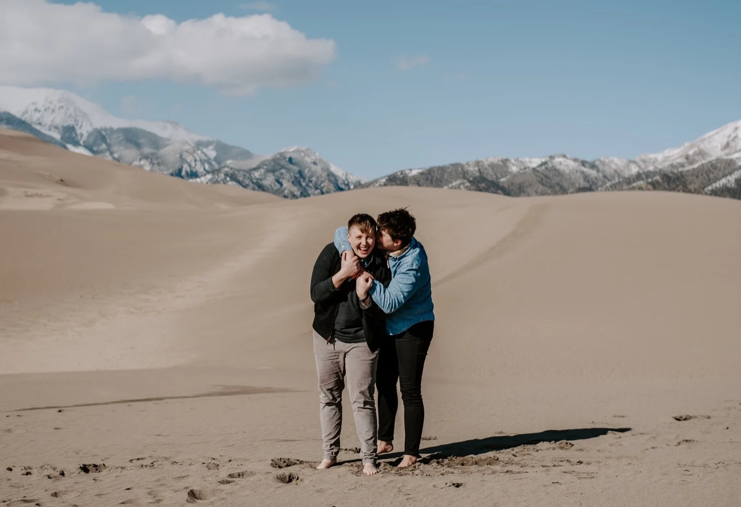 Kasey and Emily’s engagement session at The Great Sand Dunes National Park in Southern Colorado this spring was such a blast!! I had been dying to shoot an engagement session or elopement at The Great Sand Dunes for awhile, so when they suggested this spot for their session I was so excited! It’s a little bit of a trek from Denver to get there – but it is so worth it!