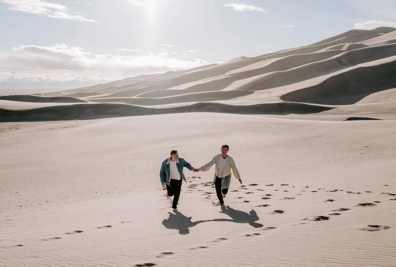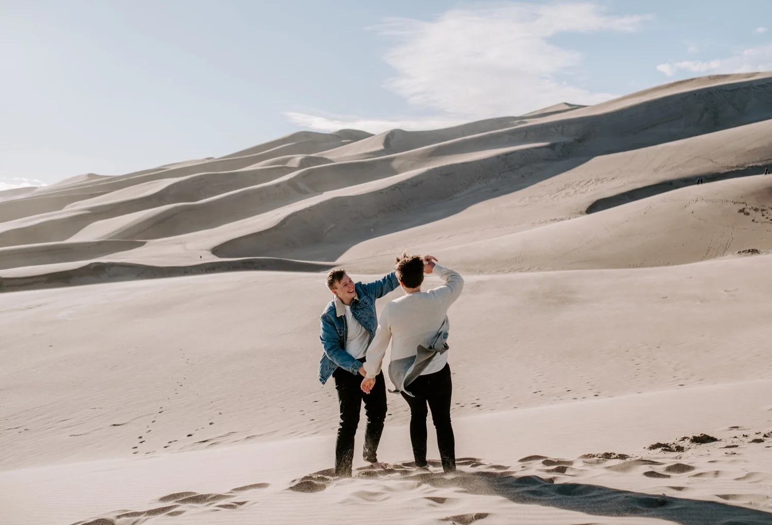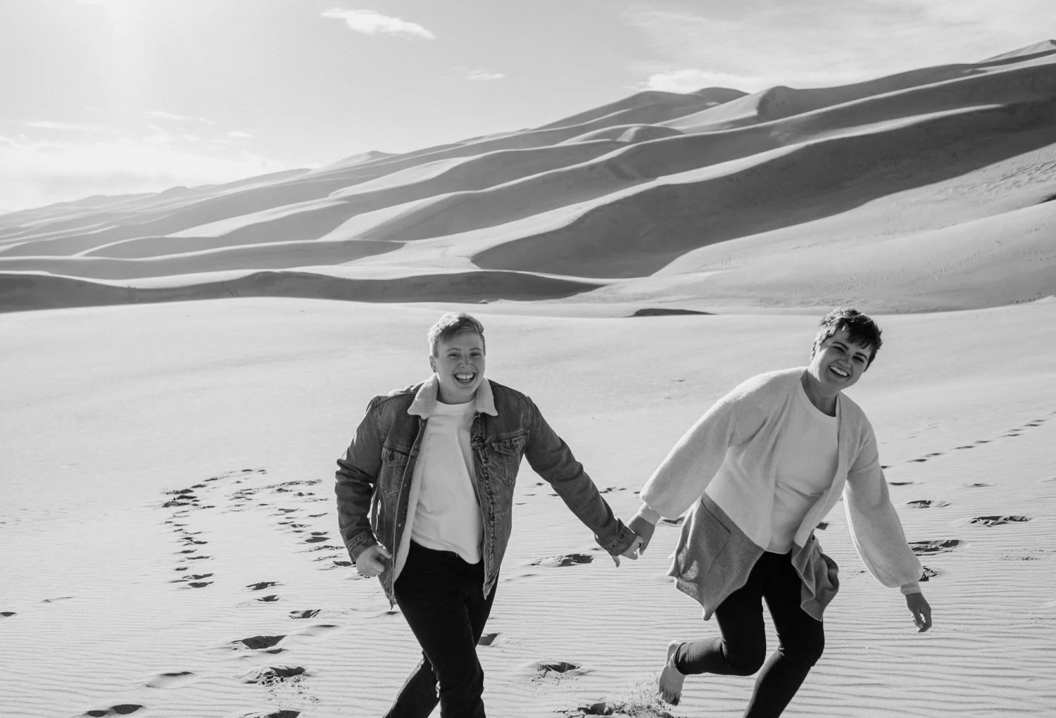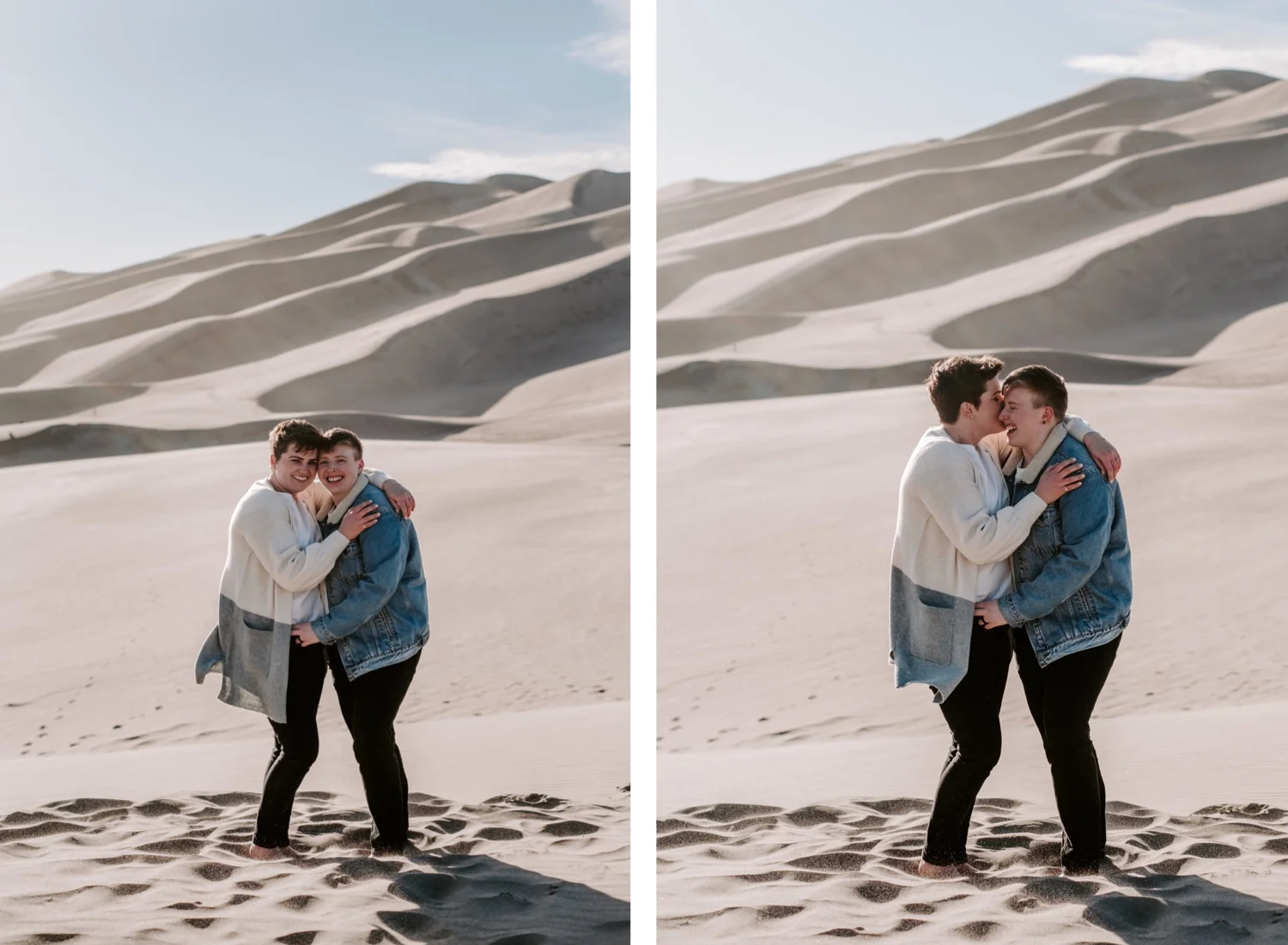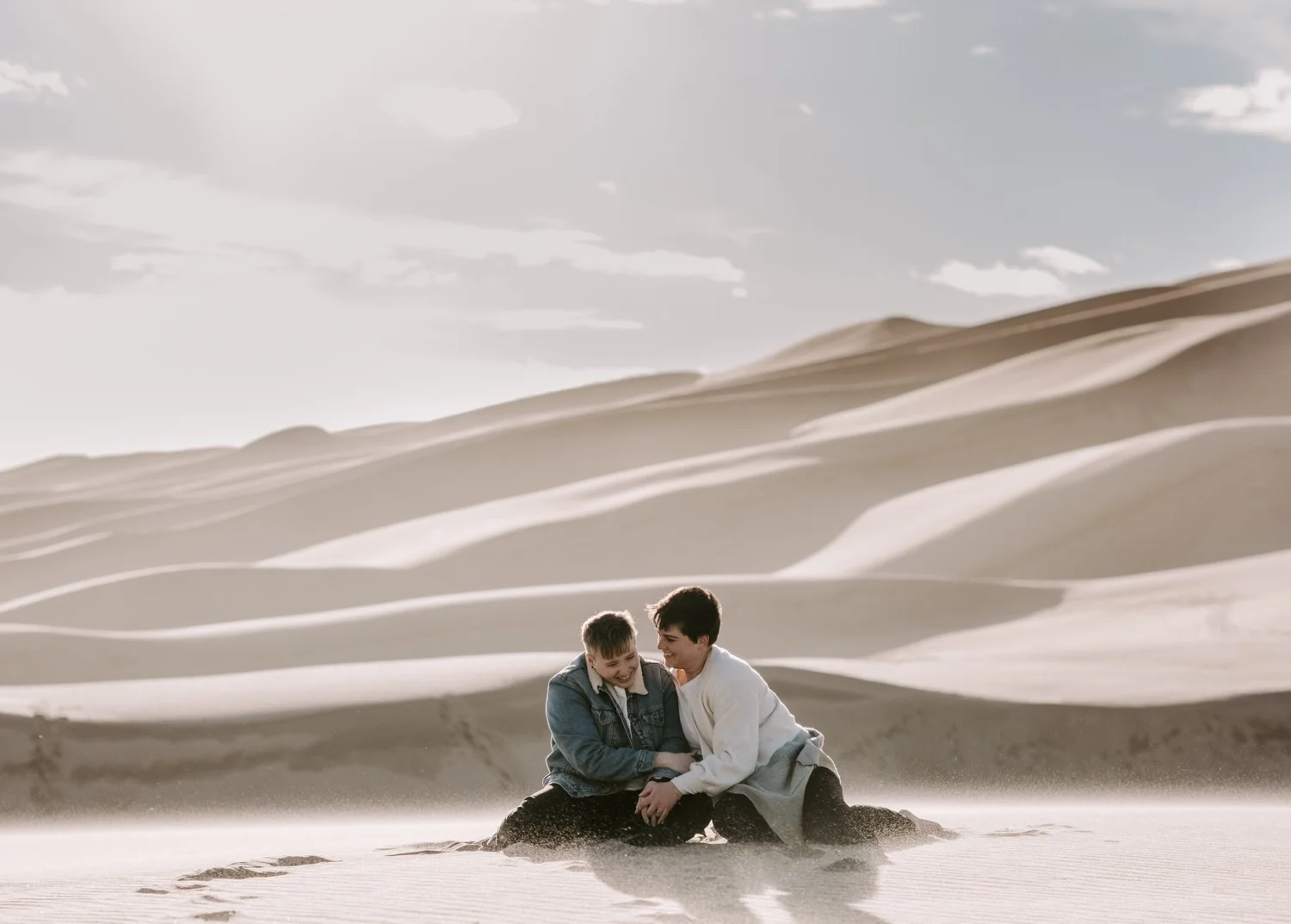 Kasey and Emily’s engagement session at The Great Sand Dunes National Park in Southern Colorado this spring was such a blast!! I had been dying to shoot an engagement session or elopement at The Great Sand Dunes for awhile, so when they suggested this spot for their session I was so excited! It’s a little bit of a trek from Denver to get there – but it is so worth it!
