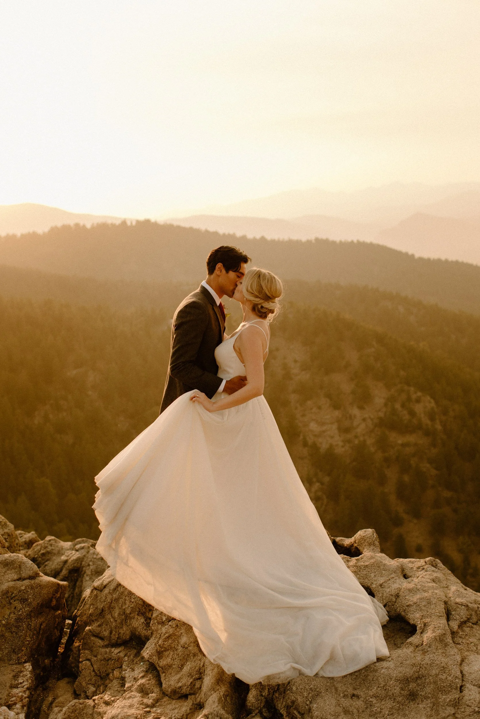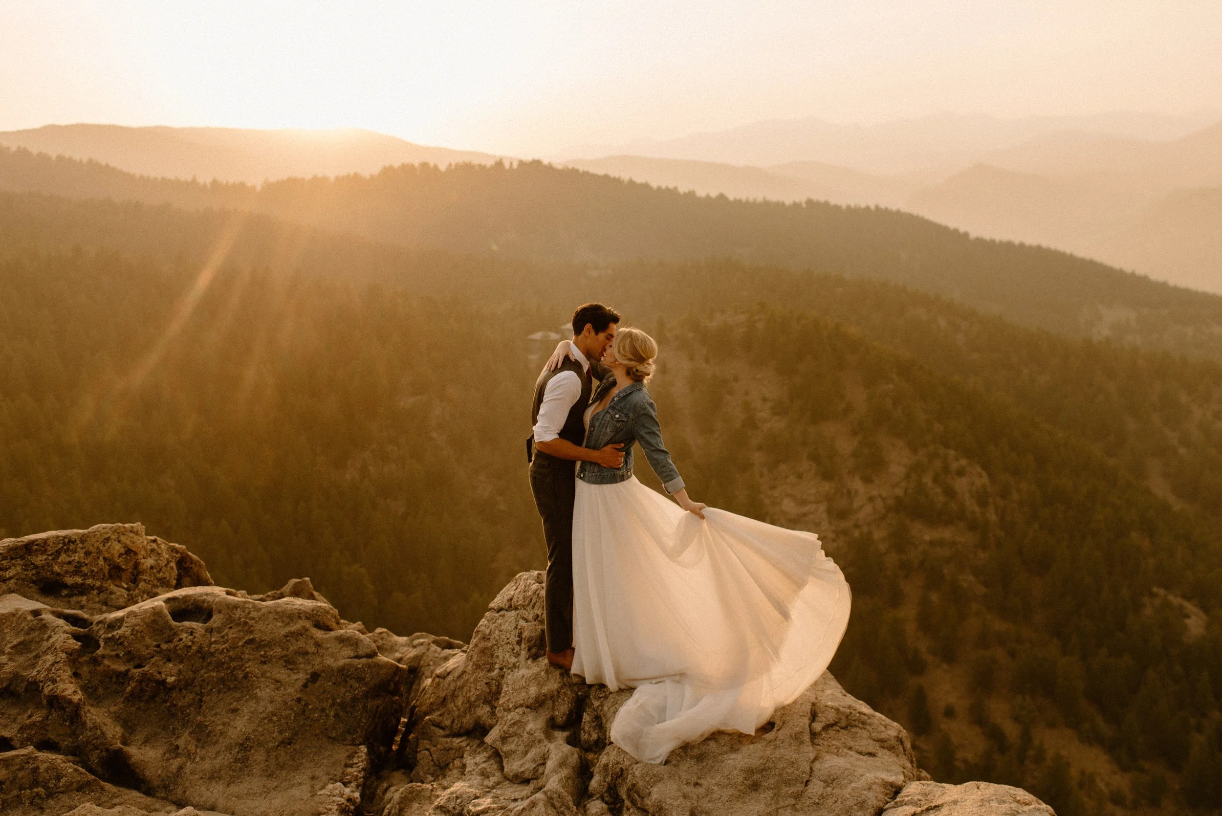 Allison and Jake’s day after session at Lost Gulch in Boulder, Colorado was so much fun and so magical! Allison and Jake got married at The Manor House in Littleton, Colorado the day before, and wanted to do something fun just the two of them the day after. The Manor House is absolutely stunning, but they also wanted to do something more in the mountains and without the pressure of the big day. I absolutely loved this idea because why not do both?! Not only did they get two days of amazing photos, but it helped to take a lot of the pressure of getting all the shots day of off, and just let them be present with their guests knowing that they were going to get even more amazing photos the day after.