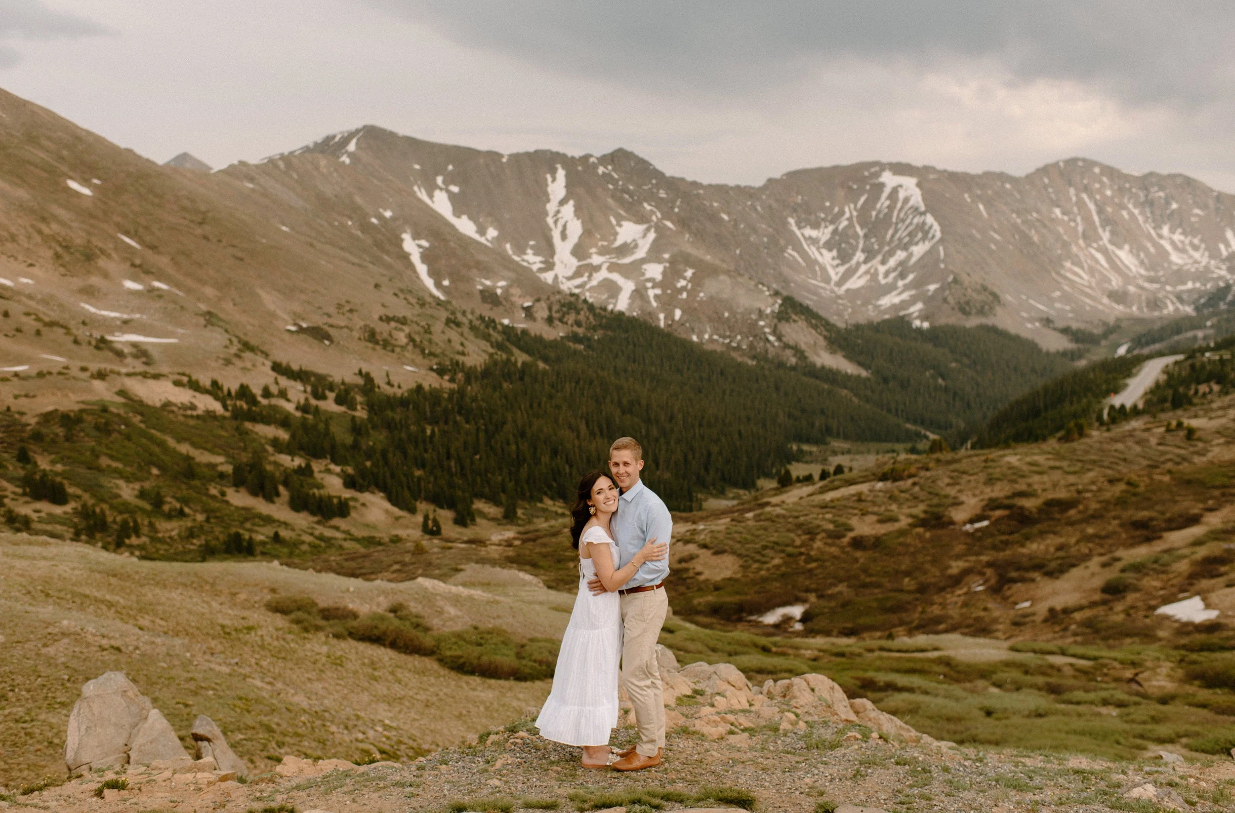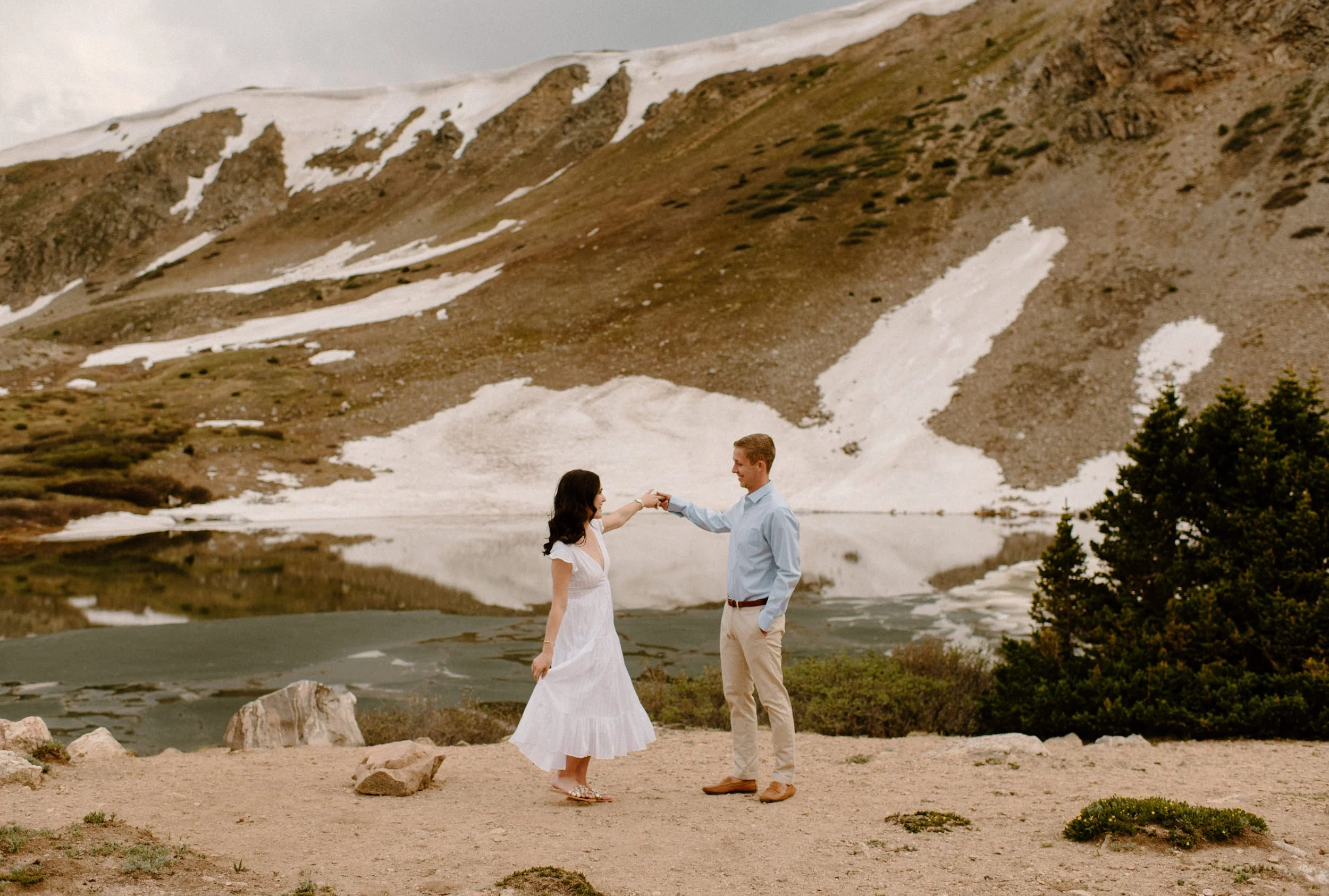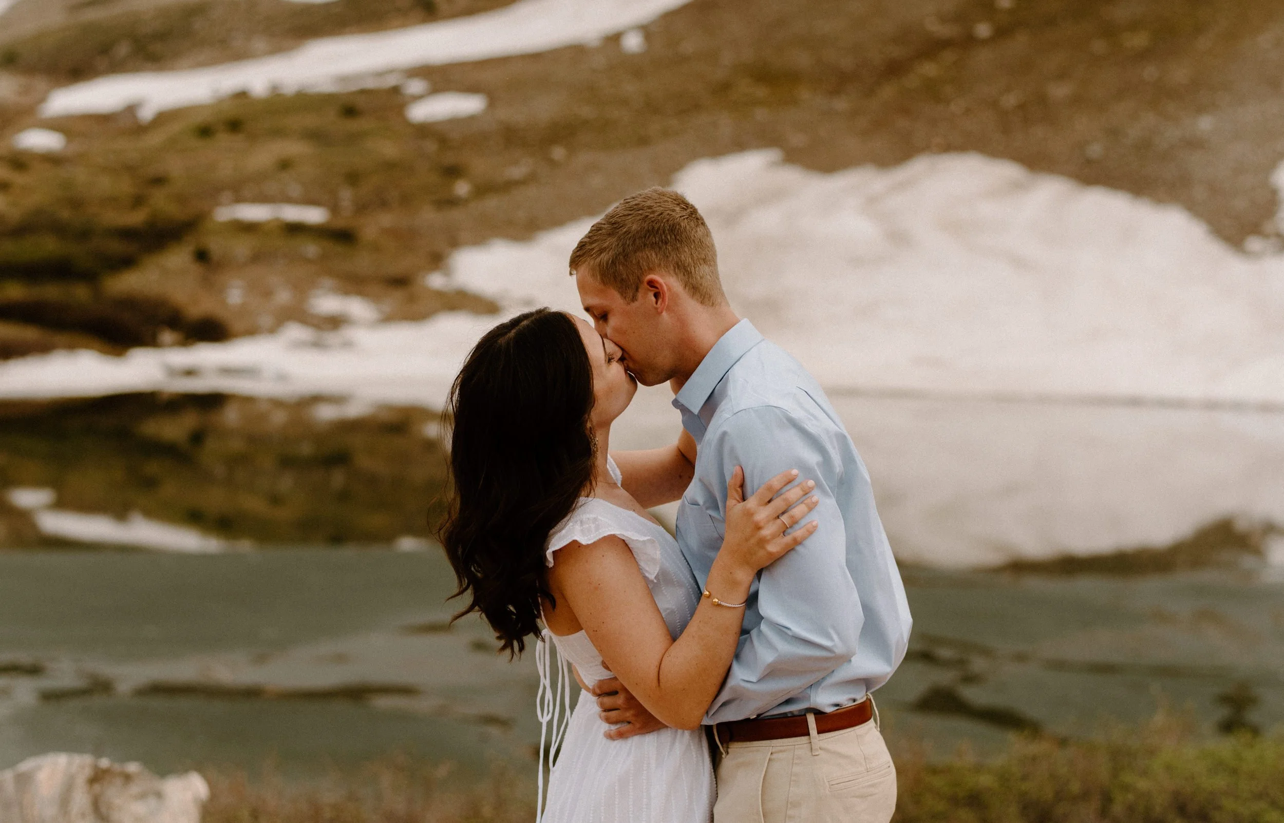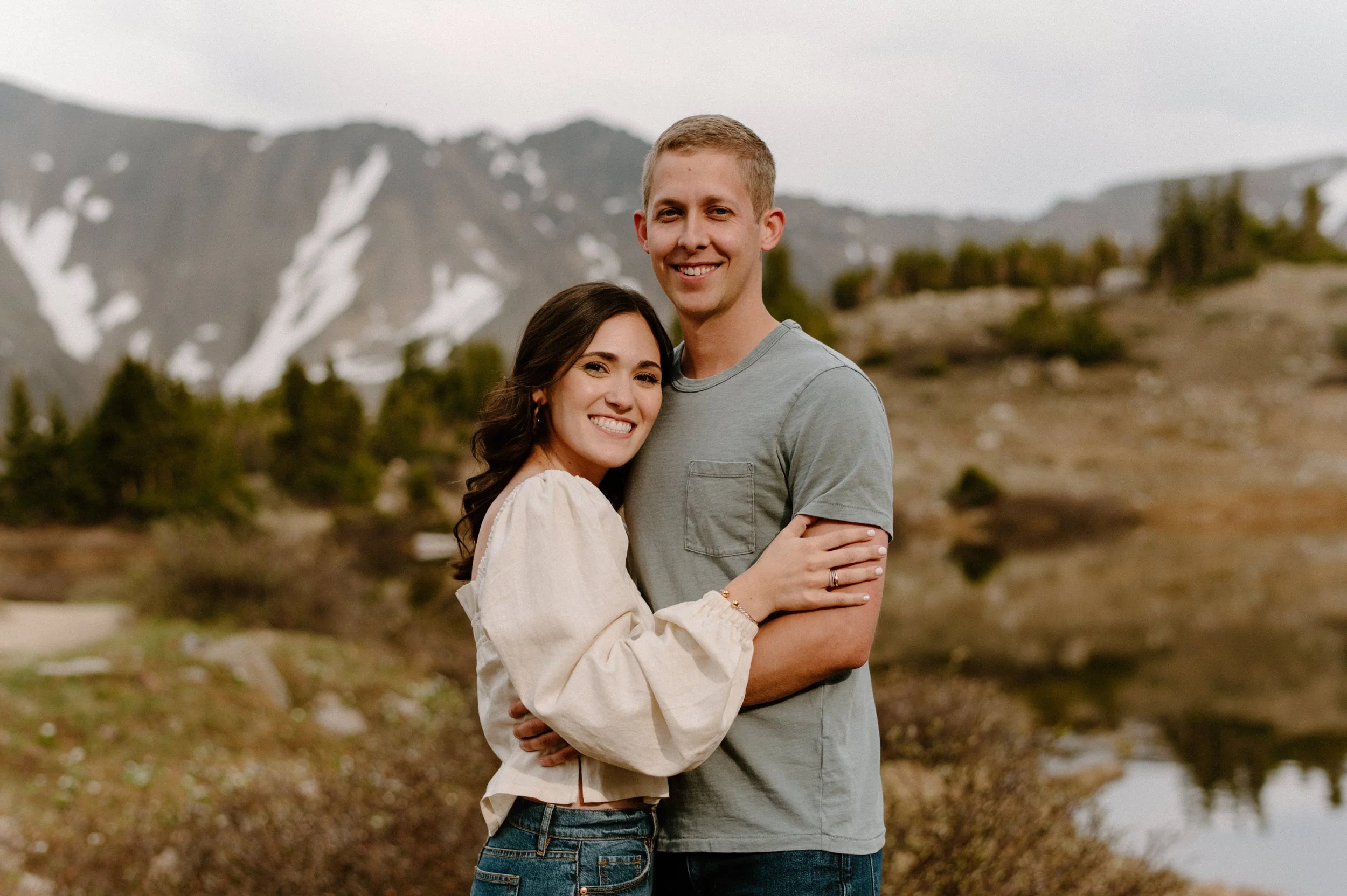 Katie and Mac’s summer alpine adventure engagement session at Loveland Pass near Keystone, Colorado was so gorgeous and so perfect! If you’re looking for an amazing location for engagement session photos in Colorado with epic Mountain Views – Loveland Pass never disappoints! It is absolutely stunning in every direction you look and one of my favorite places for engagement sessions in Colorado. The rain held off for us which led to the dreamiest lighting, and the lakes at Loveland Pass were just starting to melt. It was so pretty up there this evening!