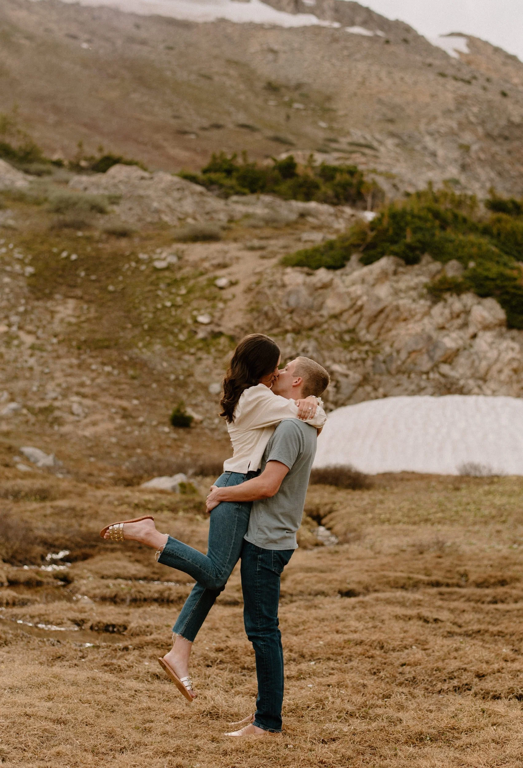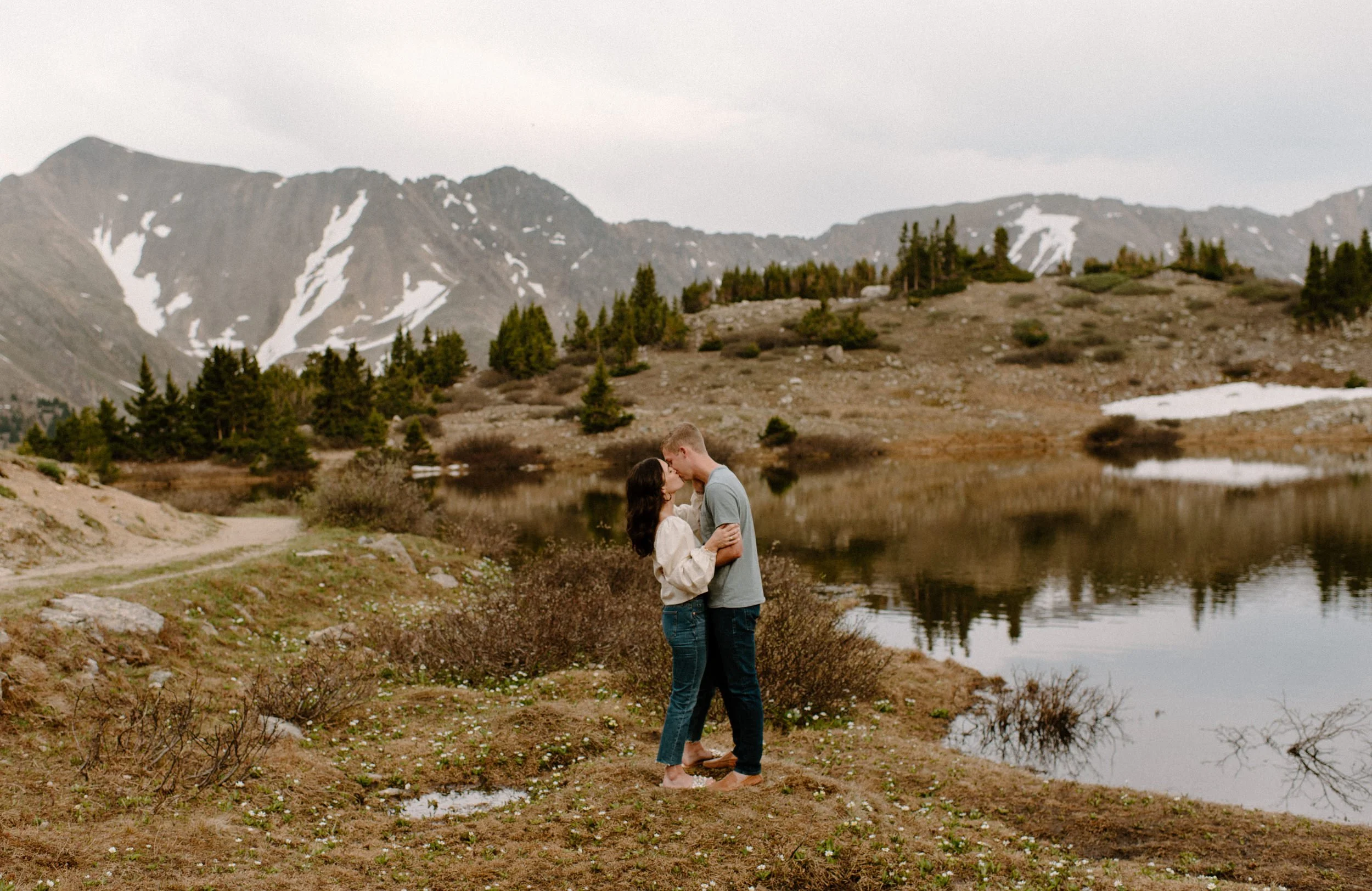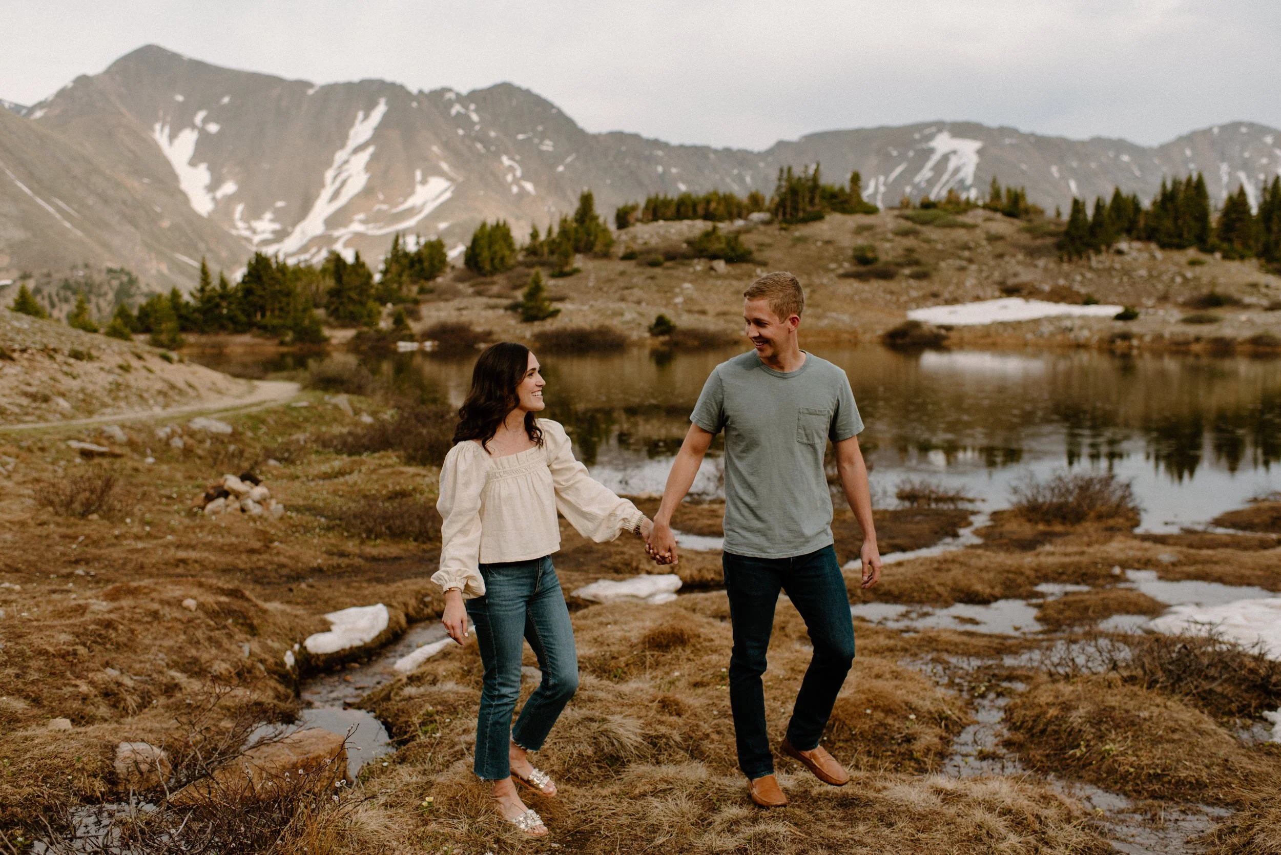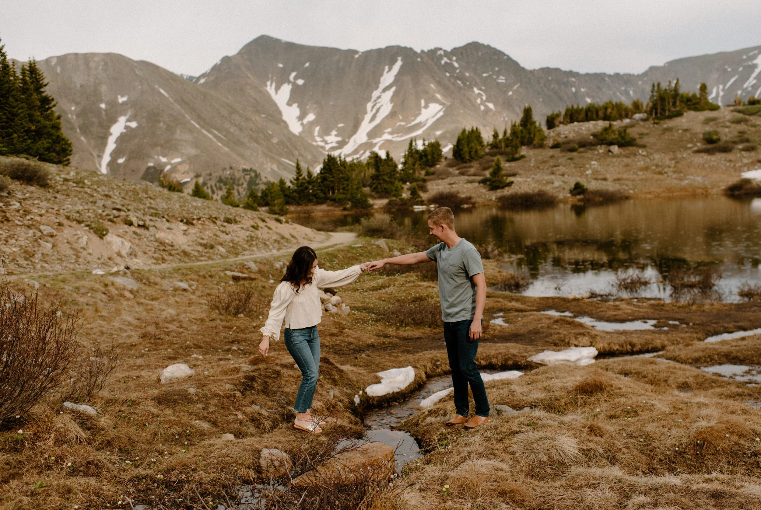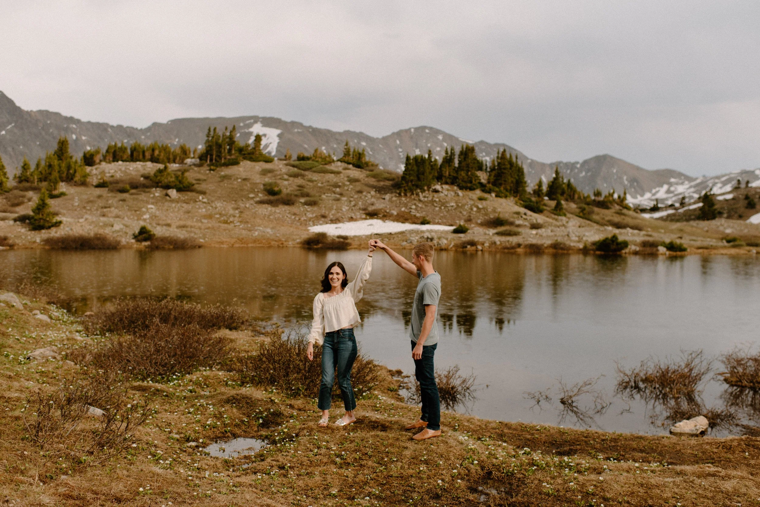 Katie and Mac’s summer alpine adventure engagement session at Loveland Pass near Keystone, Colorado was so gorgeous and so perfect! If you’re looking for an amazing location for engagement session photos in Colorado with epic Mountain Views – Loveland Pass never disappoints! It is absolutely stunning in every direction you look and one of my favorite places for engagement sessions in Colorado. The rain held off for us which led to the dreamiest lighting, and the lakes at Loveland Pass were just starting to melt. It was so pretty up there this evening!
