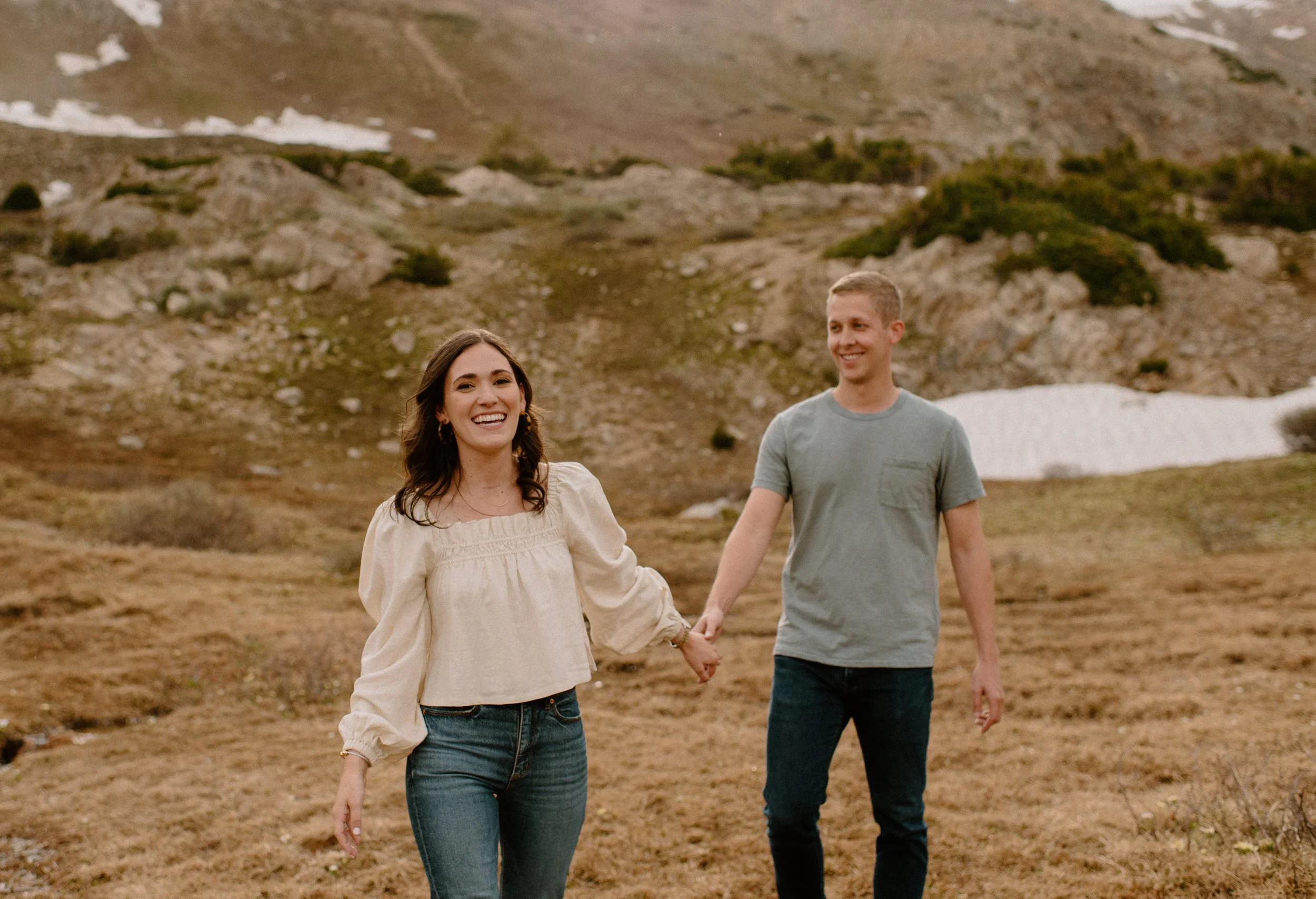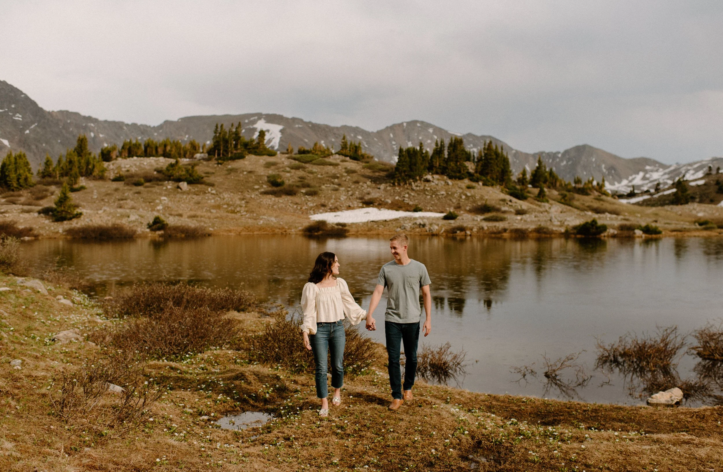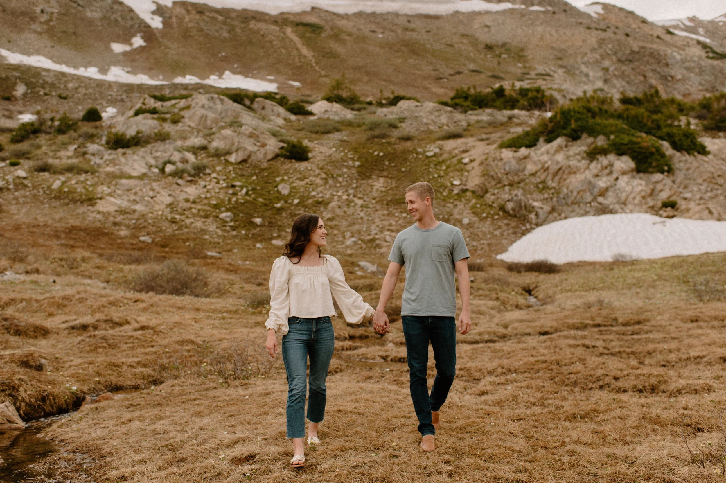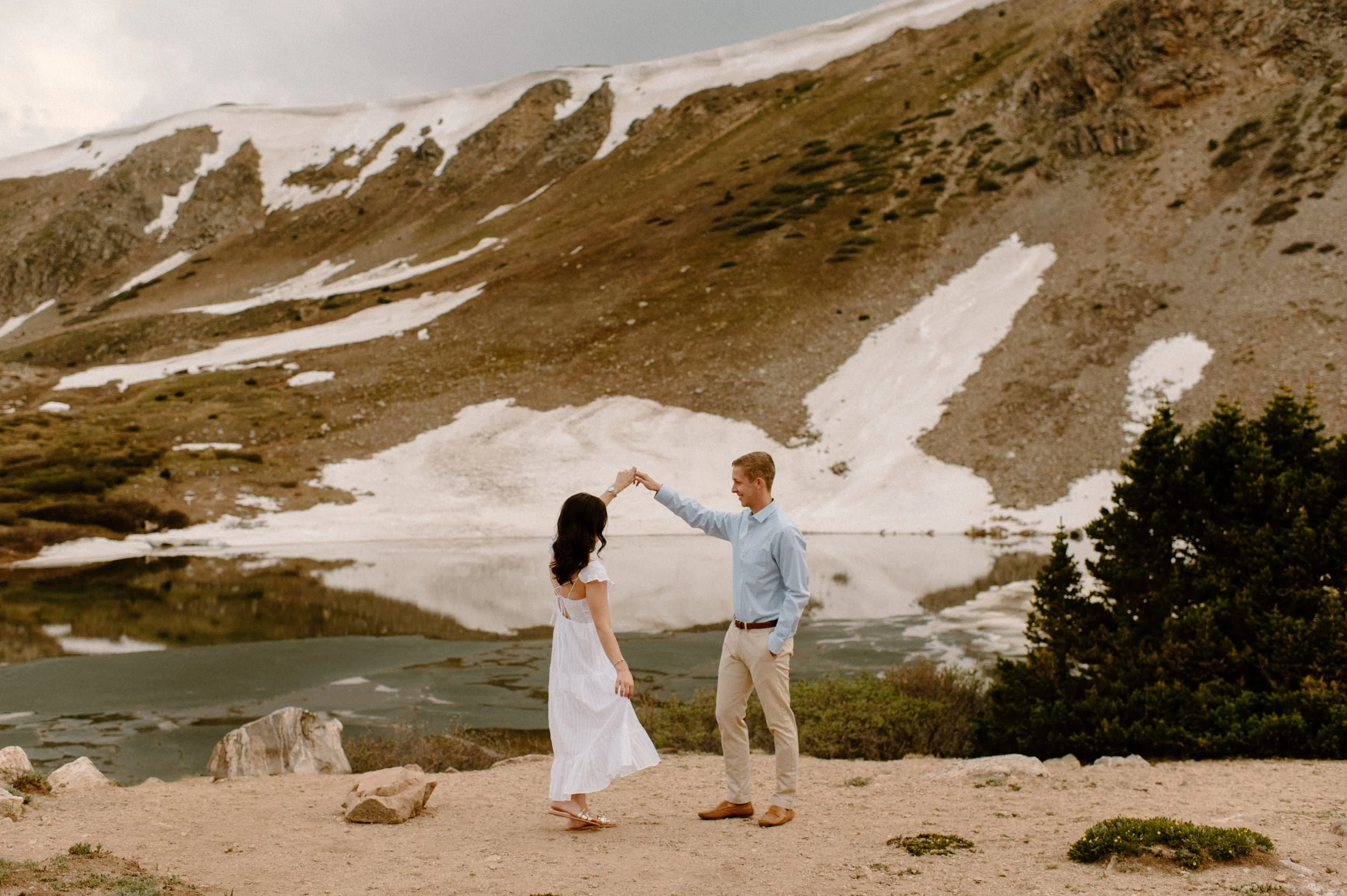 Katie and Mac’s summer alpine adventure engagement session at Loveland Pass near Keystone, Colorado was so gorgeous and so perfect! If you’re looking for an amazing location for engagement session photos in Colorado with epic Mountain Views – Loveland Pass never disappoints! It is absolutely stunning in every direction you look and one of my favorite places for engagement sessions in Colorado. The rain held off for us which led to the dreamiest lighting, and the lakes at Loveland Pass were just starting to melt. It was so pretty up there this evening!