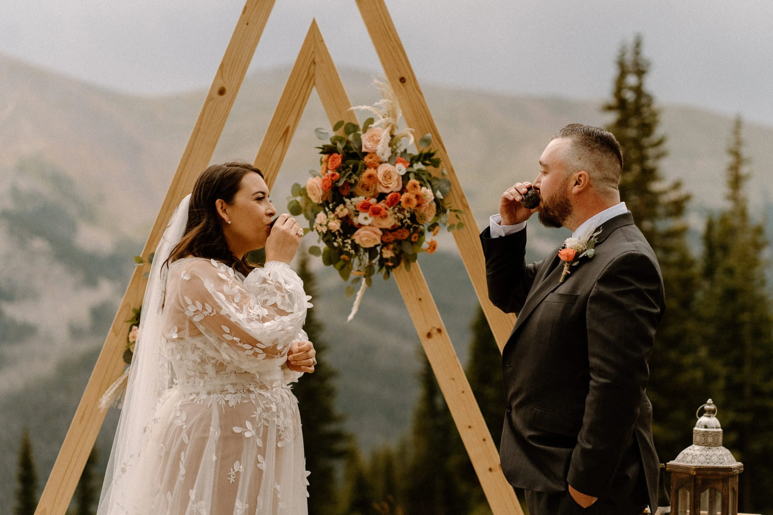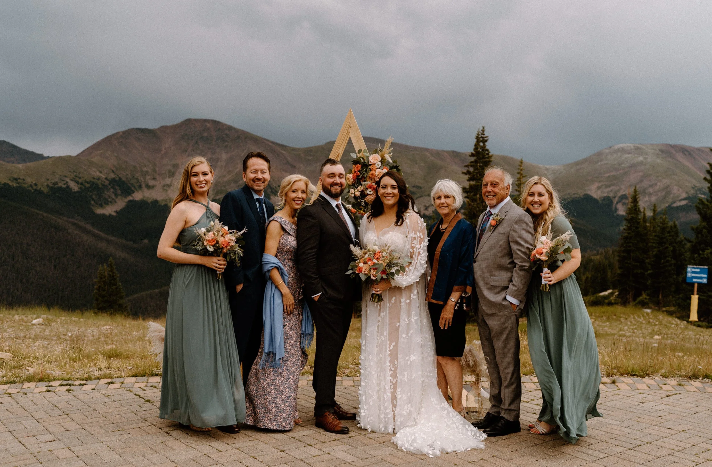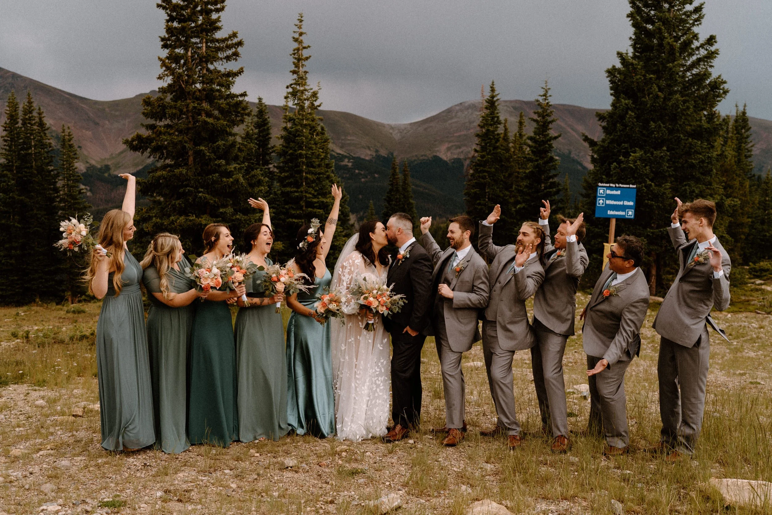 On Eliza and Travis’s wedding day I met them in the village to start the day getting ready. Once they were all ready we headed up the mountain early to do their first look, wedding party photos, and family photos all prior to the ceremony! Not only did it make the day so much more enjoyable and give us more time to soak in the scenery and day, we were able to knock out so many photos prior so they could spend the evening partying and celebrating with their friends and family!!