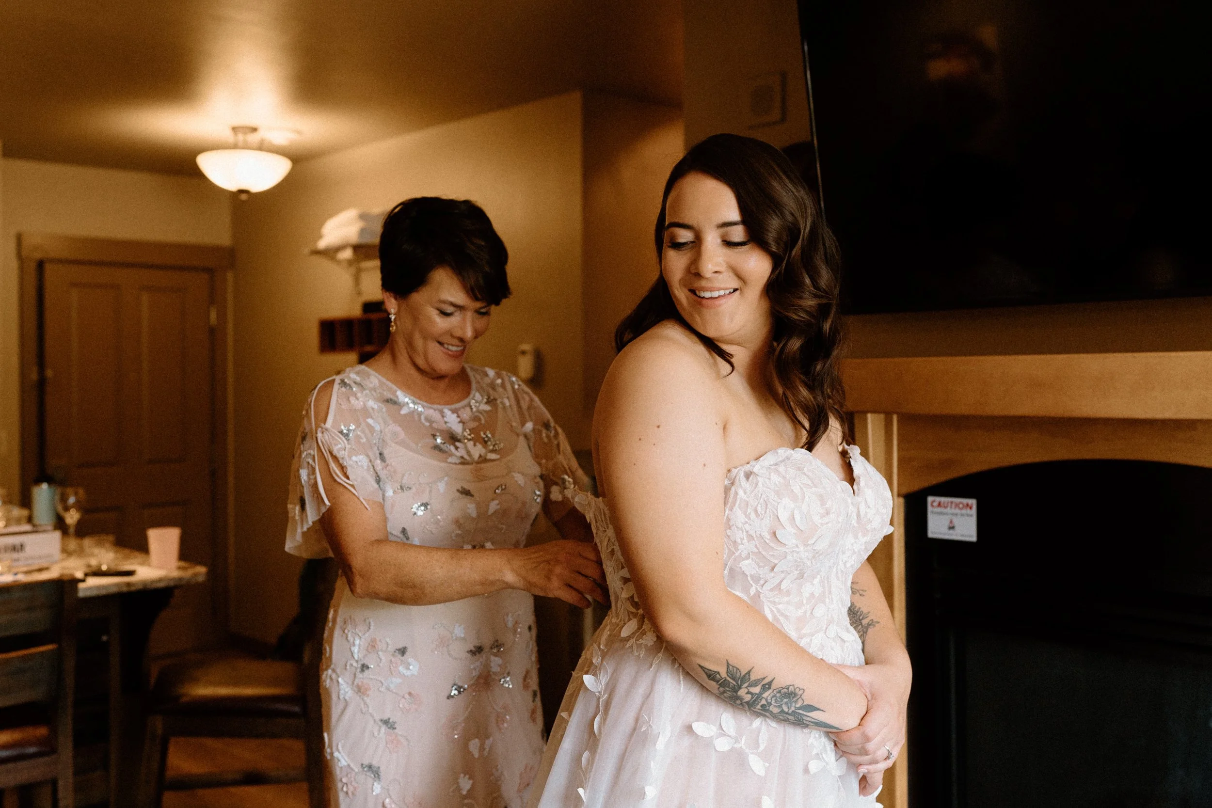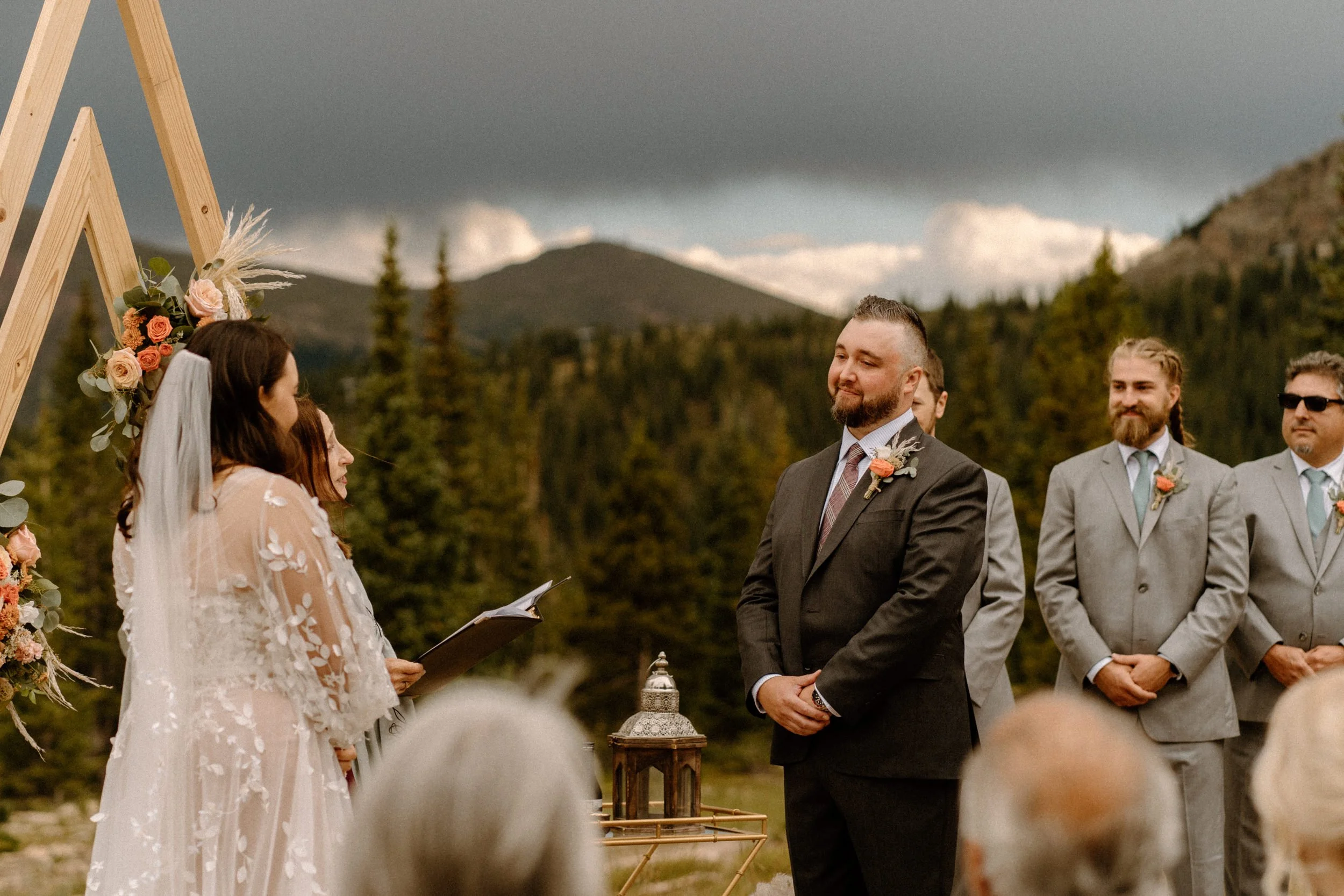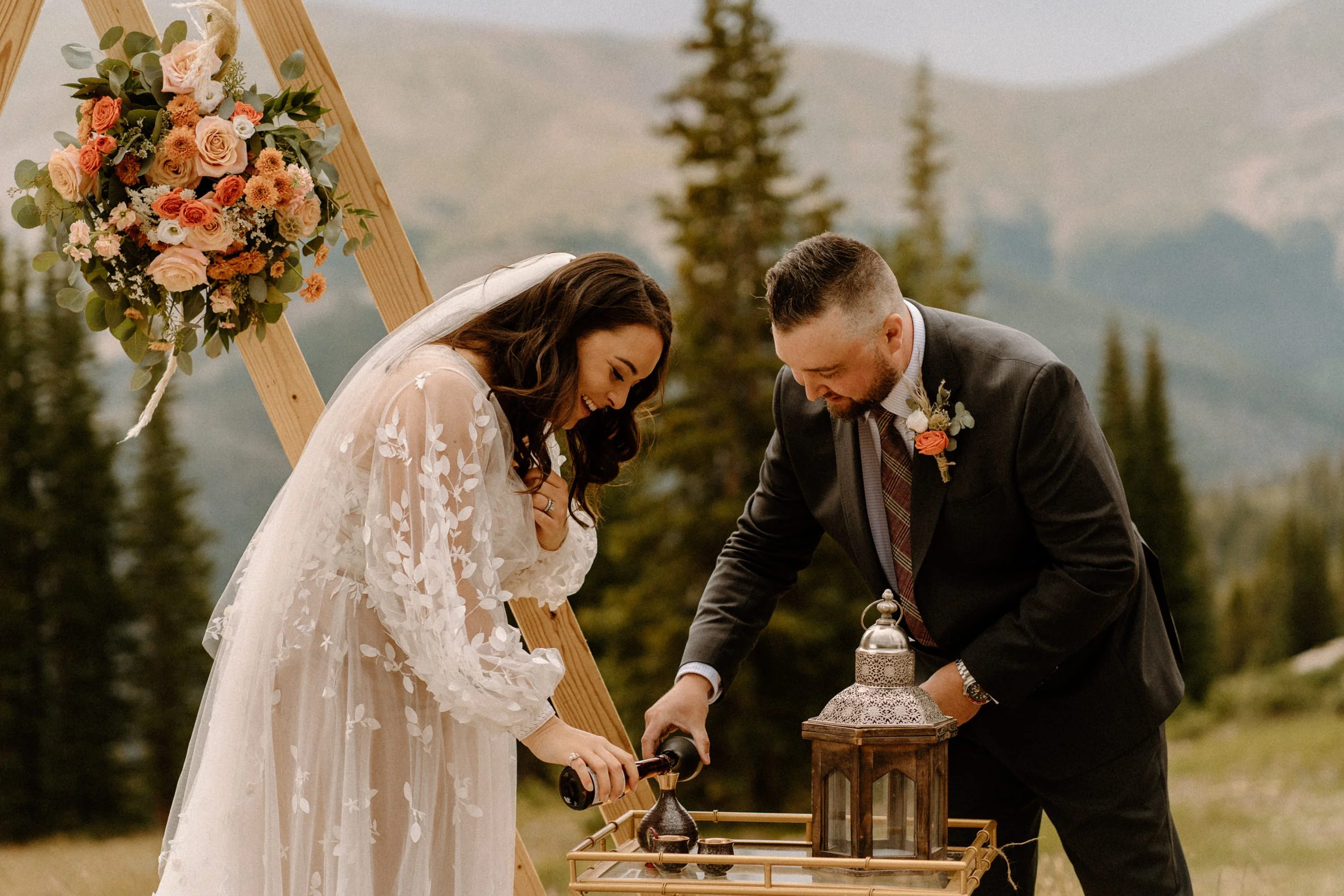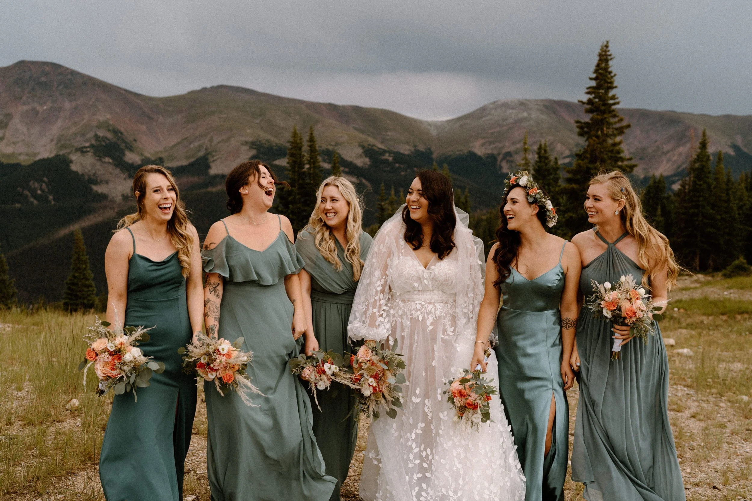 On Eliza and Travis’s wedding day I met them in the village to start the day getting ready. Once they were all ready we headed up the mountain early to do their first look, wedding party photos, and family photos all prior to the ceremony! Not only did it make the day so much more enjoyable and give us more time to soak in the scenery and day, we were able to knock out so many photos prior so they could spend the evening partying and celebrating with their friends and family!!