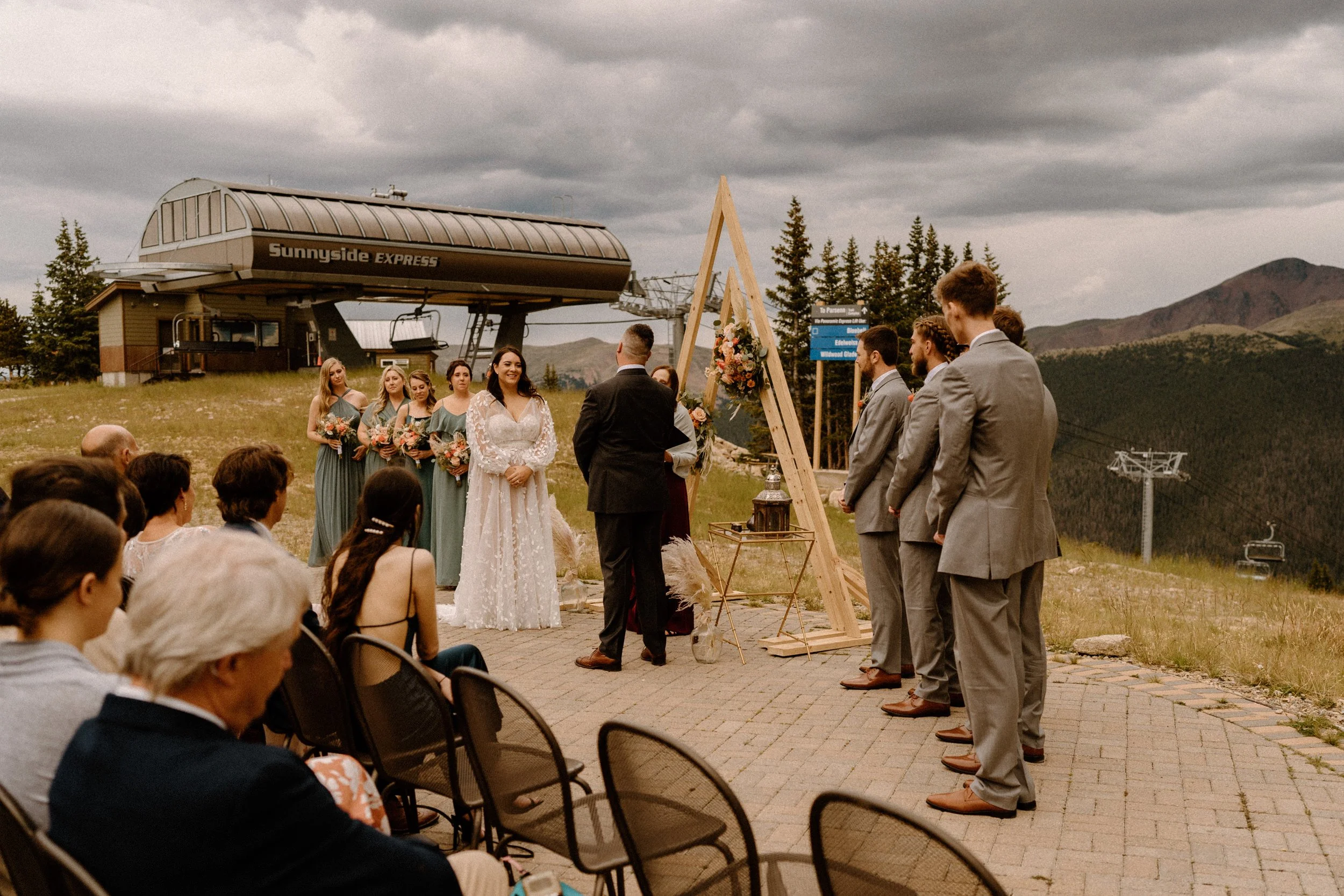 If you’re looking for a mountain wedding venue in Colorado – I would highly recommend Lunch Rock! Not only are the views AMAZING, you get to take the gondola up to the venue which is such a fun and unique experience for you and your guests! Once you make it to the top you’re literally on top of the ski mountain which is so fun and the views are absolutely breathtaking!