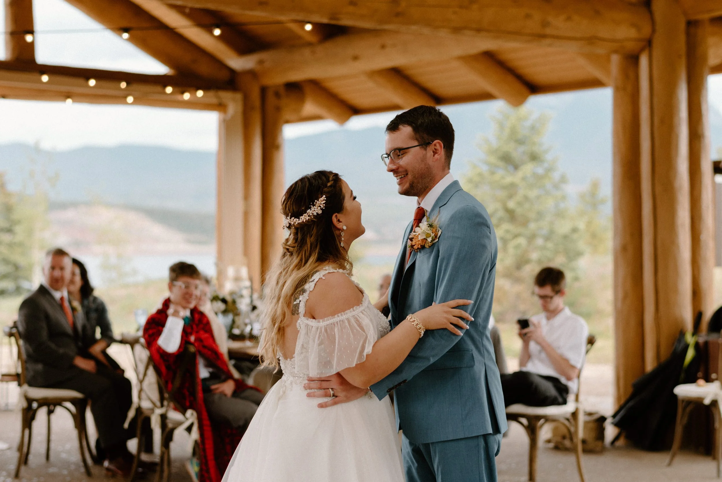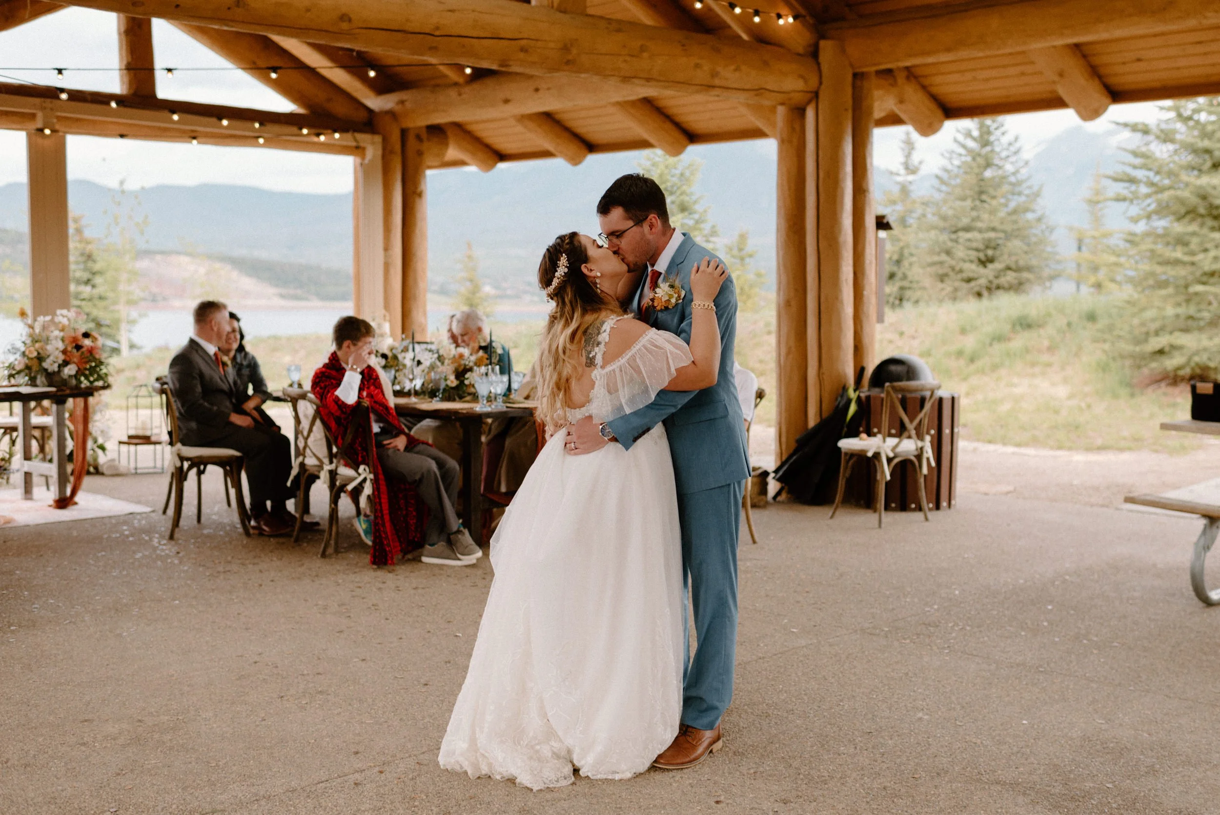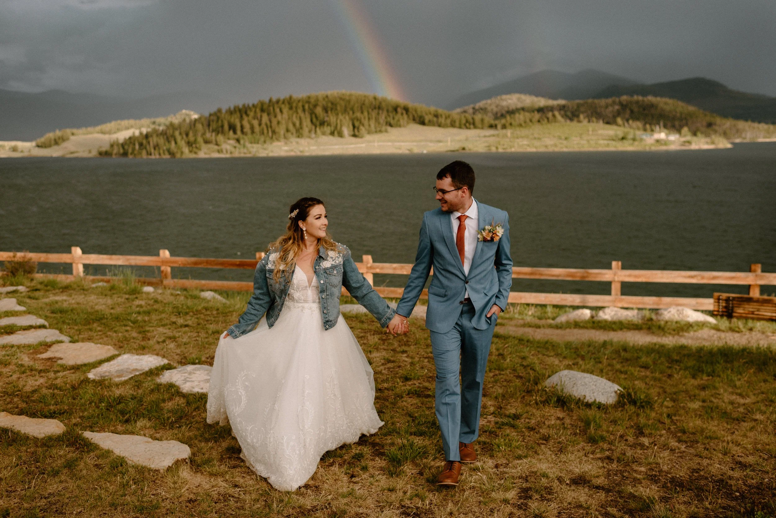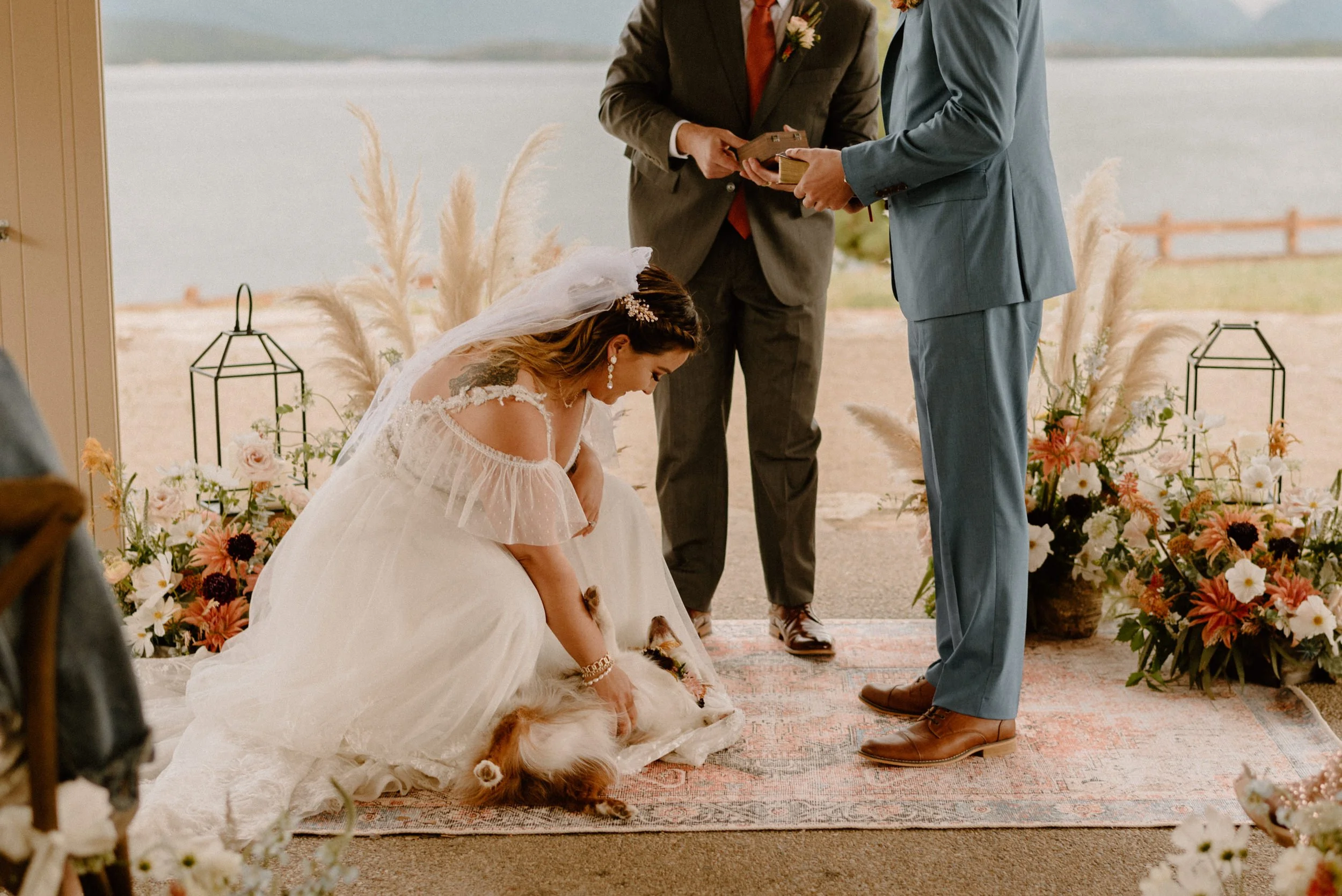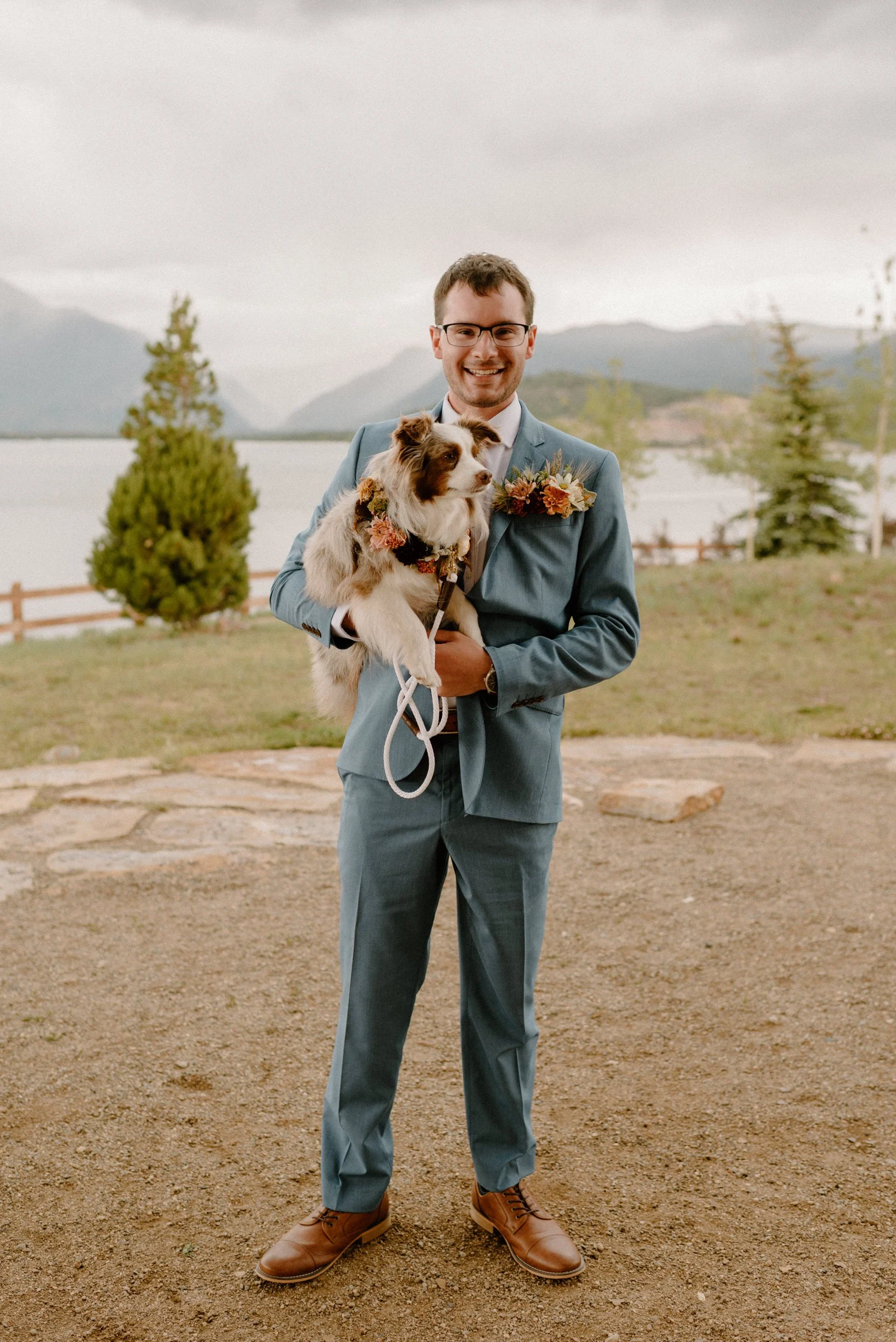 We started the day getting ready at their Airbnb in Breckenridge, followed by the sweetest first look ever up on Loveland Pass. It was freezing up there, but we got the most amazing clouds and fog! It was so pretty! After we finished up at the summit, we spent the rest of the afternoon adventuring around Lake Dillon taking photos. It was so much fun! We finally ended up at Marina Park for the ceremony and spent the afternoon mingling and celebrating. Their cute pup Nash even interrupted the ceremony for belly rubs which was the sweetest thing ever! Their reception was full of so much love, laughter, and even ended with the most stunning double rainbow I’ve ever seen!