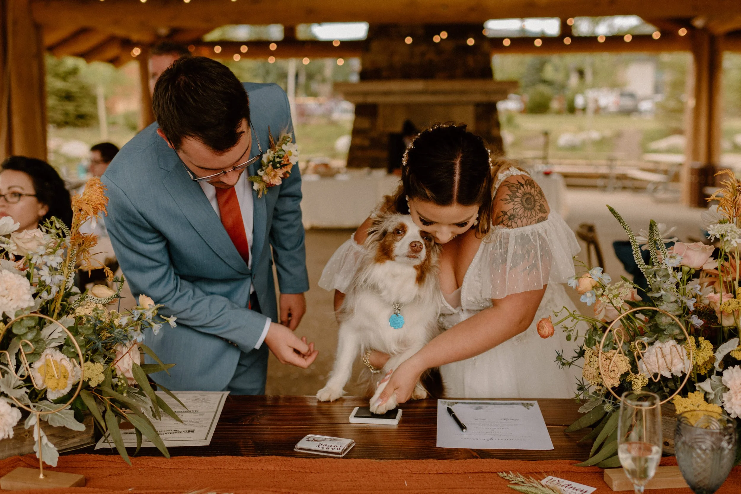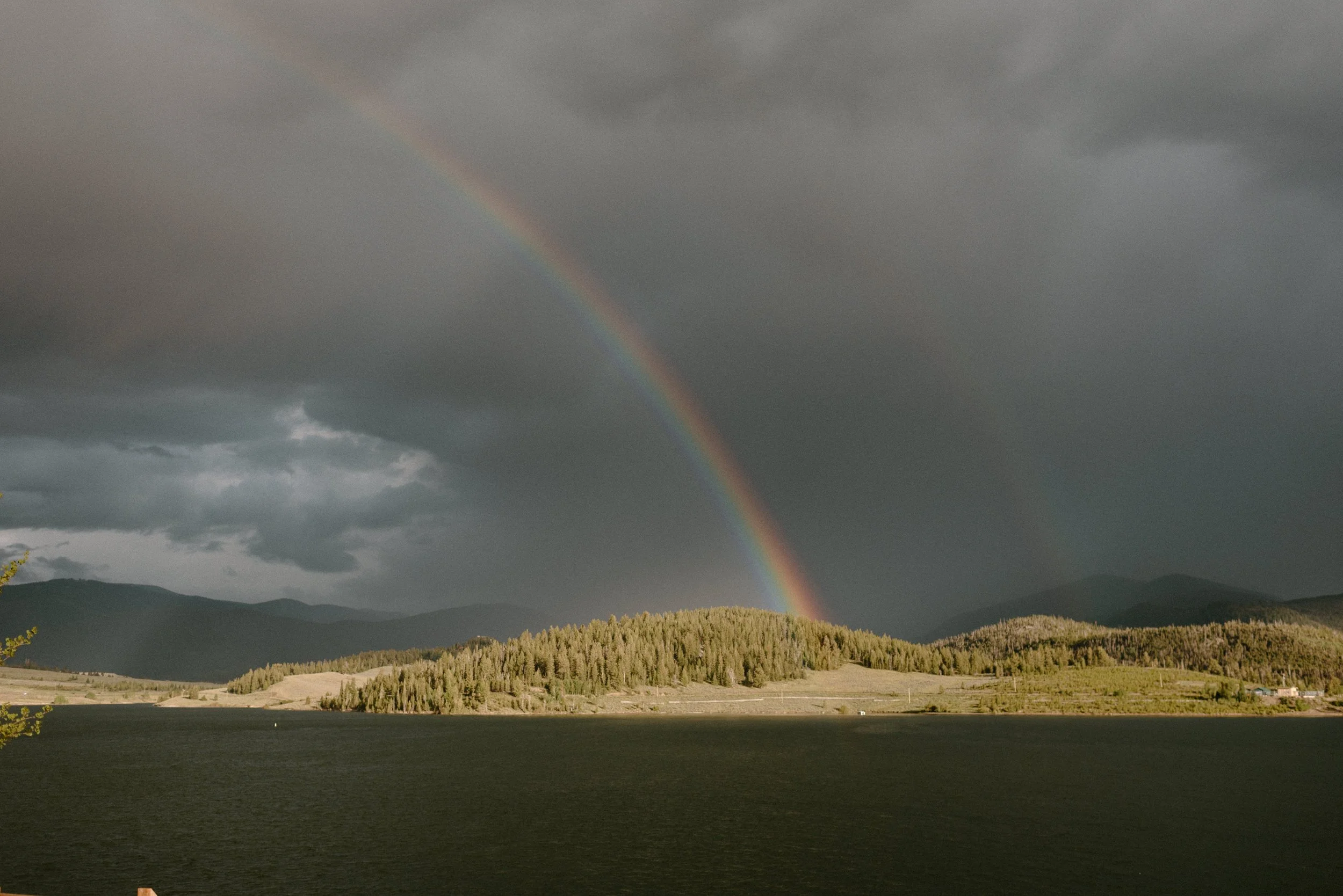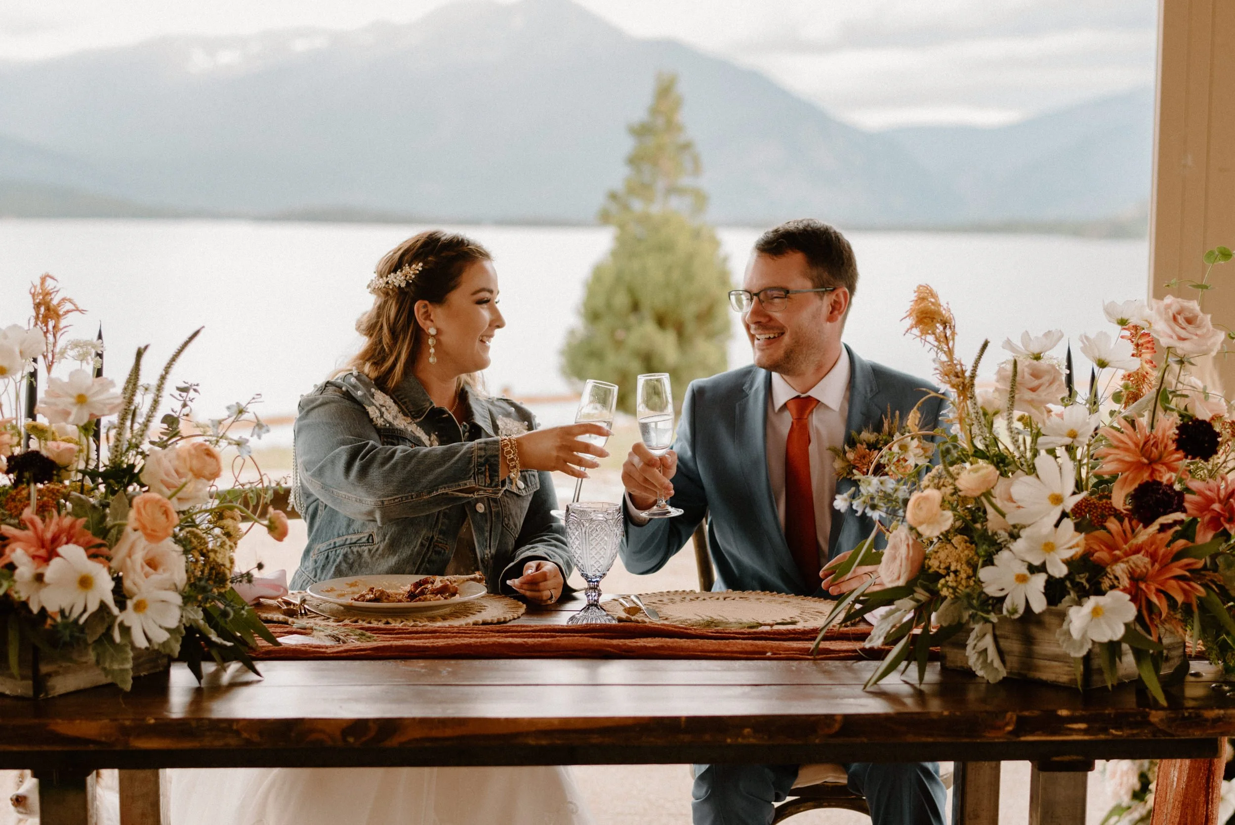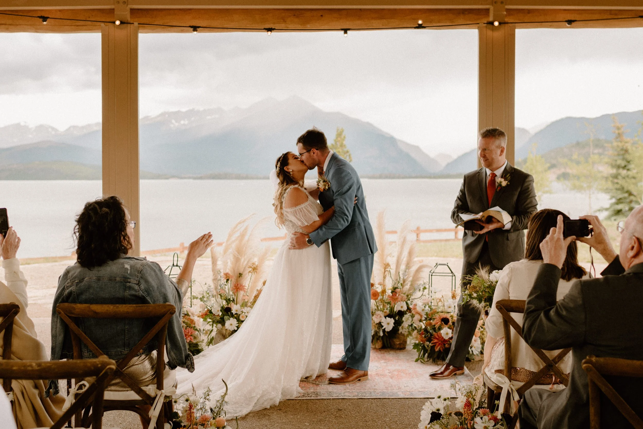 We started the day getting ready at their Airbnb in Breckenridge, followed by the sweetest first look ever up on Loveland Pass. It was freezing up there, but we got the most amazing clouds and fog! It was so pretty! After we finished up at the summit, we spent the rest of the afternoon adventuring around Lake Dillon taking photos. It was so much fun! We finally ended up at Marina Park for the ceremony and spent the afternoon mingling and celebrating. Their cute pup Nash even interrupted the ceremony for belly rubs which was the sweetest thing ever! Their reception was full of so much love, laughter, and even ended with the most stunning double rainbow I’ve ever seen!