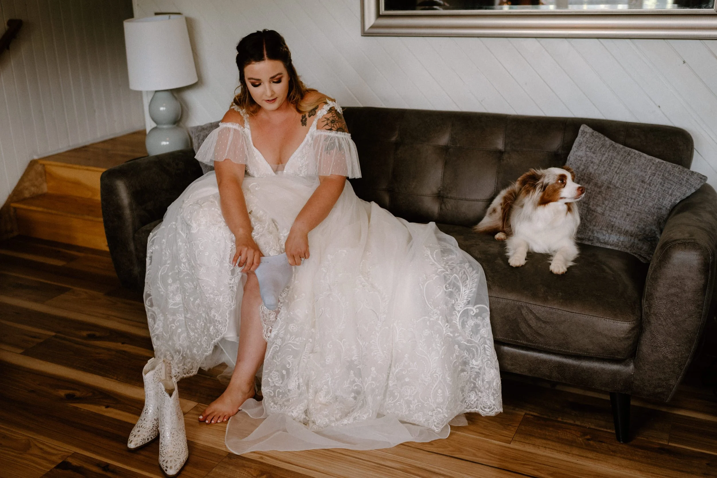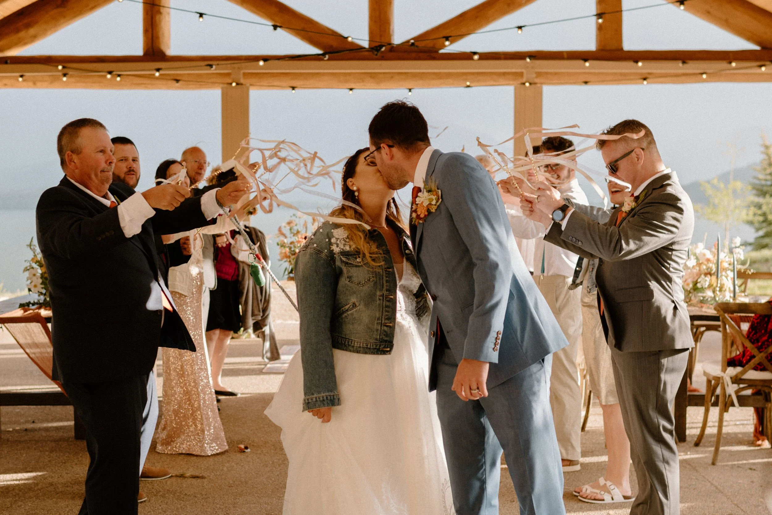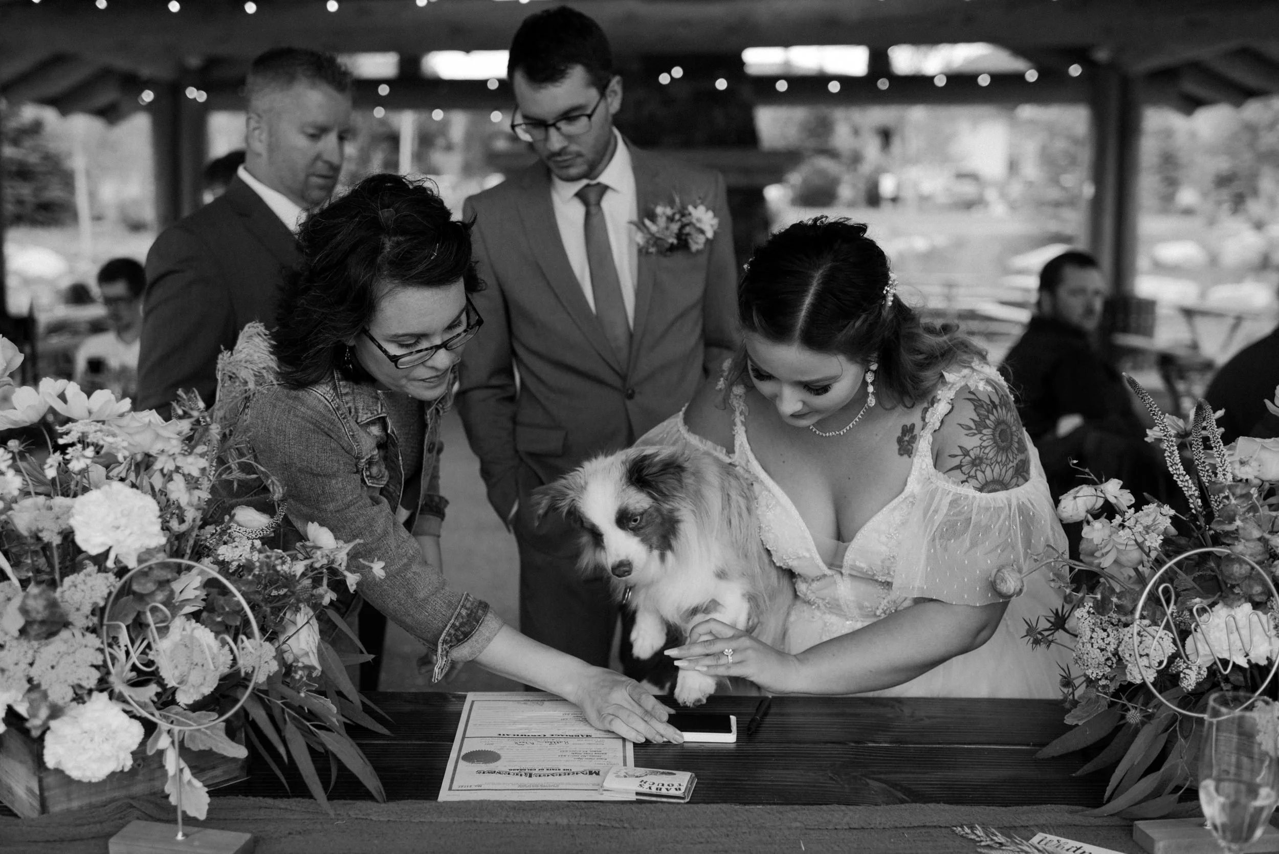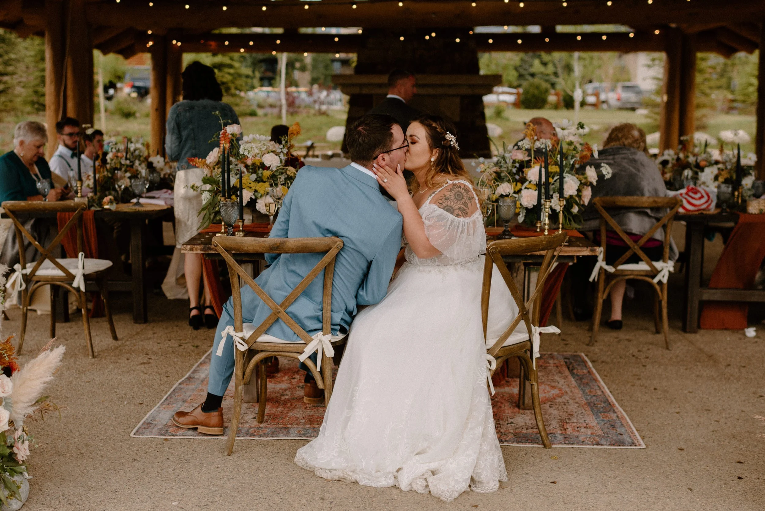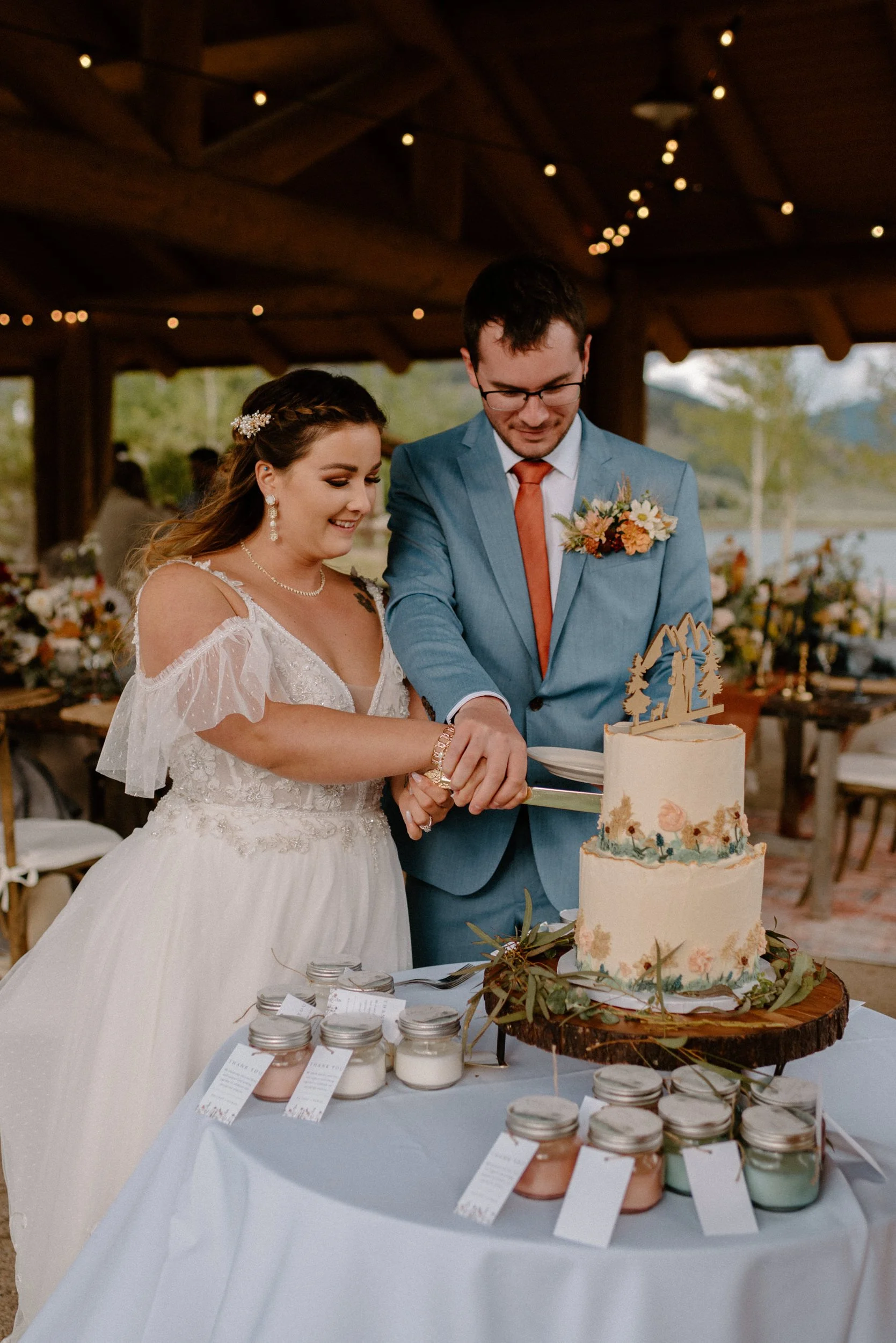 We started the day getting ready at their Airbnb in Breckenridge, followed by the sweetest first look ever up on Loveland Pass. It was freezing up there, but we got the most amazing clouds and fog! It was so pretty! After we finished up at the summit, we spent the rest of the afternoon adventuring around Lake Dillon taking photos. It was so much fun! We finally ended up at Marina Park for the ceremony and spent the afternoon mingling and celebrating. Their cute pup Nash even interrupted the ceremony for belly rubs which was the sweetest thing ever! Their reception was full of so much love, laughter, and even ended with the most stunning double rainbow I’ve ever seen!