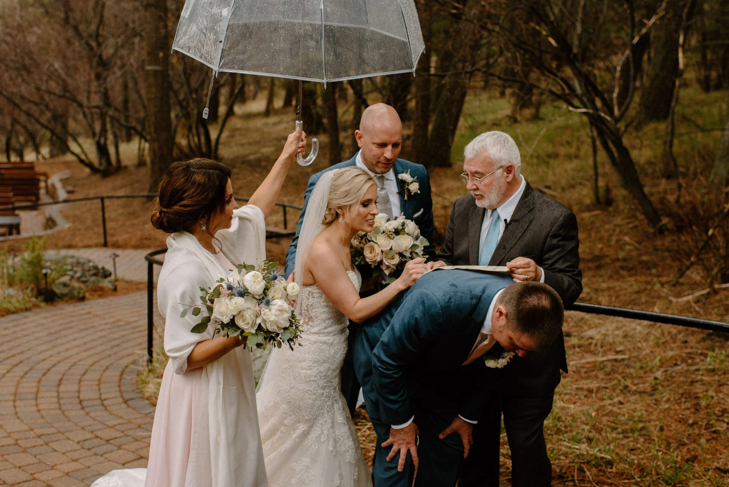 We started out Heidi and Jason’s wedding day getting ready and then went for first look and wedding party photos at Lookout Mountain near the venue. It was so much fun getting to adventure around with these two and their crew! When we made it to the venue, the rain began to start. Instead of stressing about or moving the ceremony inside, these two just decided to embrace it! They had umbrellas handed out and did the ceremony outside anyways. It was SO gorgeous and added to the romantic ambiance of the day! From there they spent the evening dancing, laughing, and celebrating with friends and family. It was the perfect example of making your wedding day amazing no matter what and not stressing things out of your control like the weather!