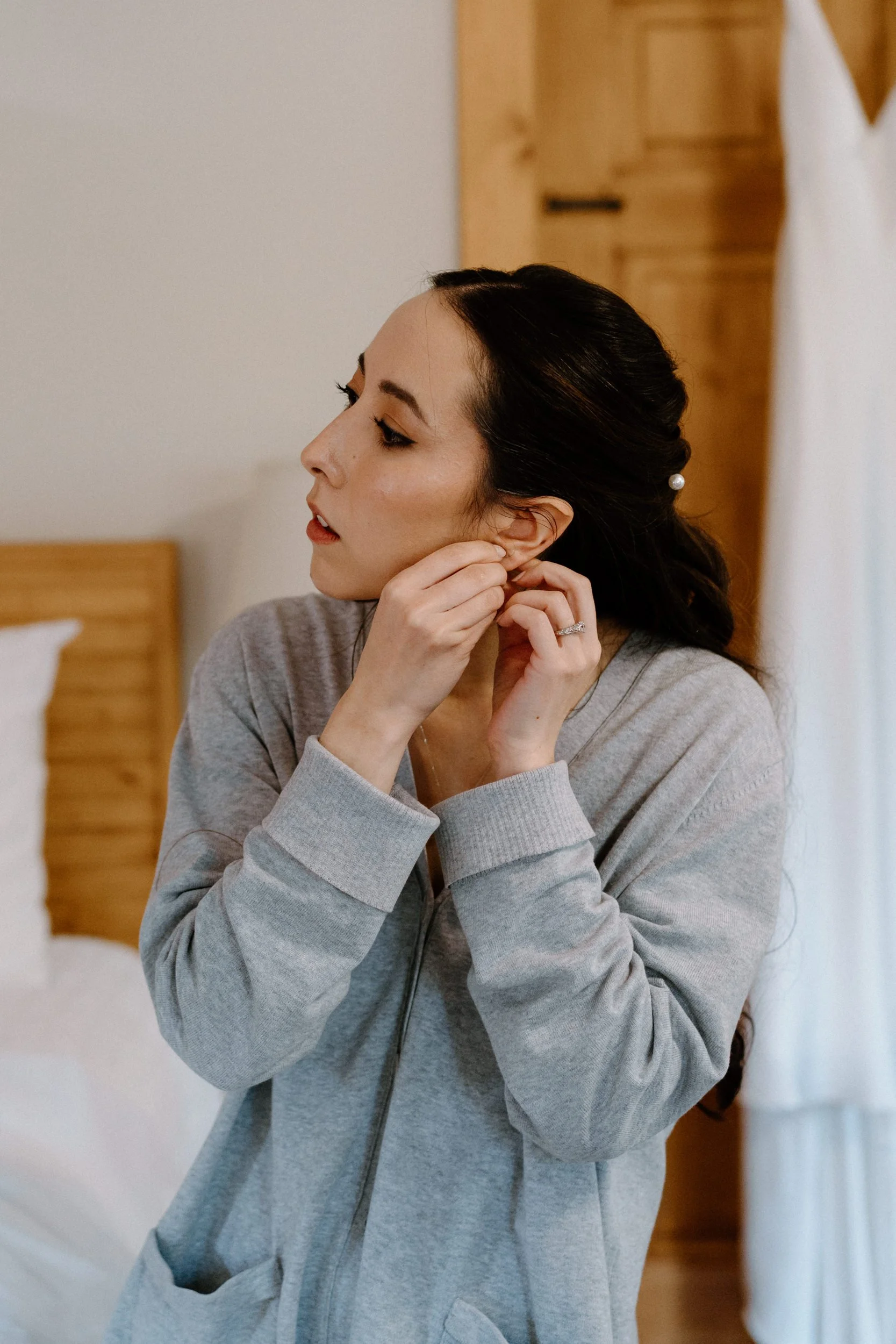 Once we got to the venue, Rachel finished getting ready in the Bonnie and Bettie suites, which were not only adorable but filled with natural light (a photographer’s dream!). It was the perfect space for those quiet final moments before walking down the aisle.
