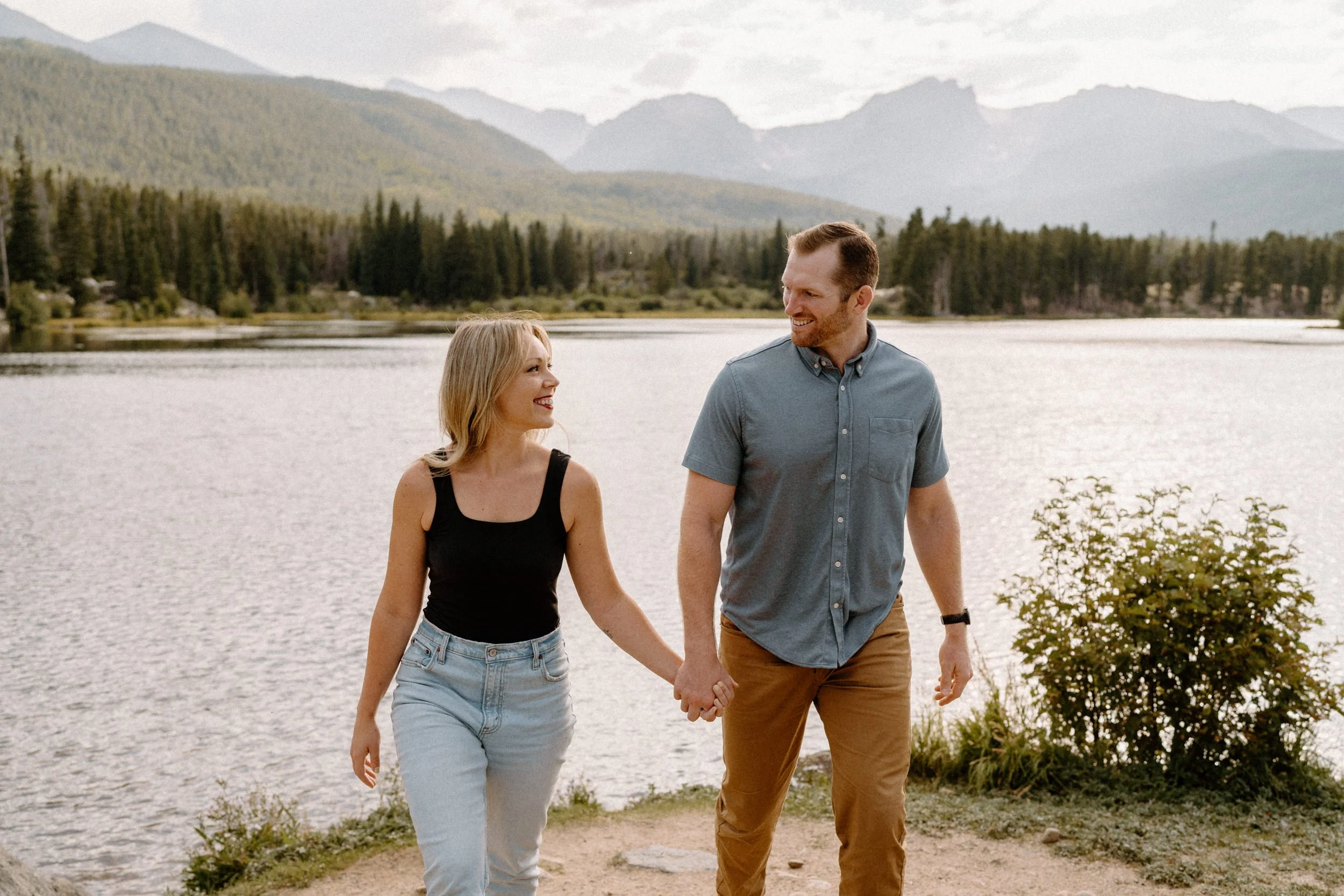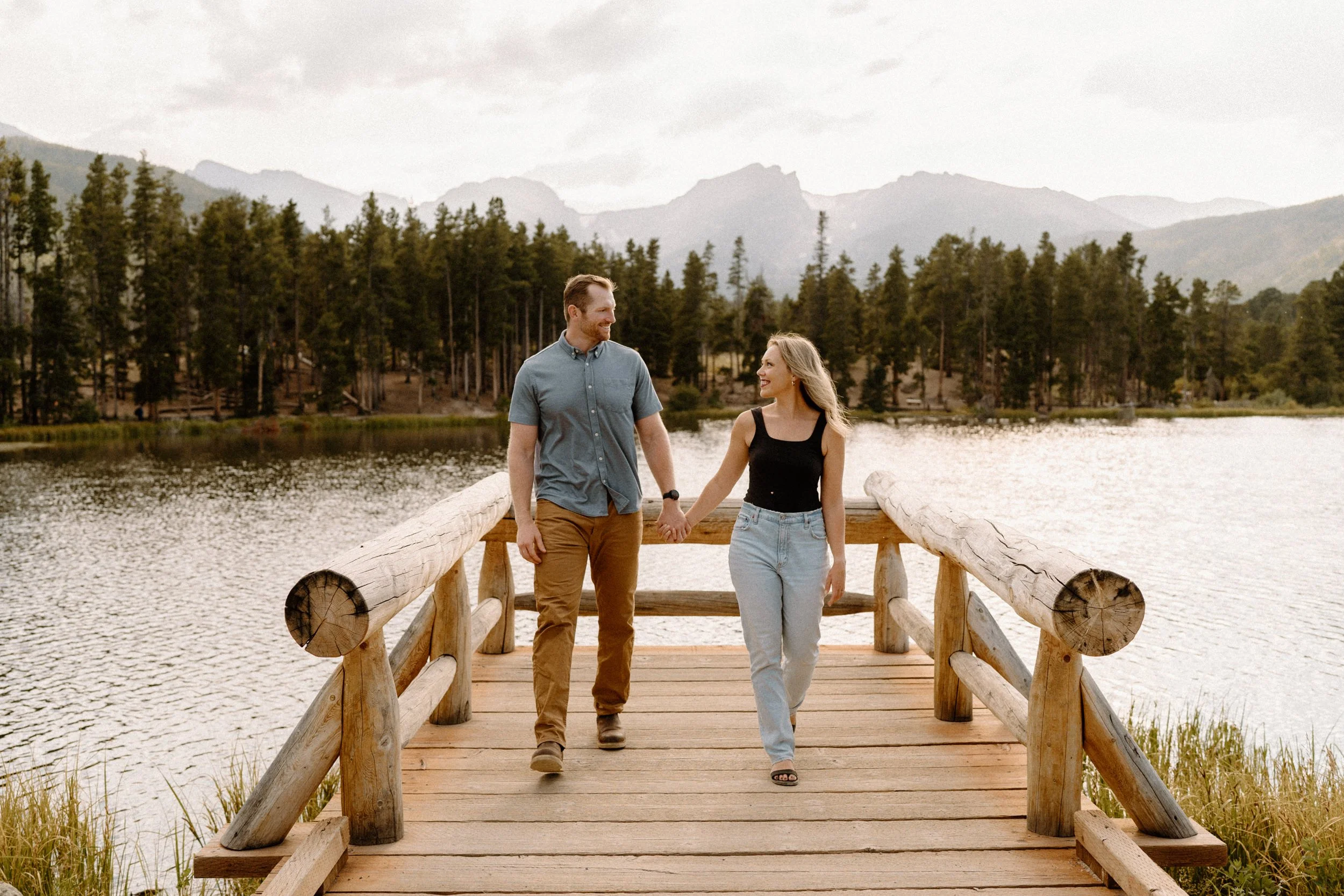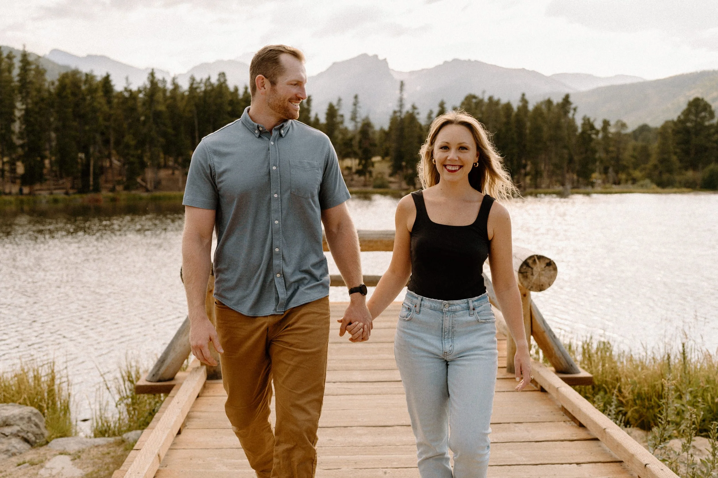 Estes Park, Colorado is a super special place to Hannah and Reid. Not only did they get married there at the Black Canyon Inn, they also got engaged in Estes Park! When it came to planning their engagement session it only made sense to do Rocky Mountain National Park and incorporate their love for the mountains and such a sentimental place to them. I absolutely loved this idea too because when their wedding day came around we didn’t need to waste time venturing off into the park for photos! It made their wedding day so much more seamless and relaxed, and allowed them to be more present with each other and their guests!