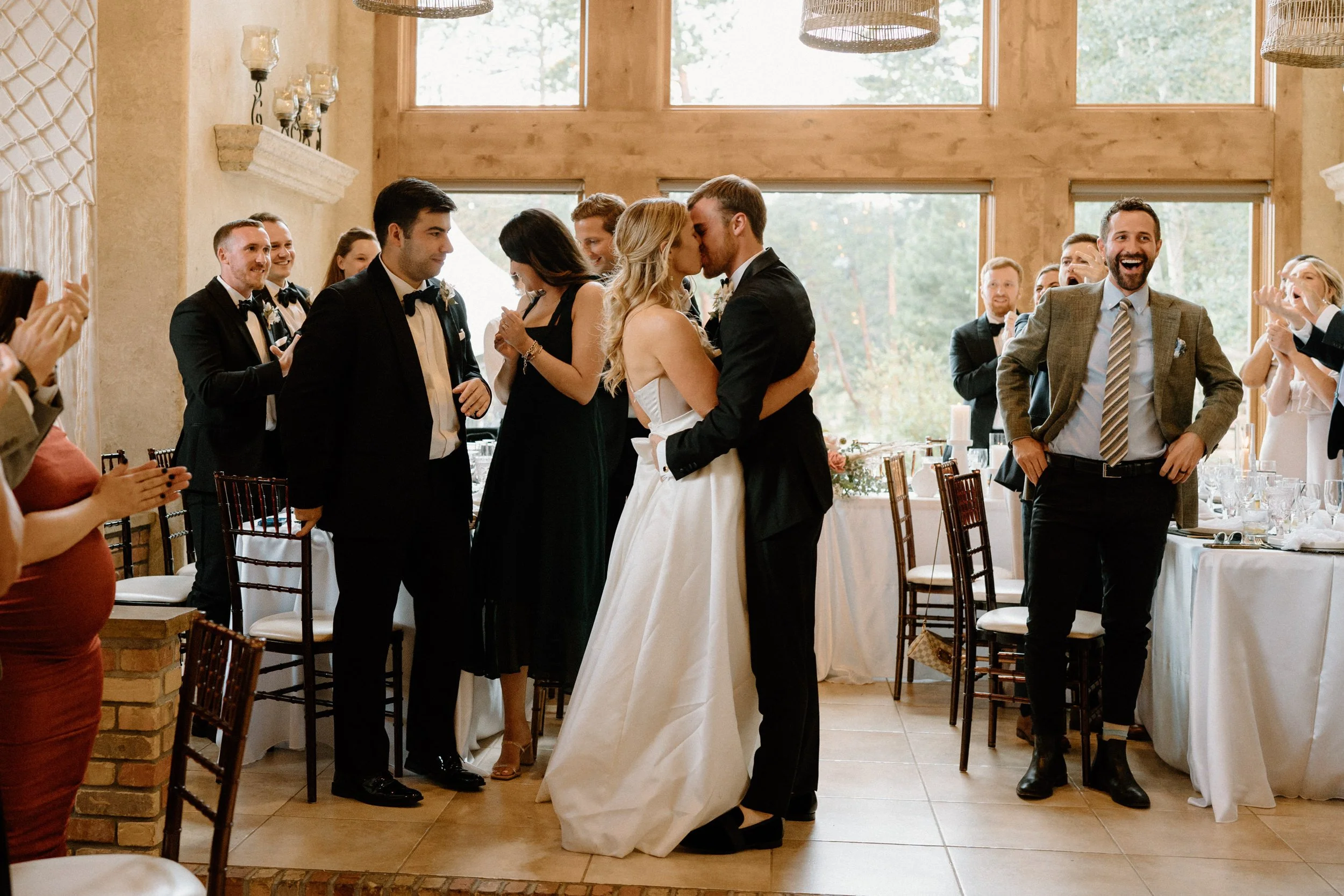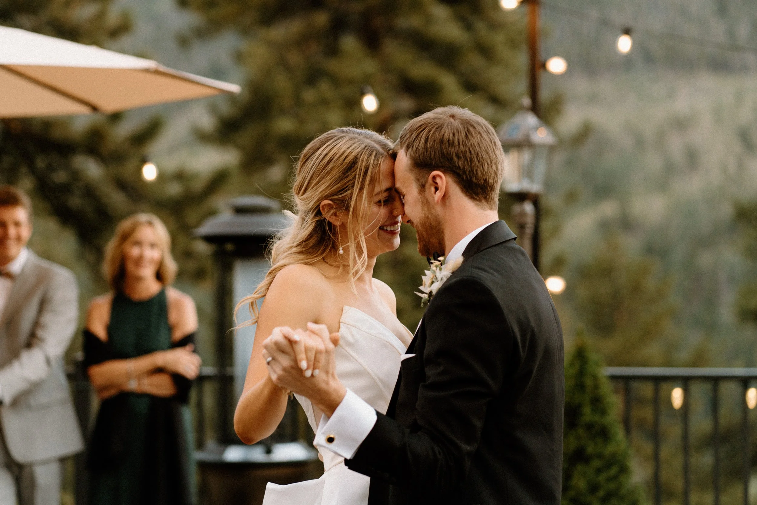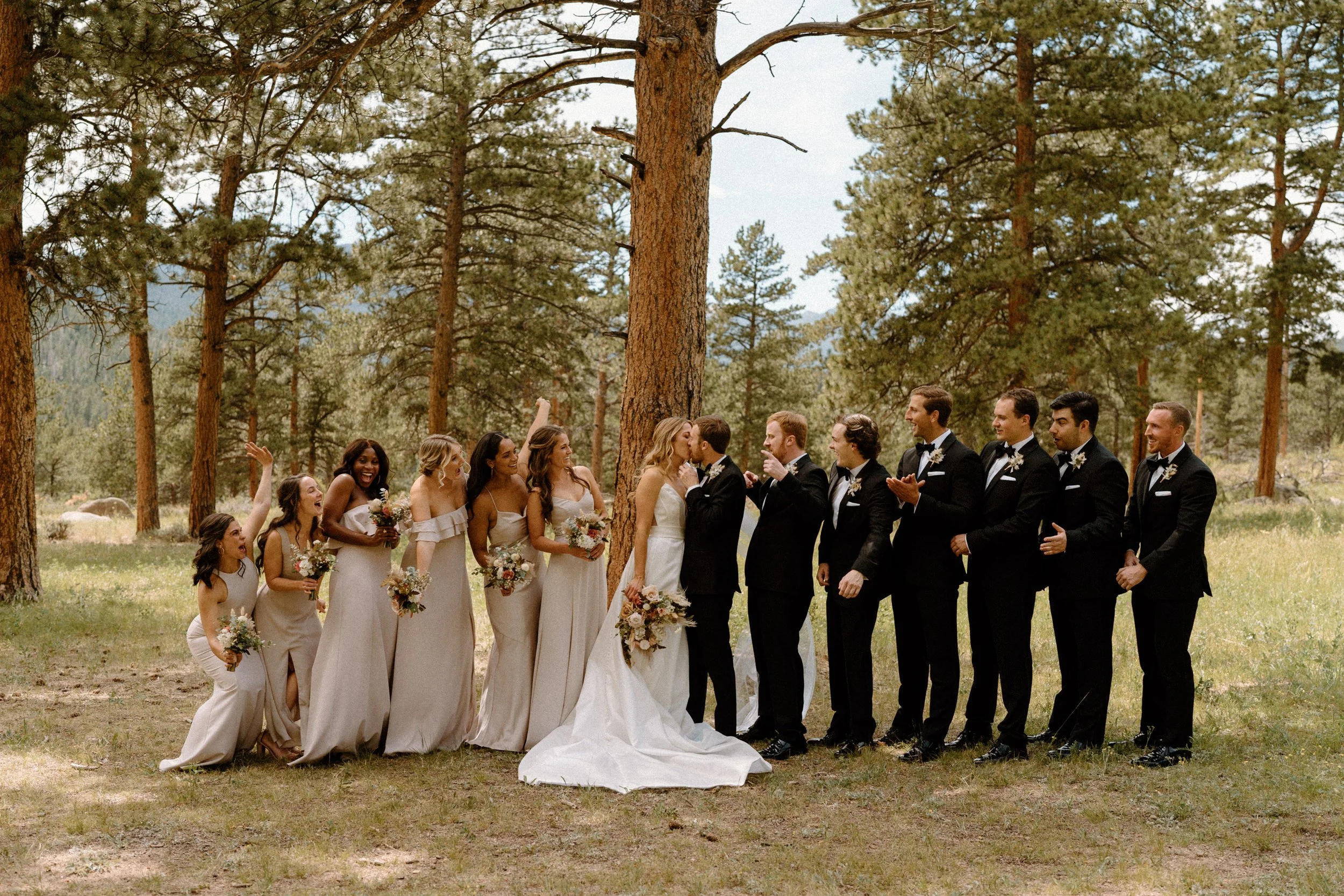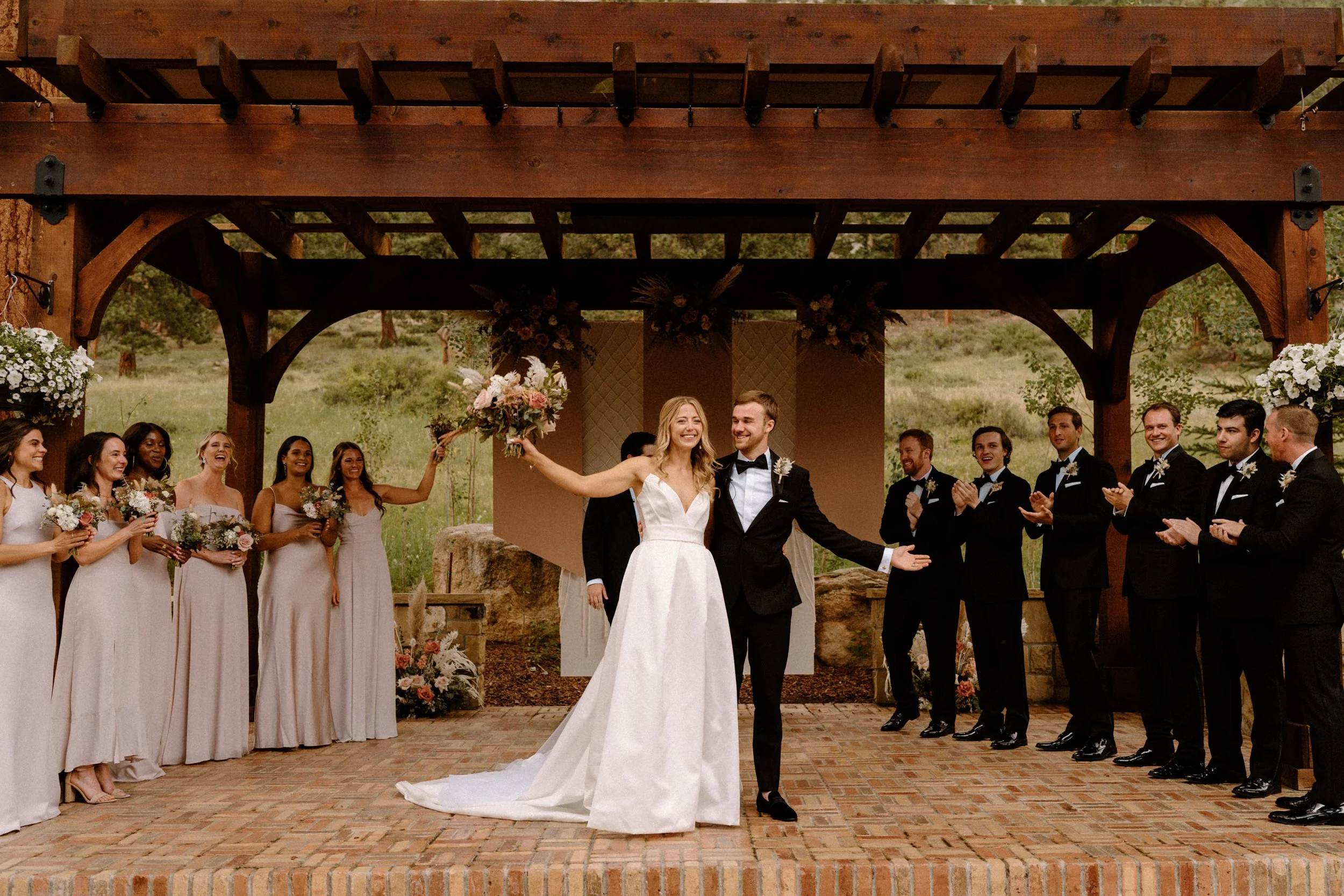 Their outdoor ceremony was filled with so much love. They laughed, wiped away happy tears, and promised forever with the Colorado mountains standing tall behind them. When they exchanged rings and kissed, their guests cheered, and you could feel just how much these two are adored.