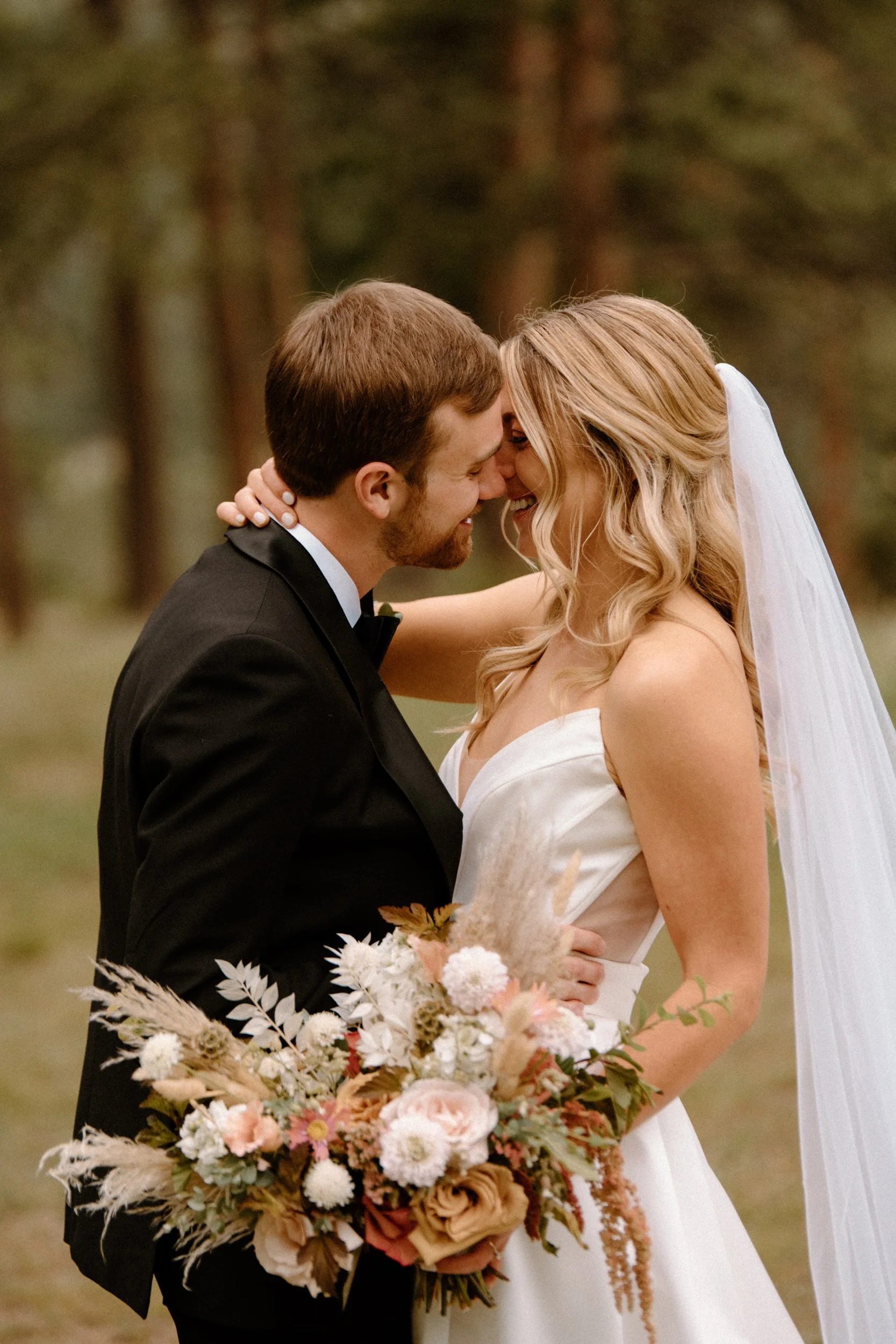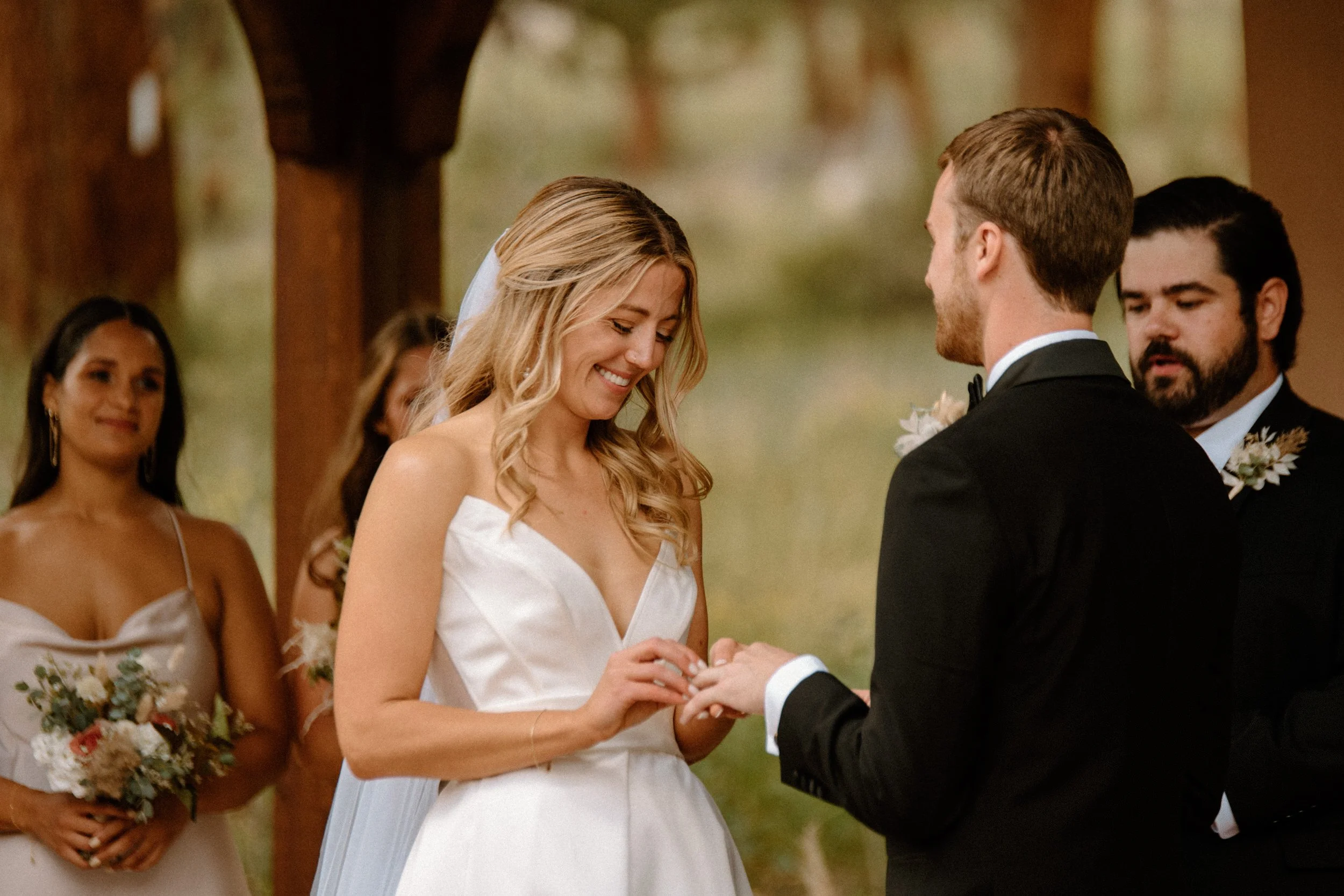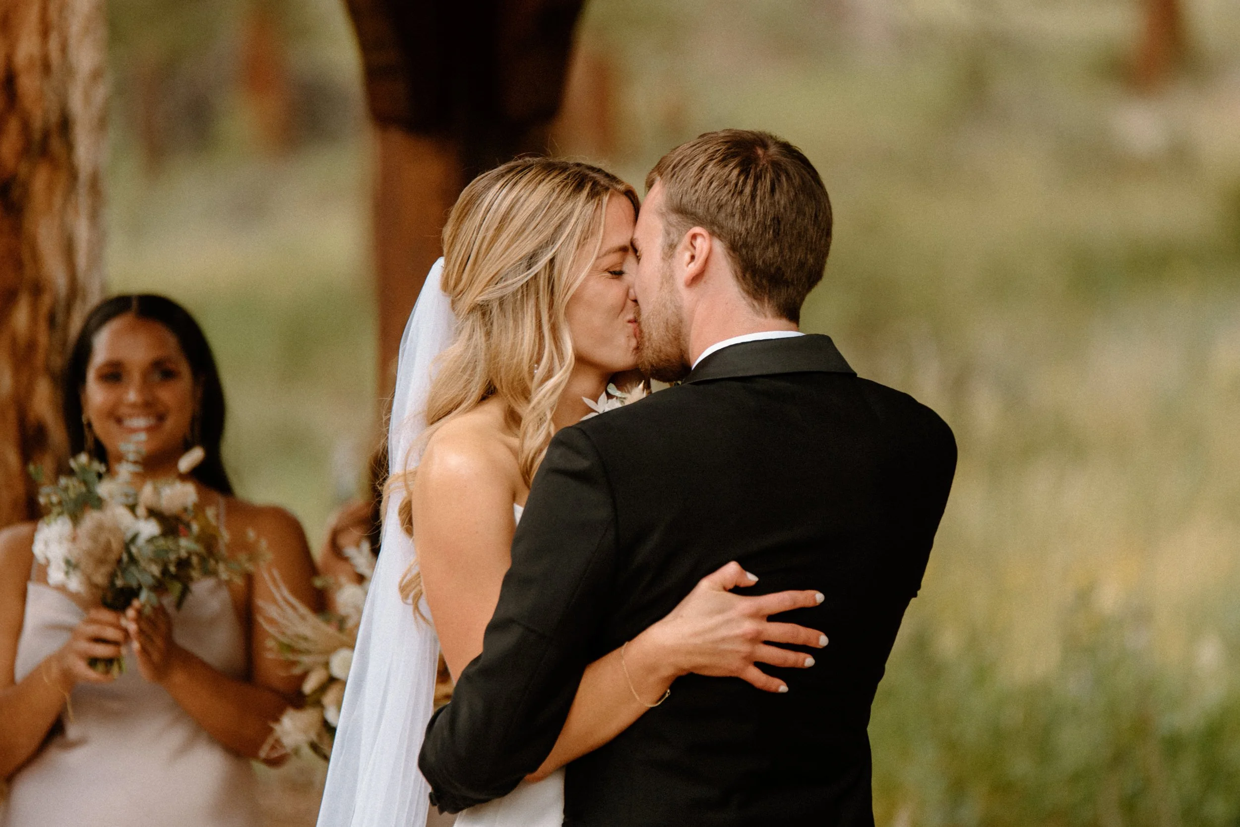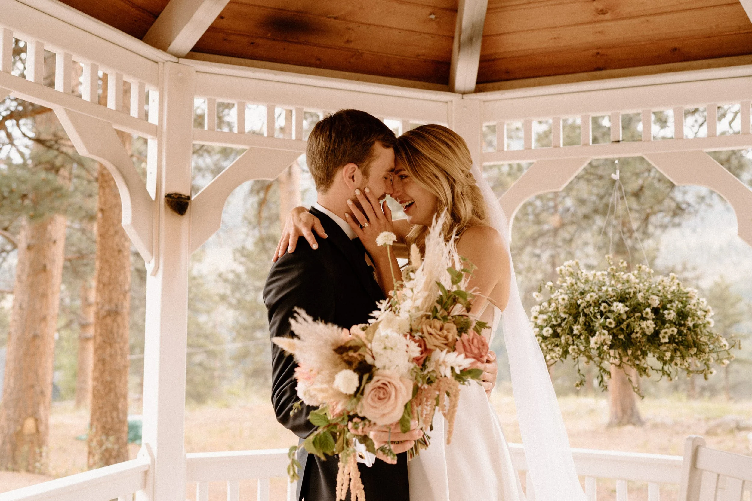 Their outdoor ceremony was filled with so much love. They laughed, wiped away happy tears, and promised forever with the Colorado mountains standing tall behind them. When they exchanged rings and kissed, their guests cheered, and you could feel just how much these two are adored.