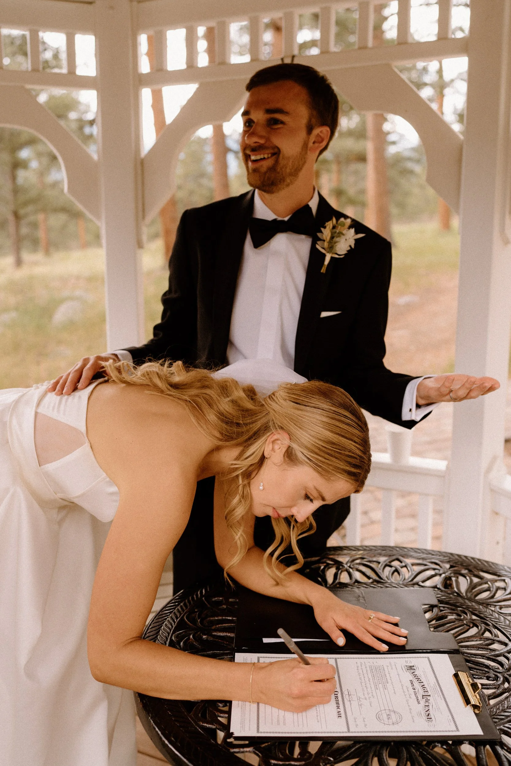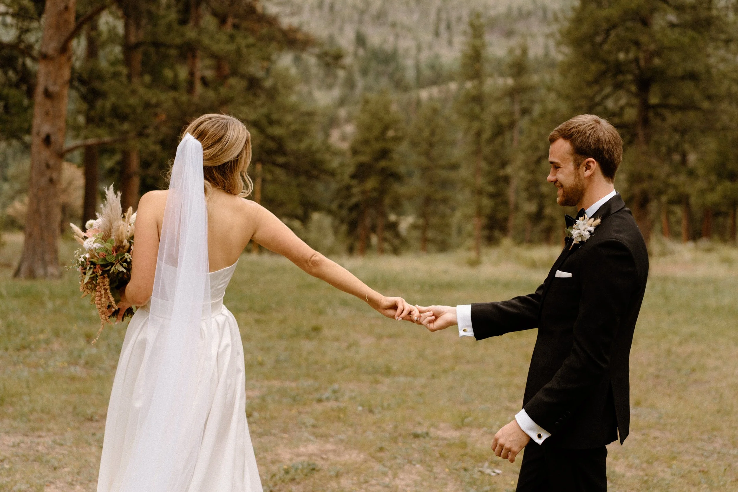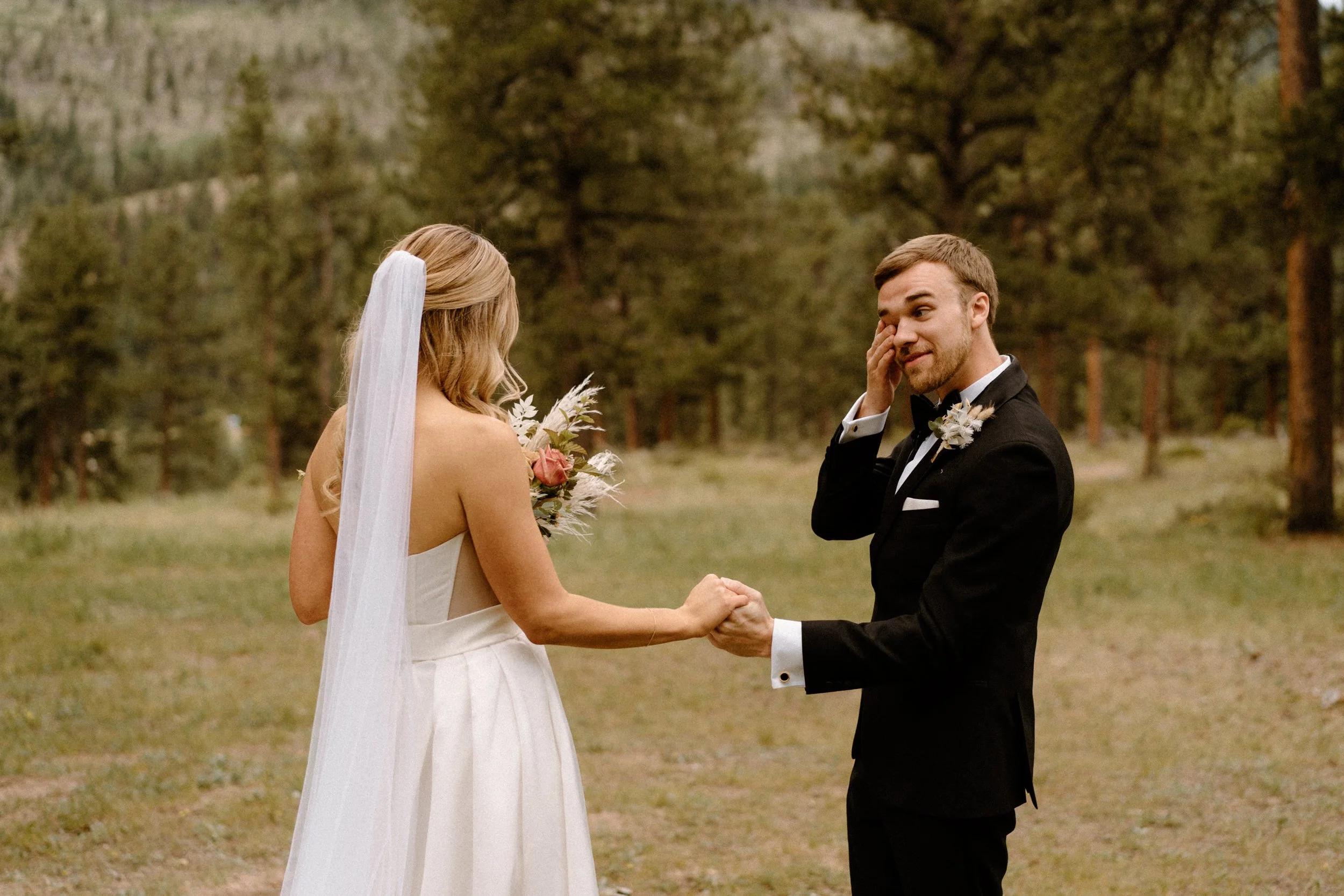Set in Estes Park on a perfect July day, the morning was buzzing with excitement. Before their first look, Summer and Cam exchanged handwritten notes, each taking a quiet moment to read the words they had poured their hearts into.