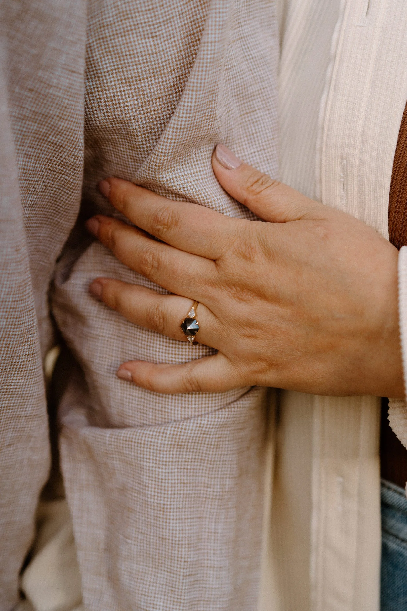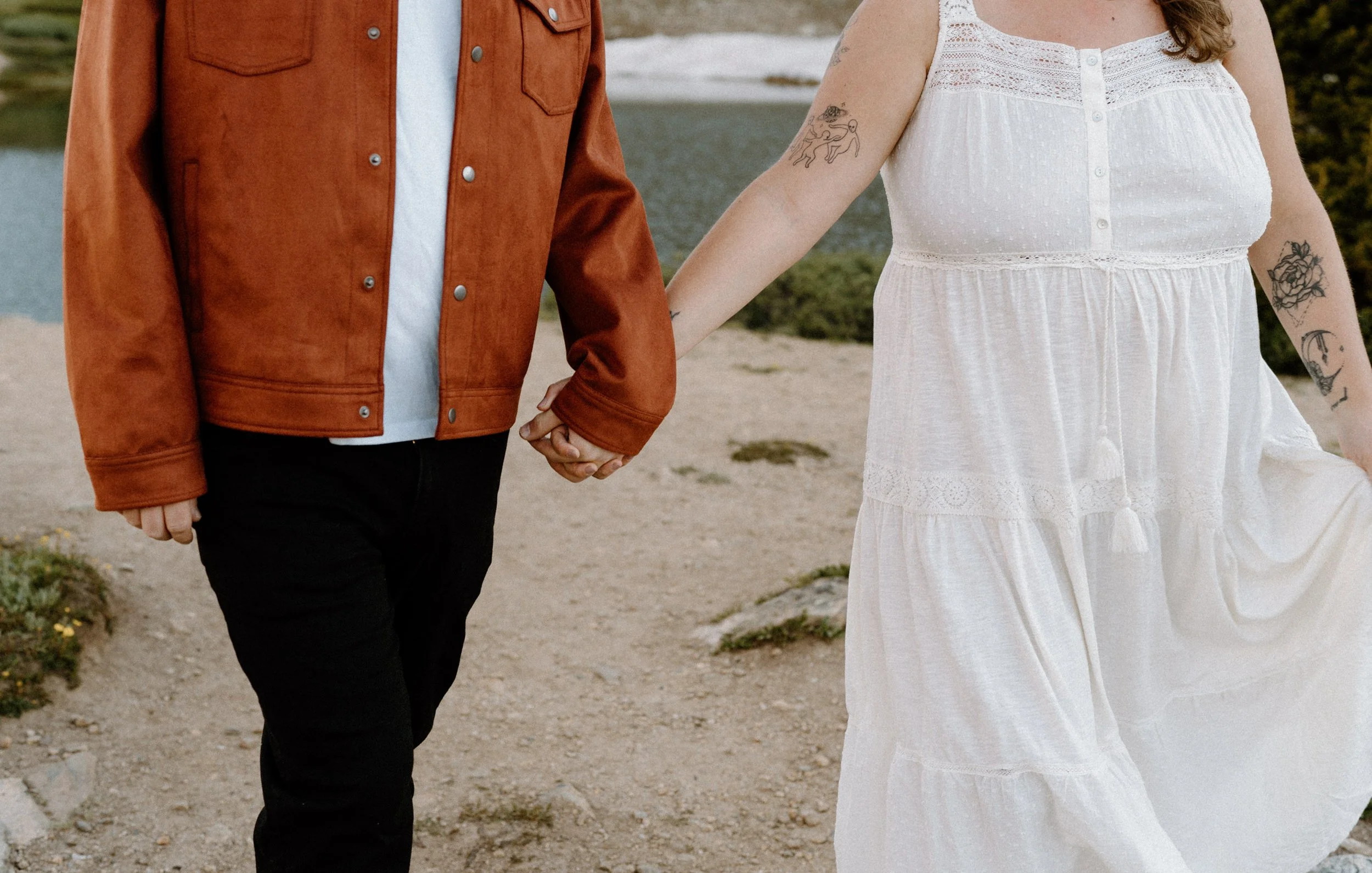What I loved most about photographing these two was how grounded they are with each other. No forced poses, no awkward energy, just real connection. They laughed through the wind, held each other close when the chill kicked in, and didn’t mind getting a little messy when we climbed down to a rocky overlook. That’s the kind of energy that makes a session feel less like work and more like hanging out with friends.