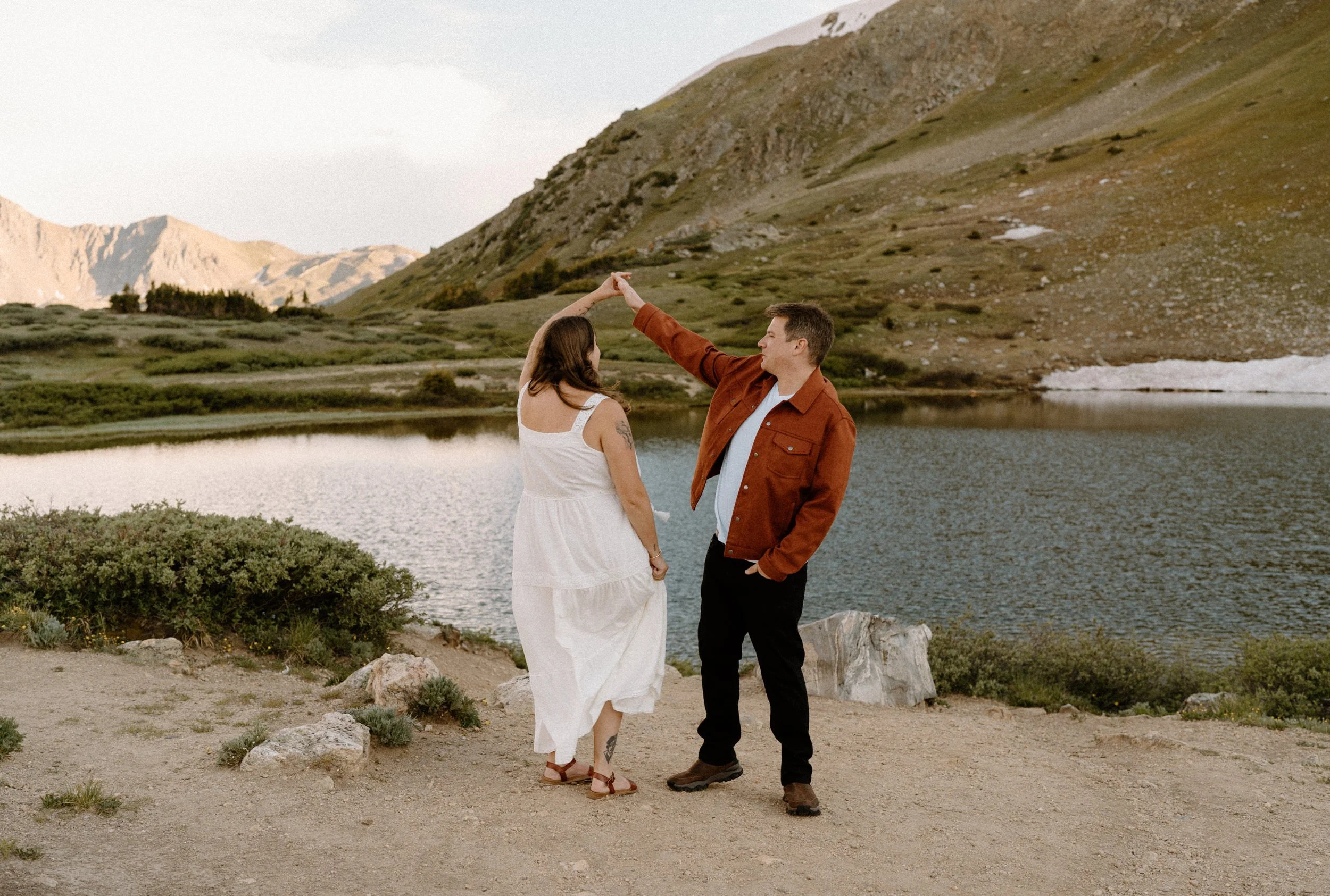 Loveland Pass gave us everything: dramatic ridgelines, soft alpine light, and even a few patches of snow that added texture to the shots. We wrapped up with a few quiet moments as the sun dipped behind the mountains, and I swear the whole valley went silent for them.