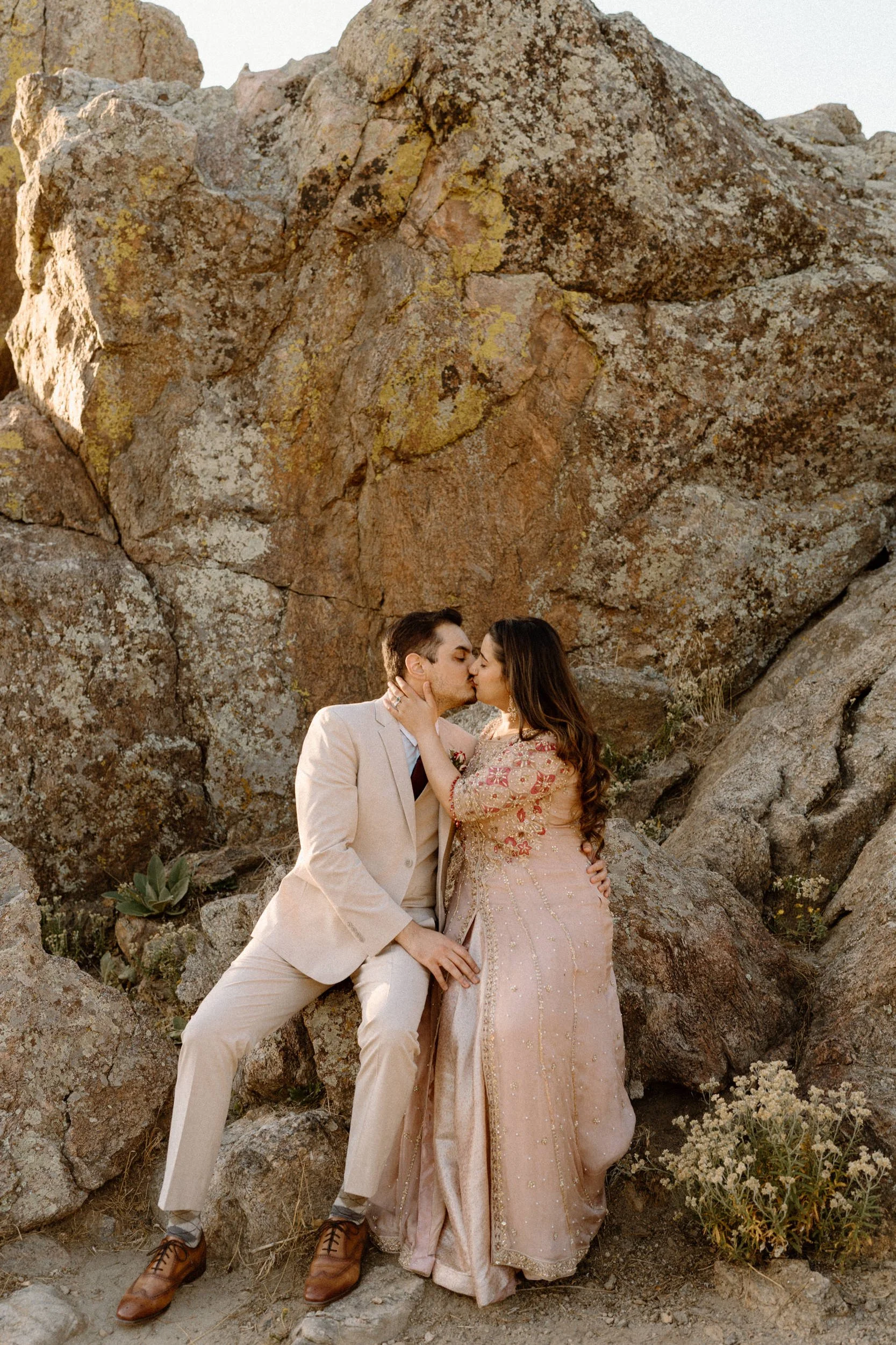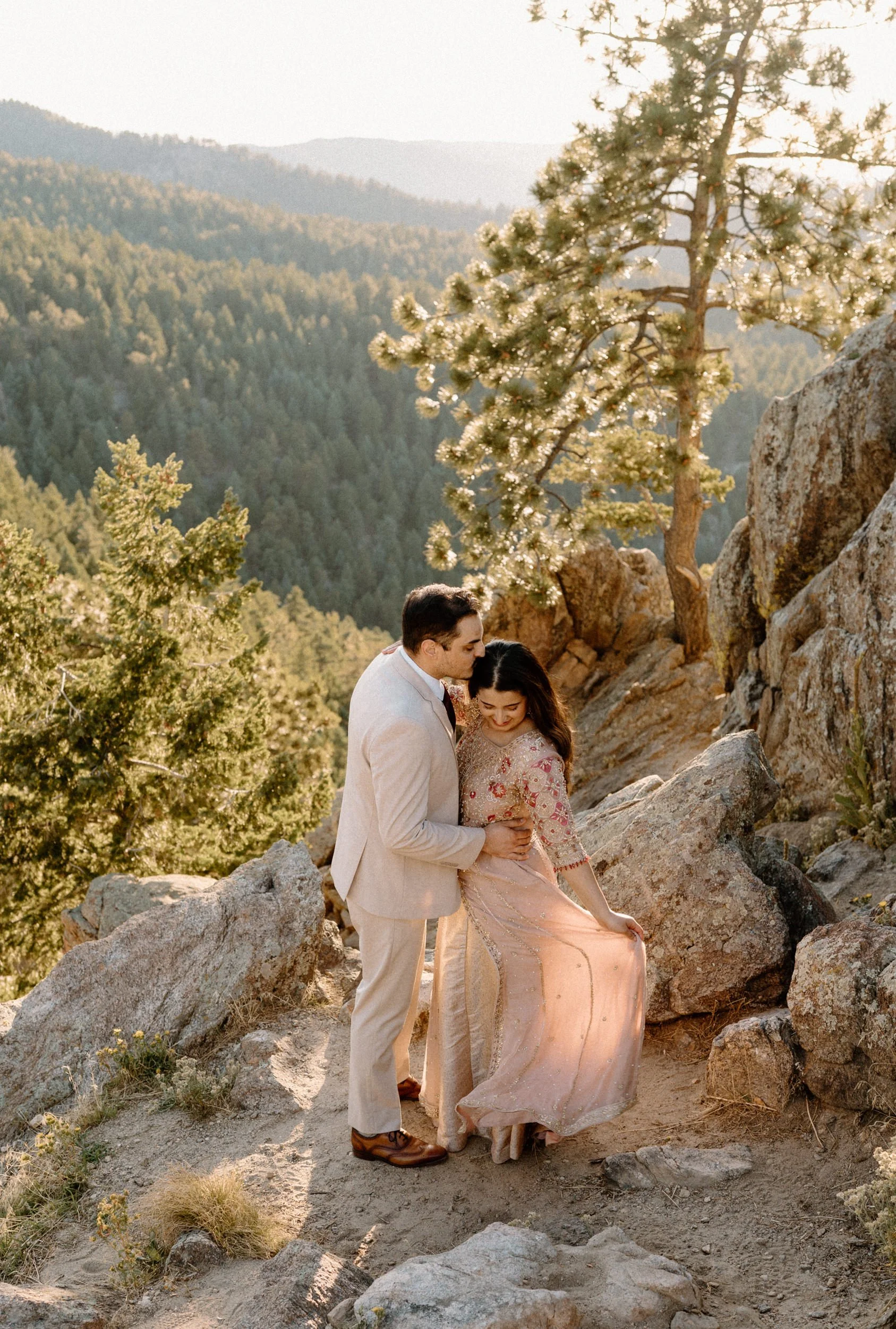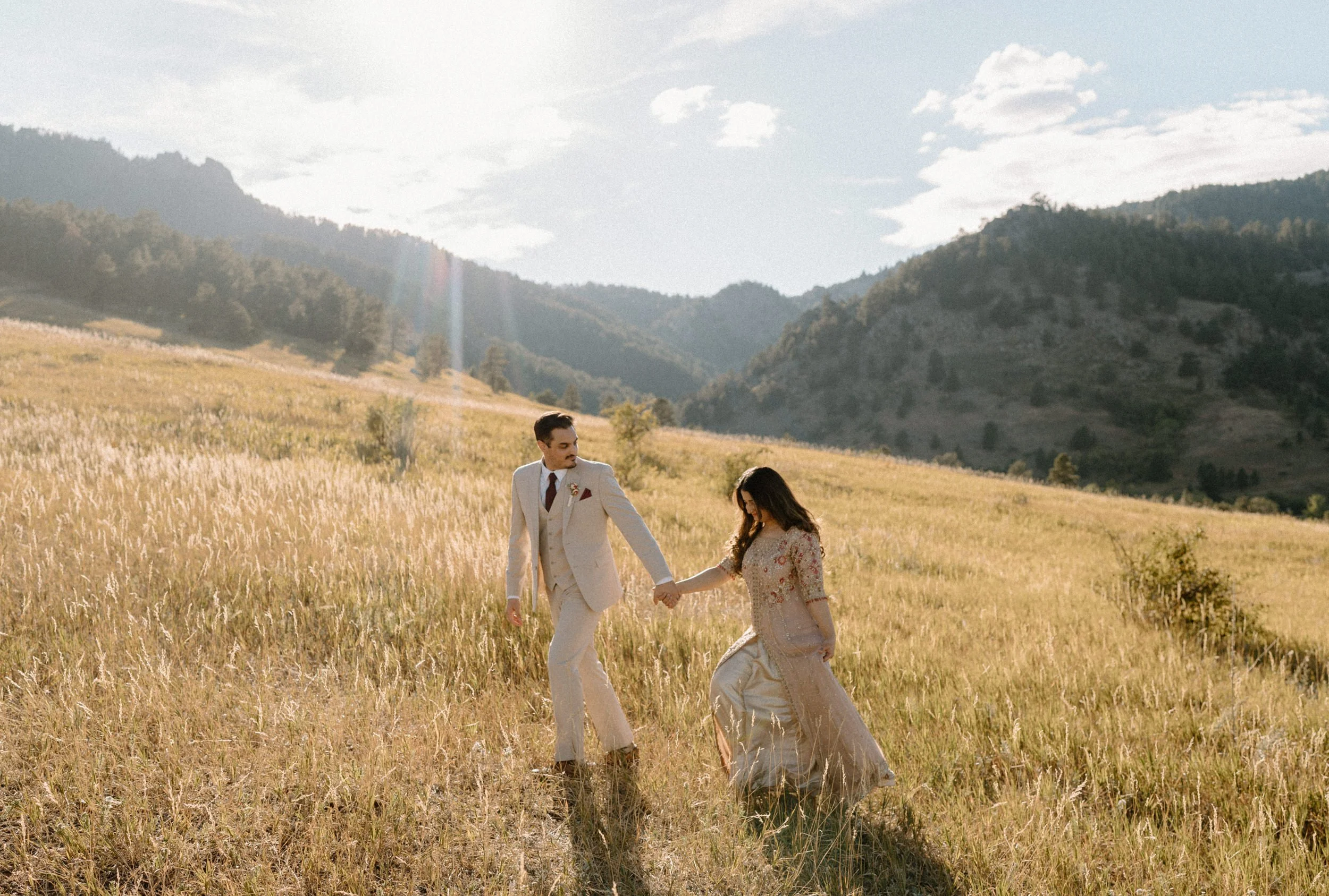 Okay, I’m still not over this couple’s session with Zayan and Mahnoor, it was that dreamy. We met up in Boulder, Colorado, and kicked things off at Chautauqua Park, where the Flatirons were showing off in full golden hour glory. The light was soft, the air was crisp, and these two? Literal magic.